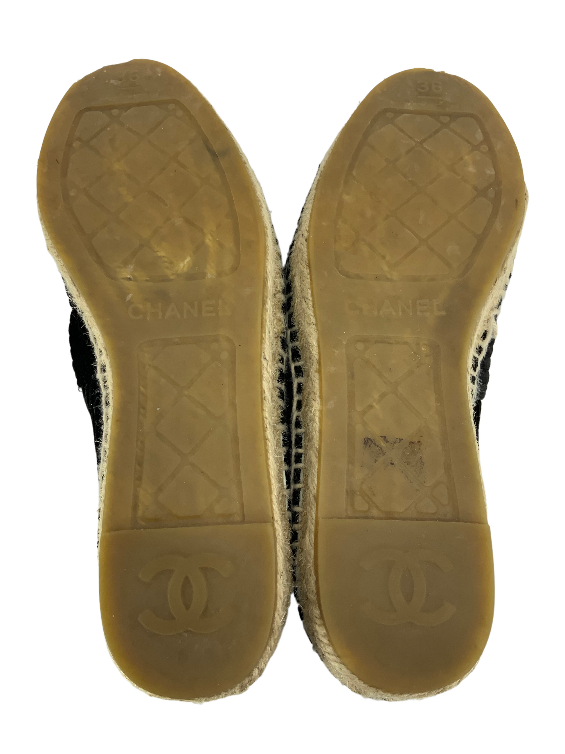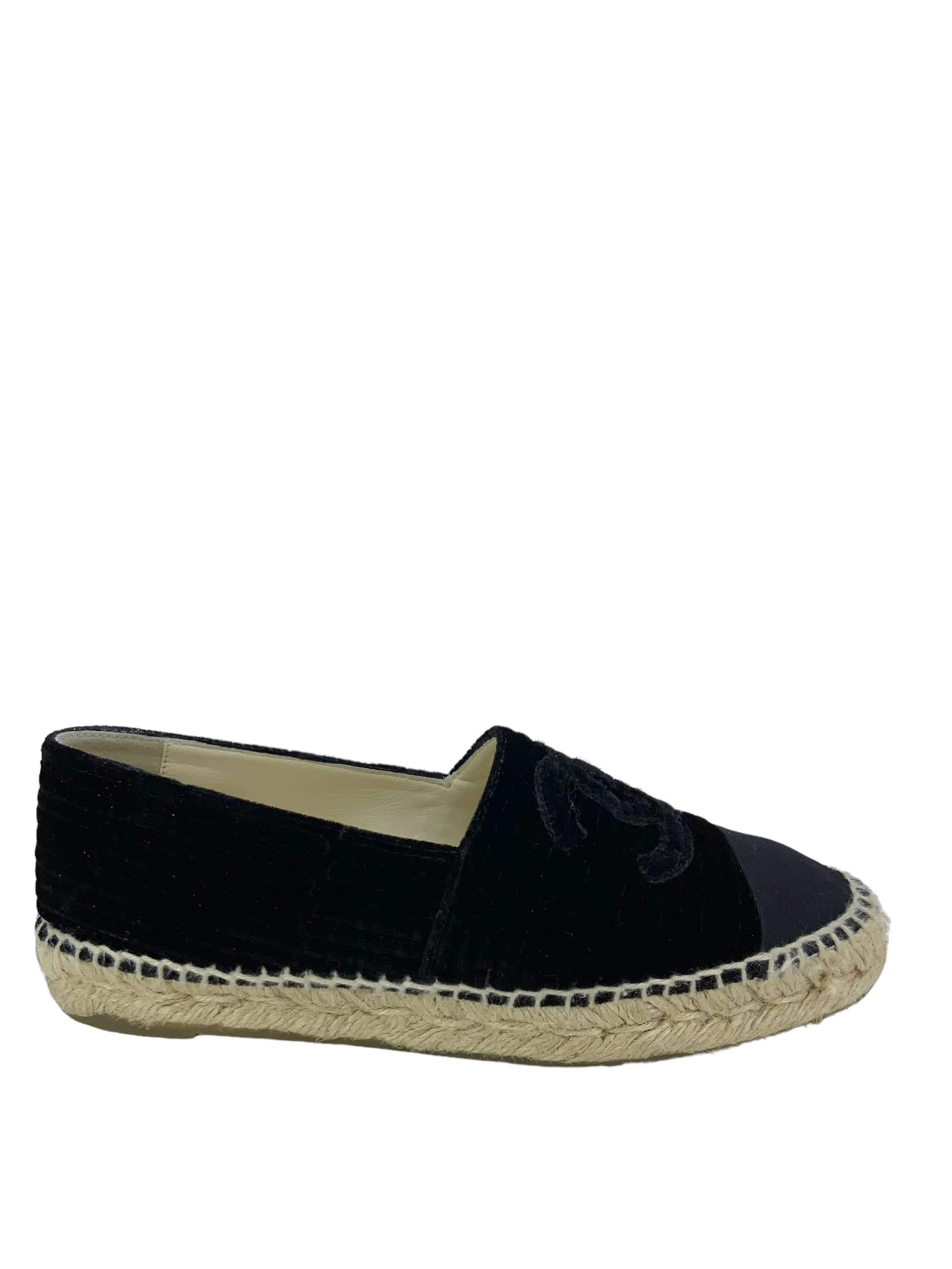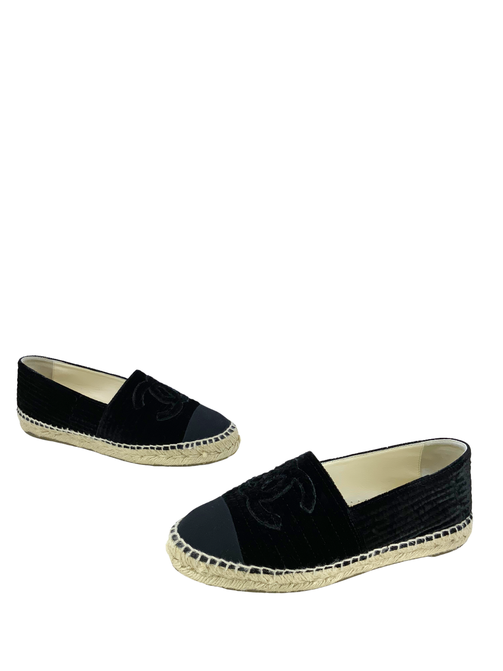 CHANEL Quilted Velvet CC Espadrilles Size 6