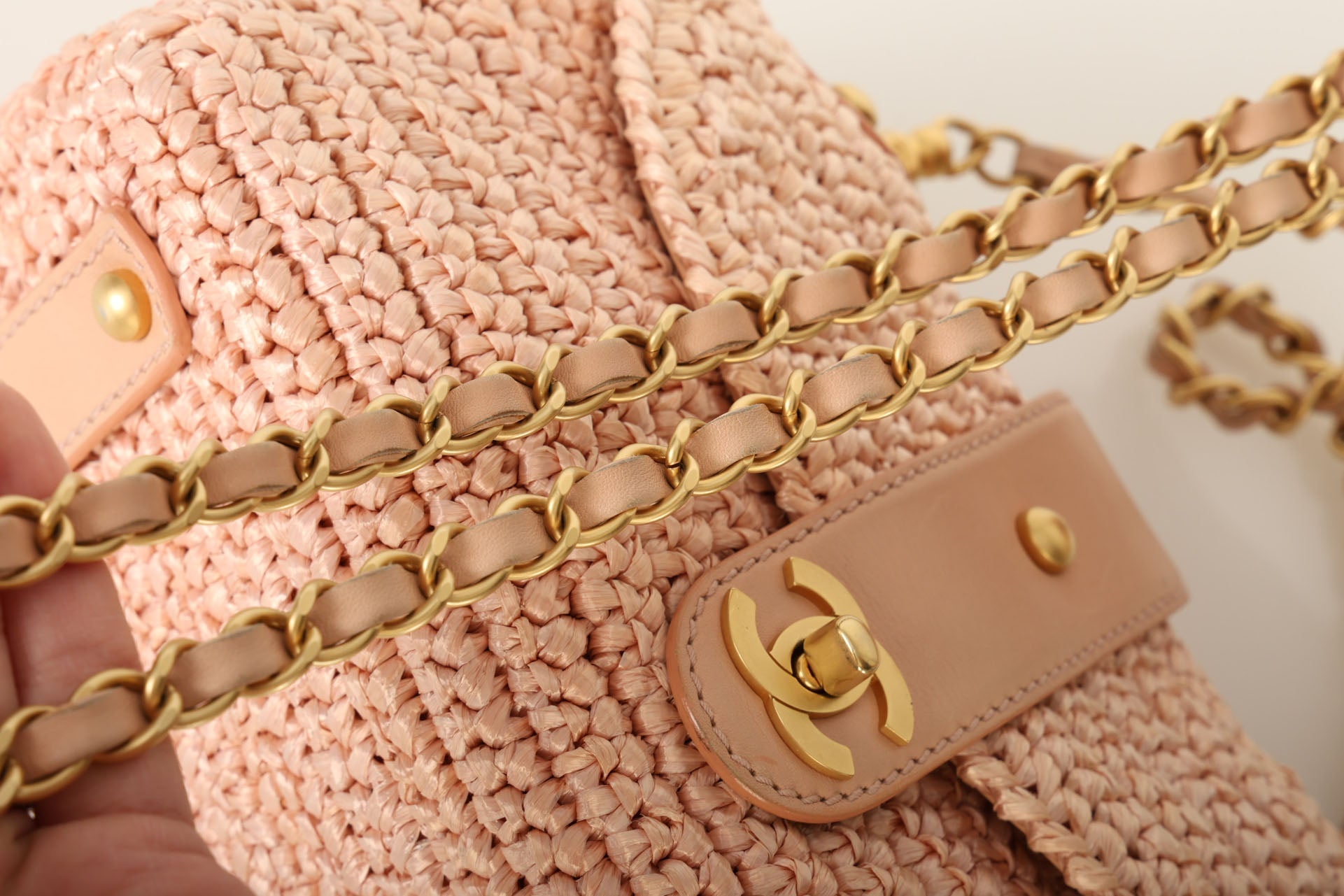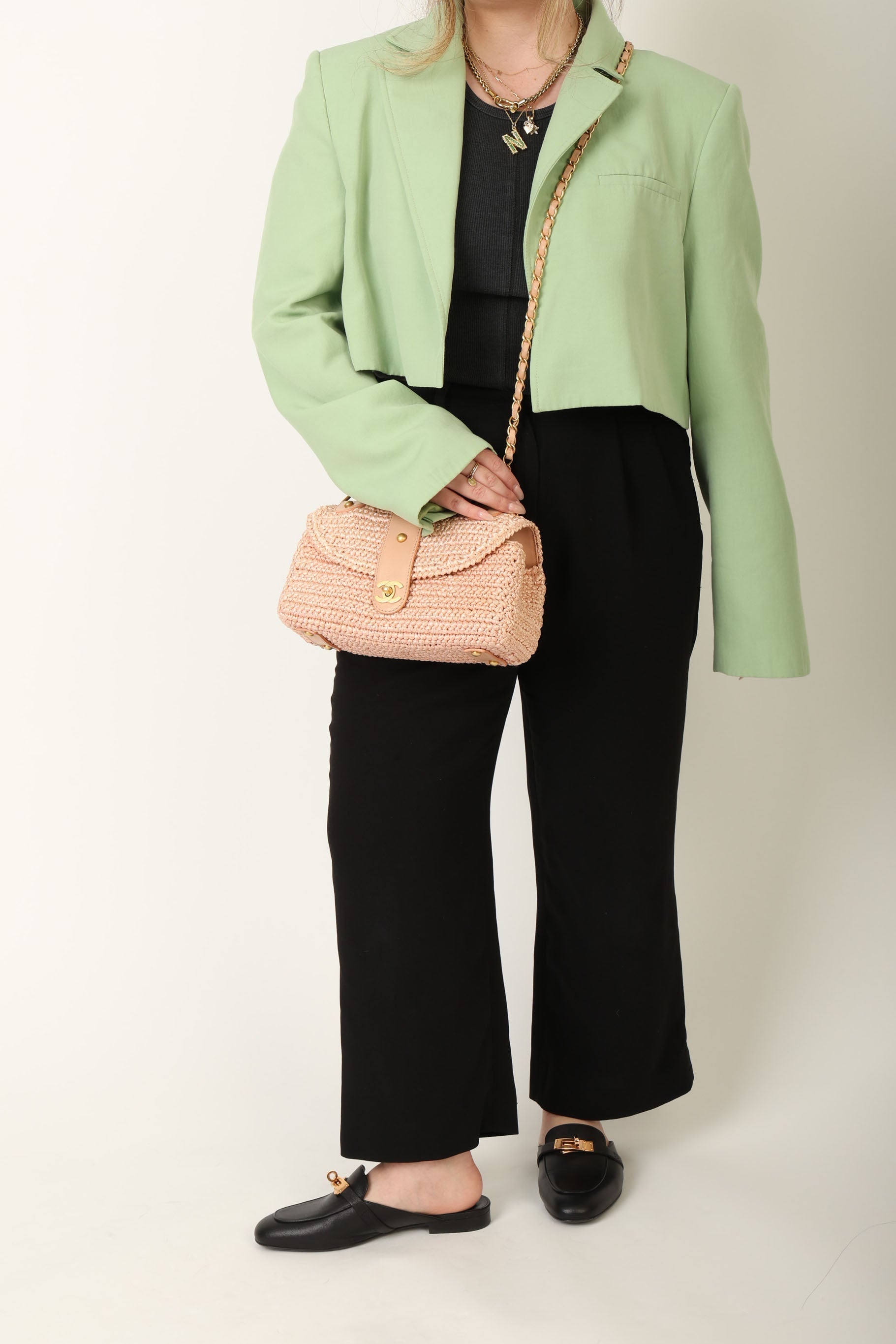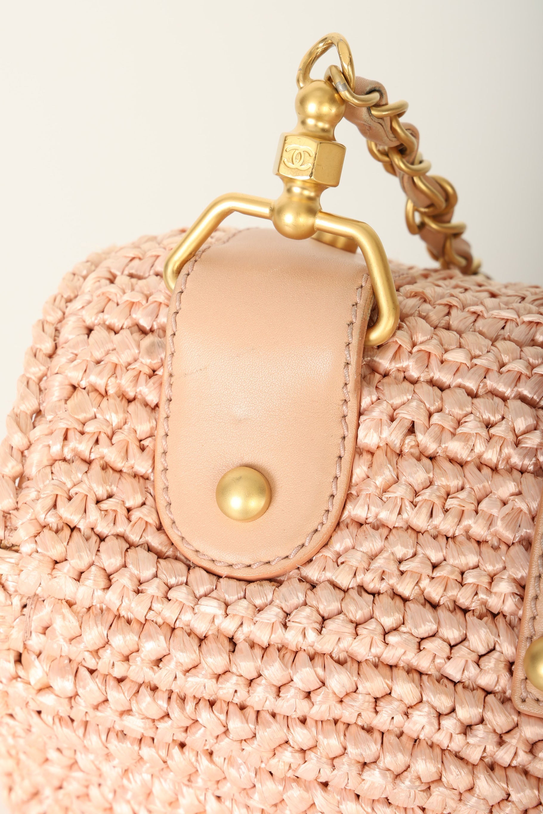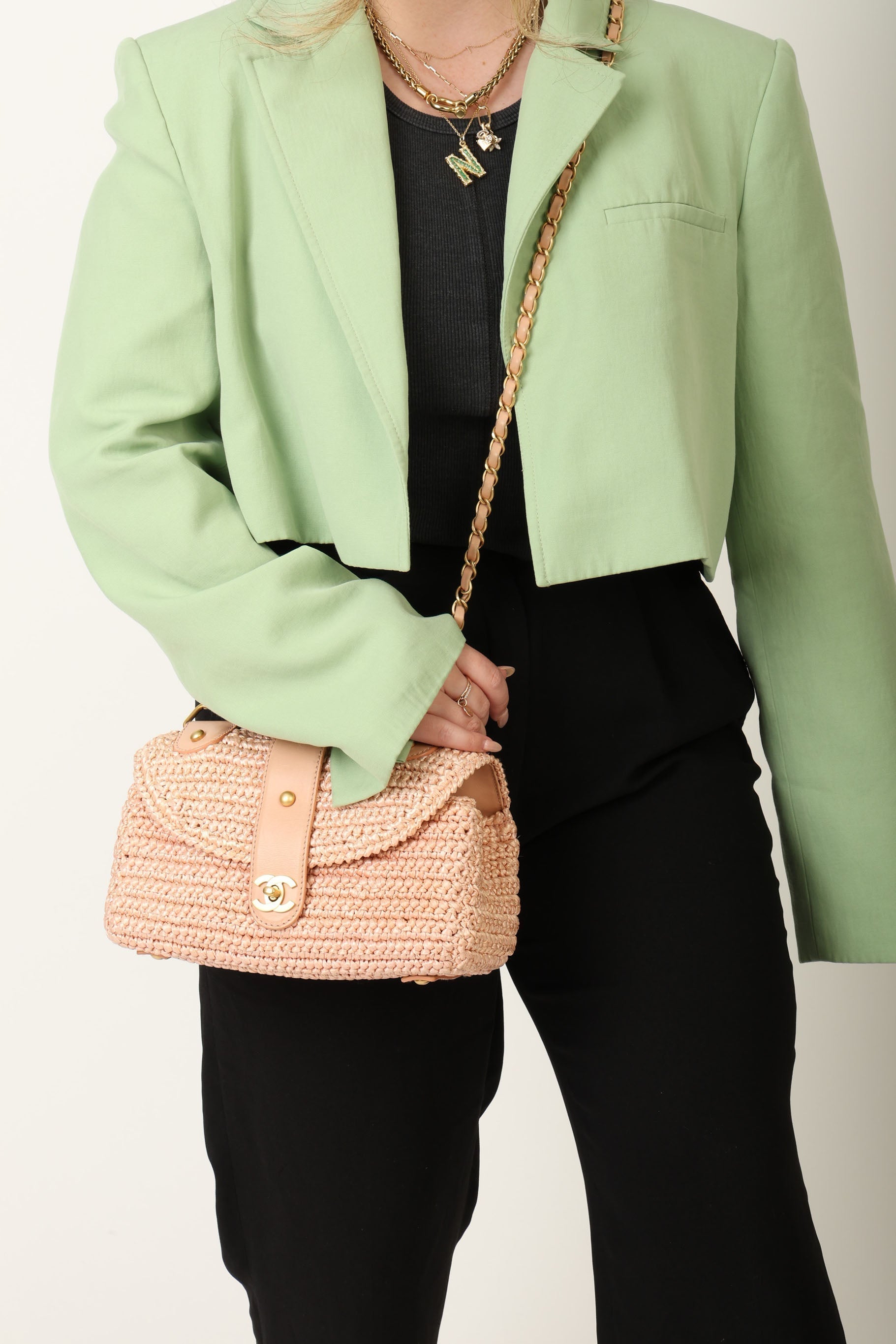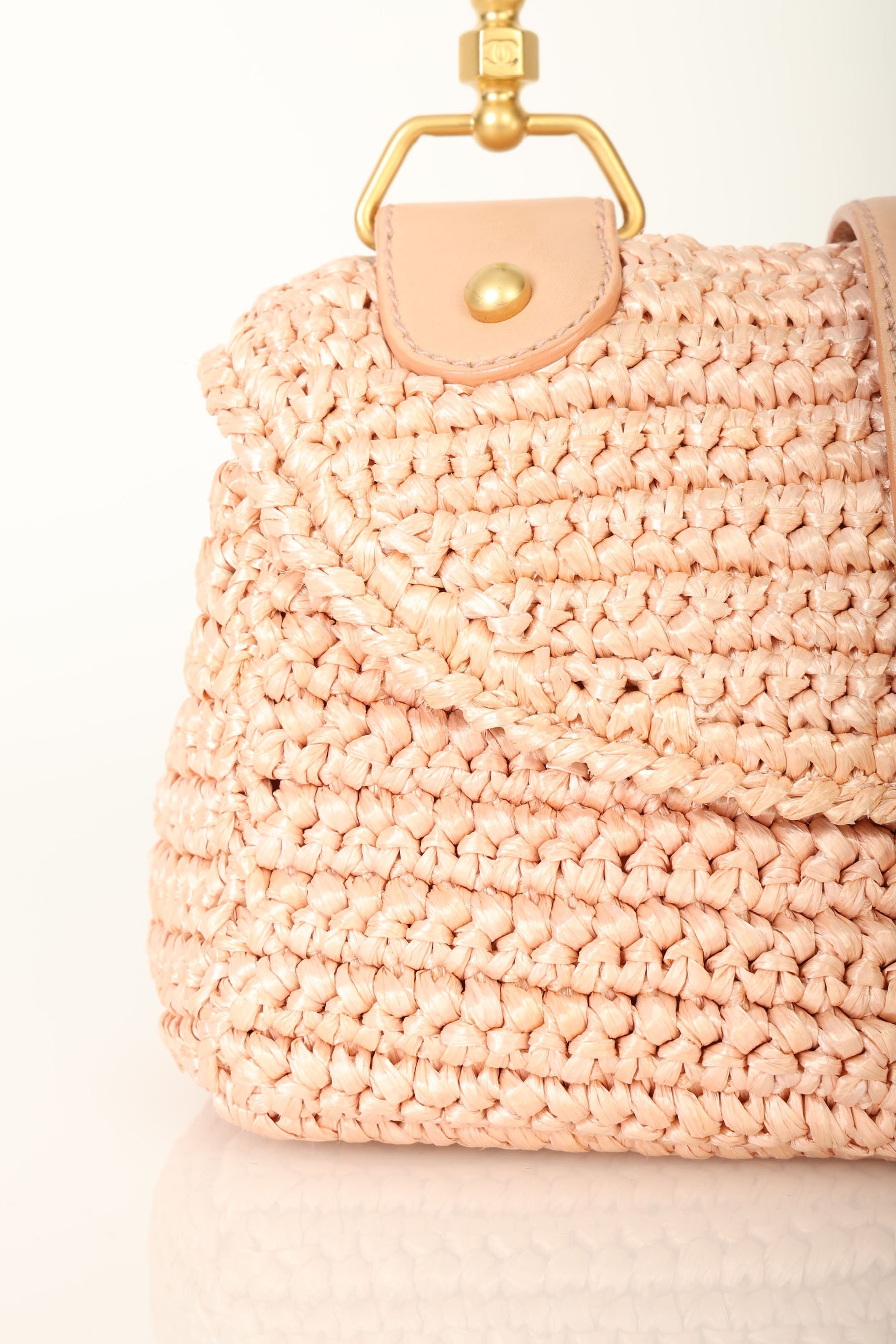 Bringing our first raffia bag of the season! This cherry blossom pink bag is the perfect piece to wear with a sundress to an outdoor picnic, or with a chic beach outfit, or can even be dumpling clutch style for the evening.