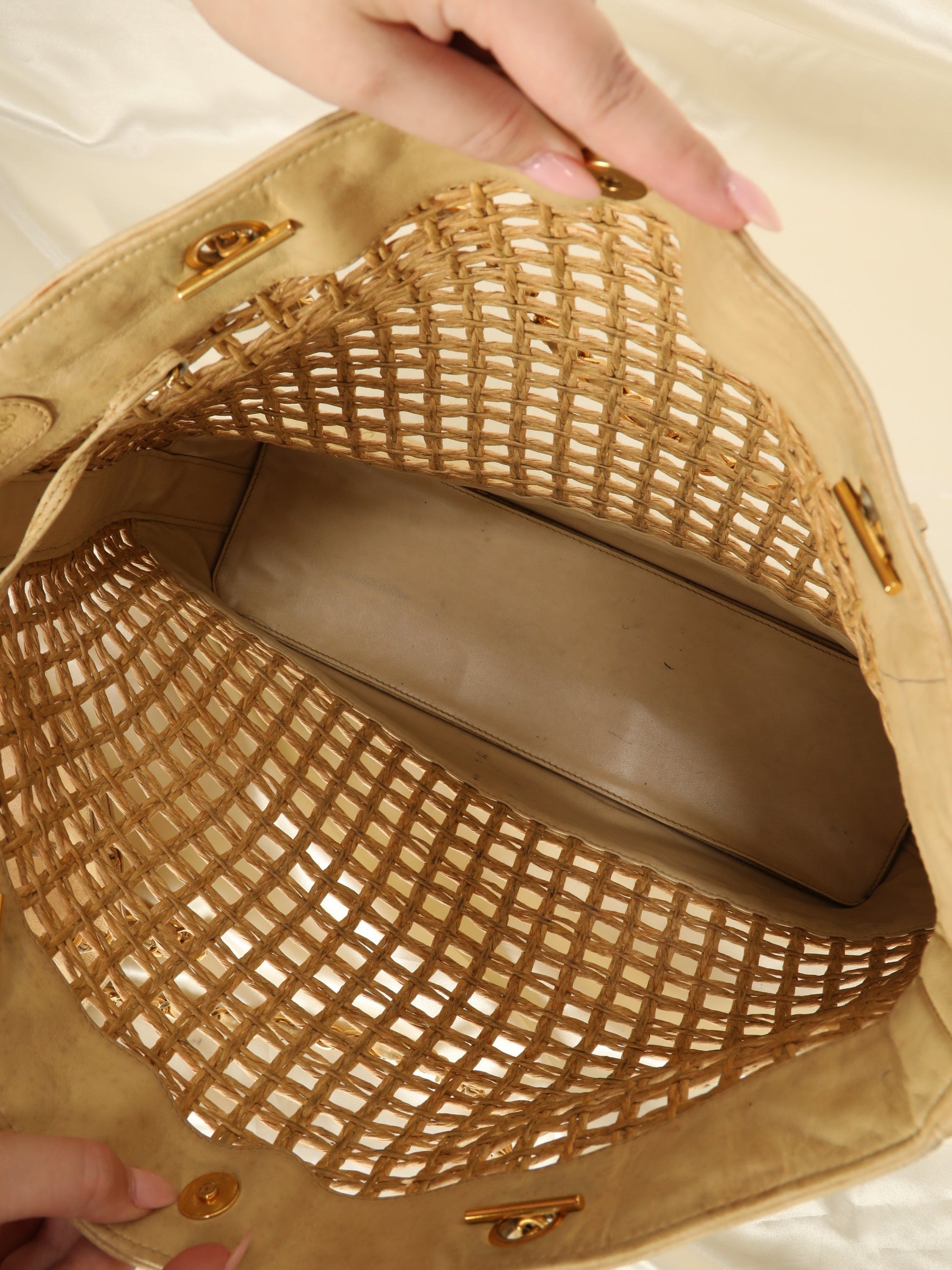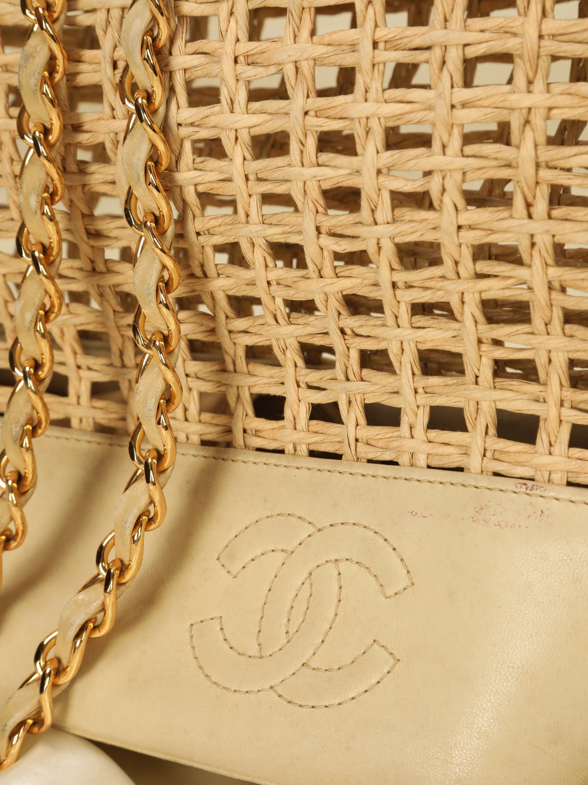 Extremely Rare Chanel Raffia & Lambskin Logo Tote
