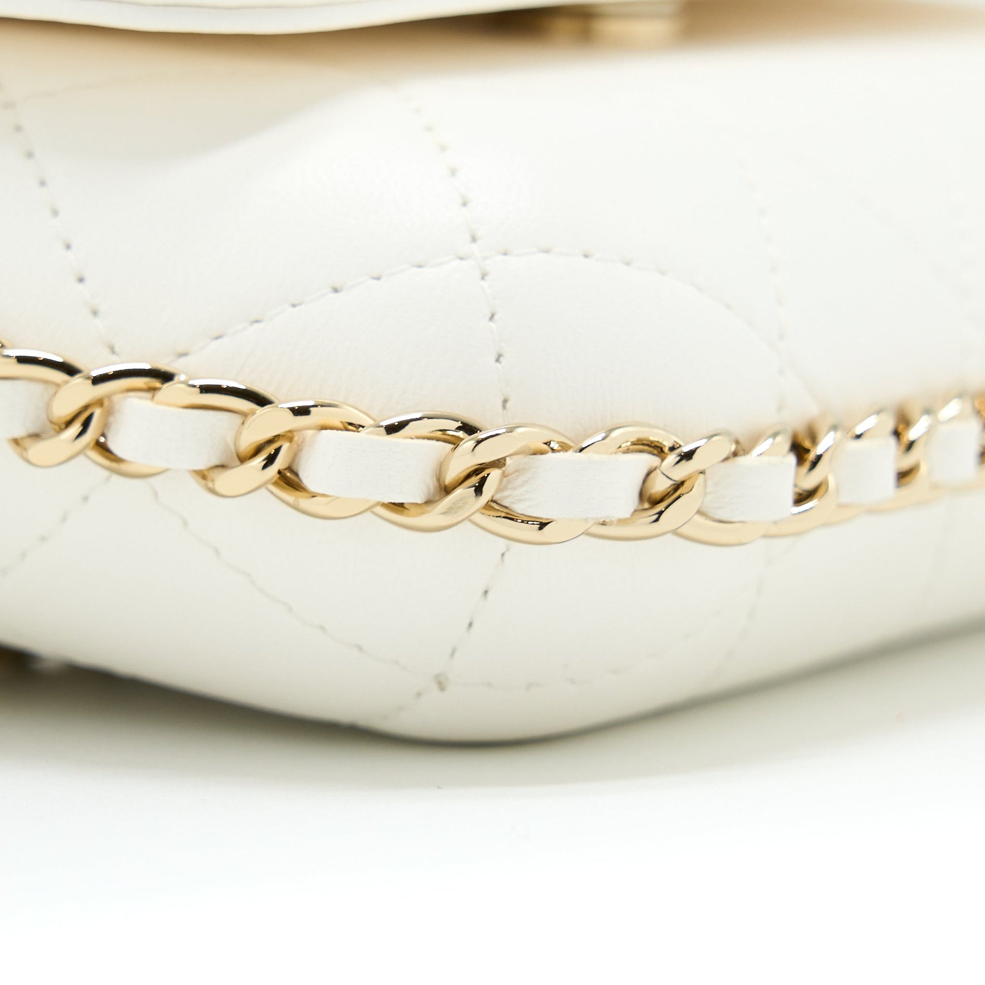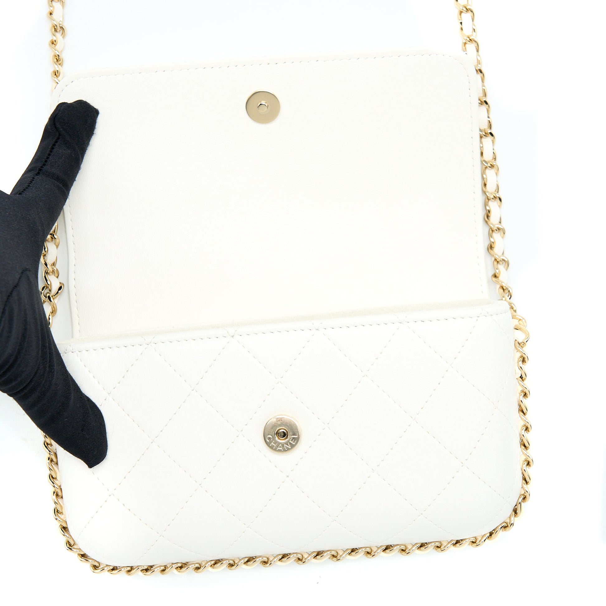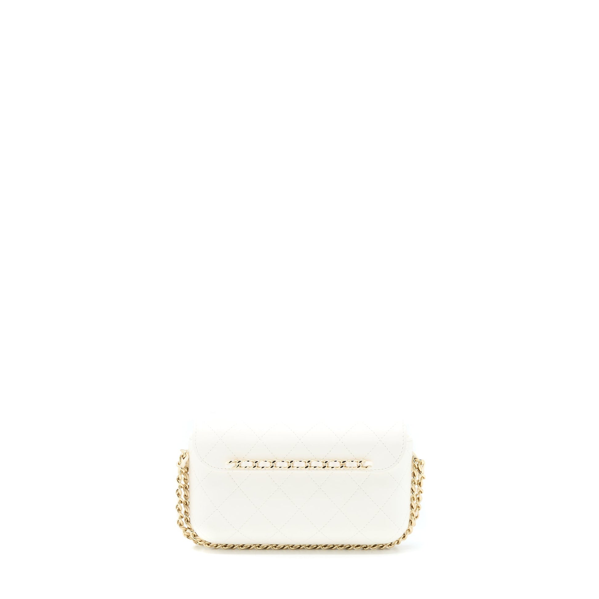 Chanel Rectangular Mini Flap Phone Case Bag Quilted Lambskin White LGHW (Microchip)