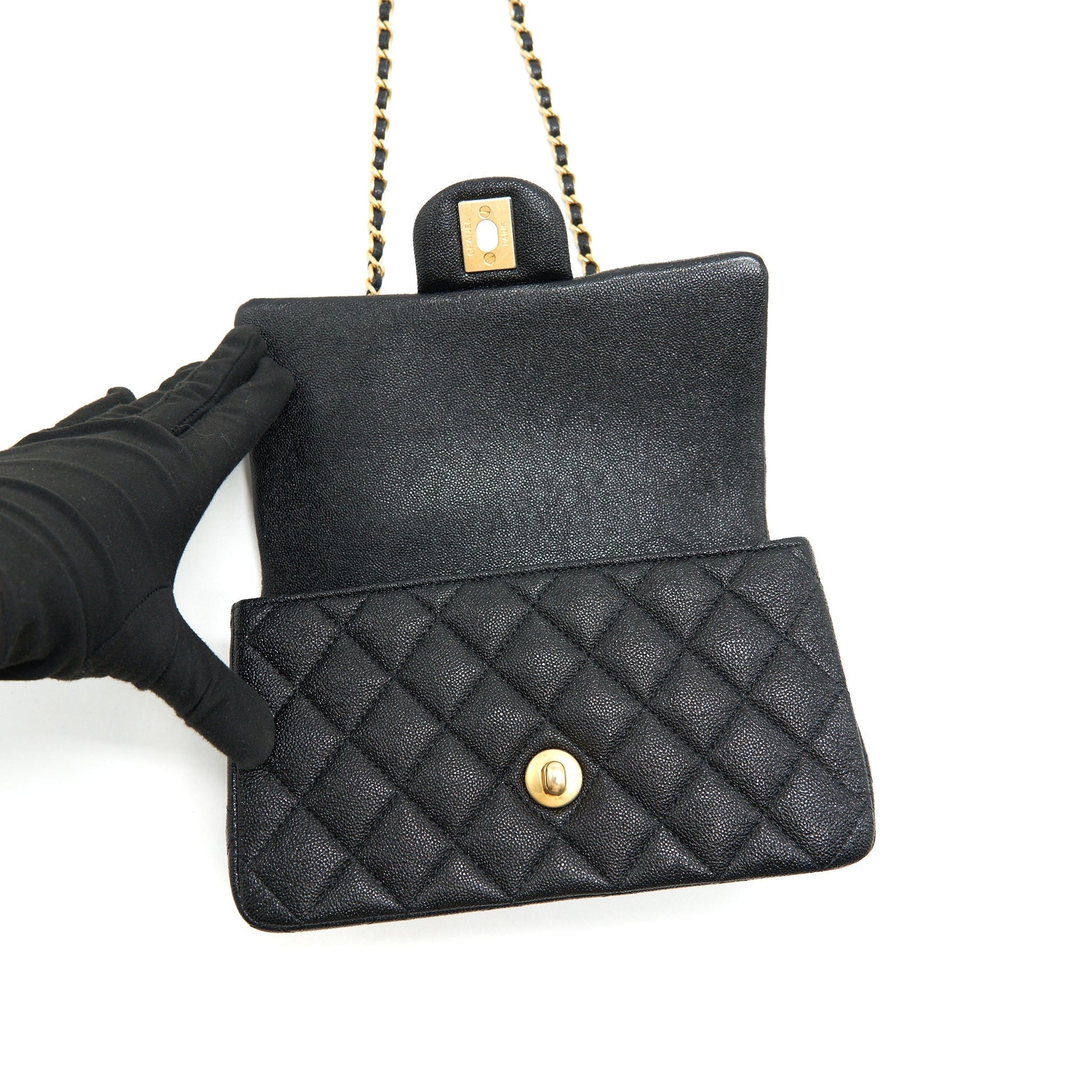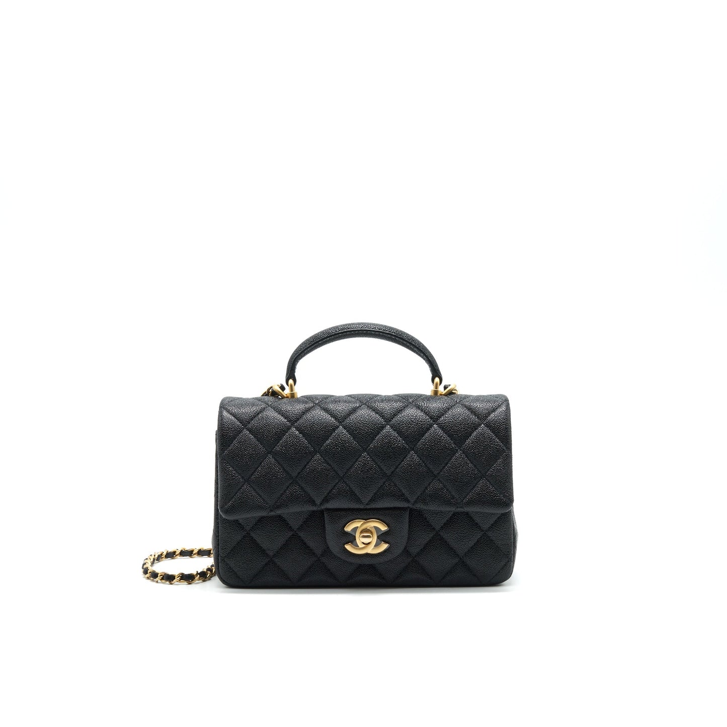 Chanel Rectangular Mini Top Handle Flap Bag granied calfskin black GHW