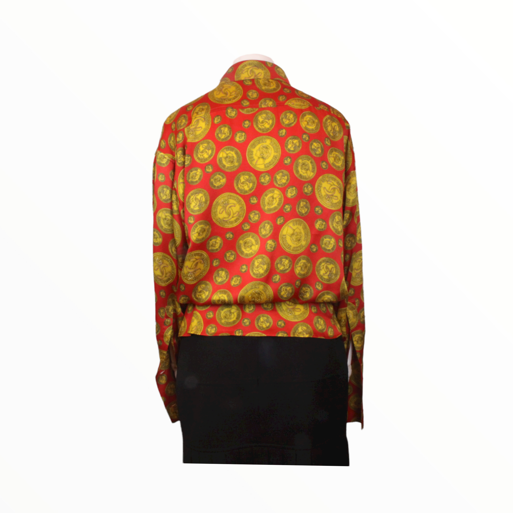 Chanel red blouse with coin Chanel motif - M - 1990s