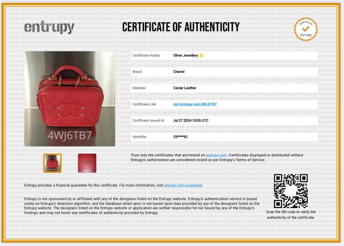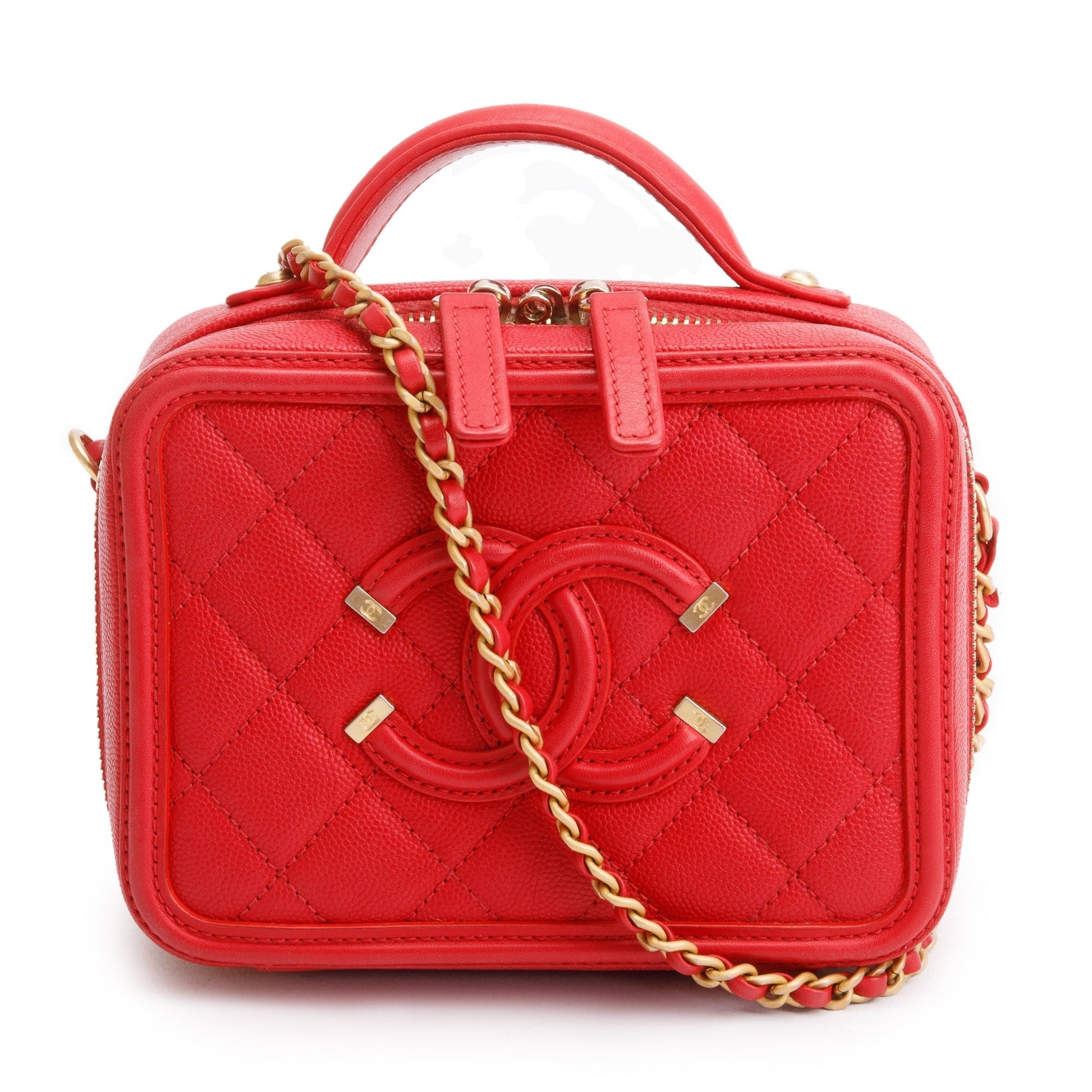 Chanel Red Quilted Caviar Leather Small CC Filigree Vanity Chain Clutch