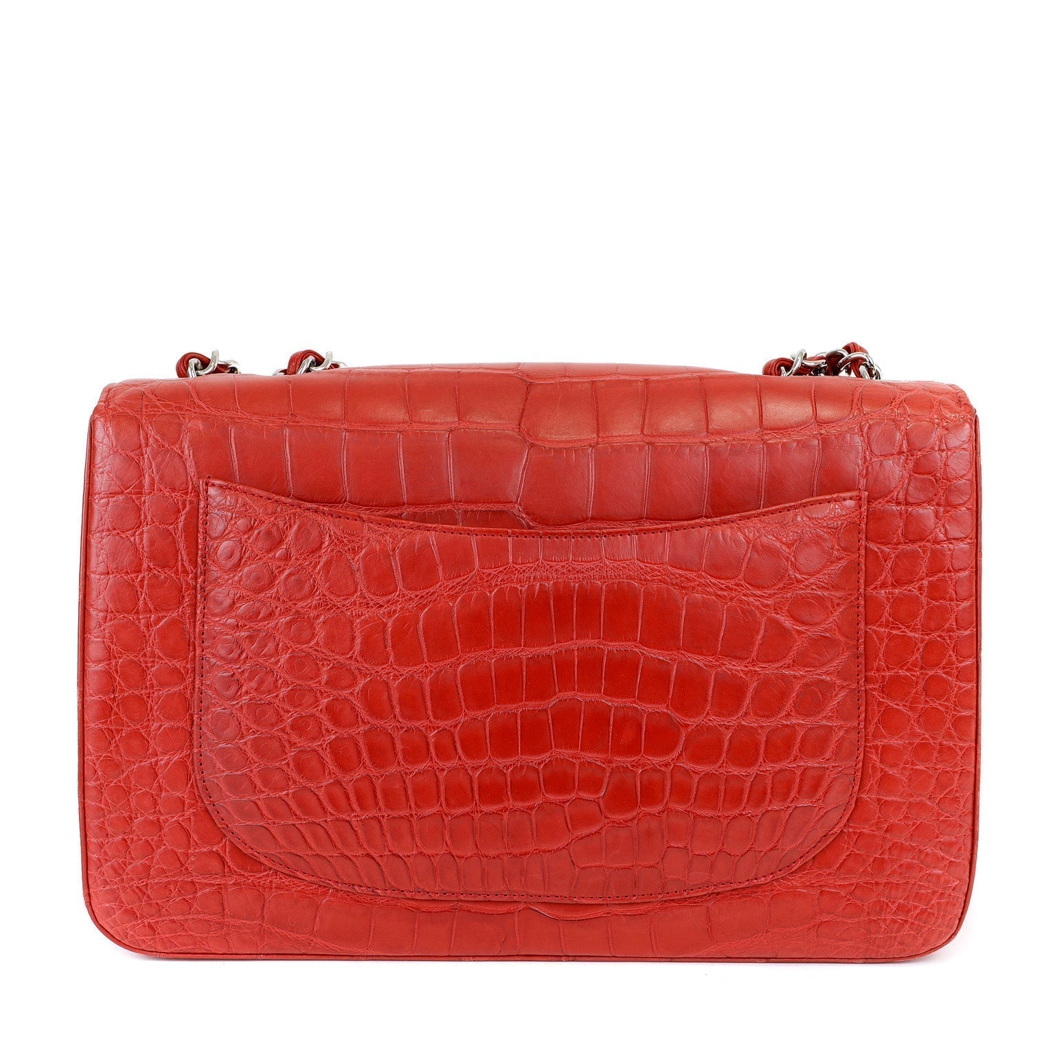 Chanel Red Crocodile Jumbo Classic with Silver Hardware