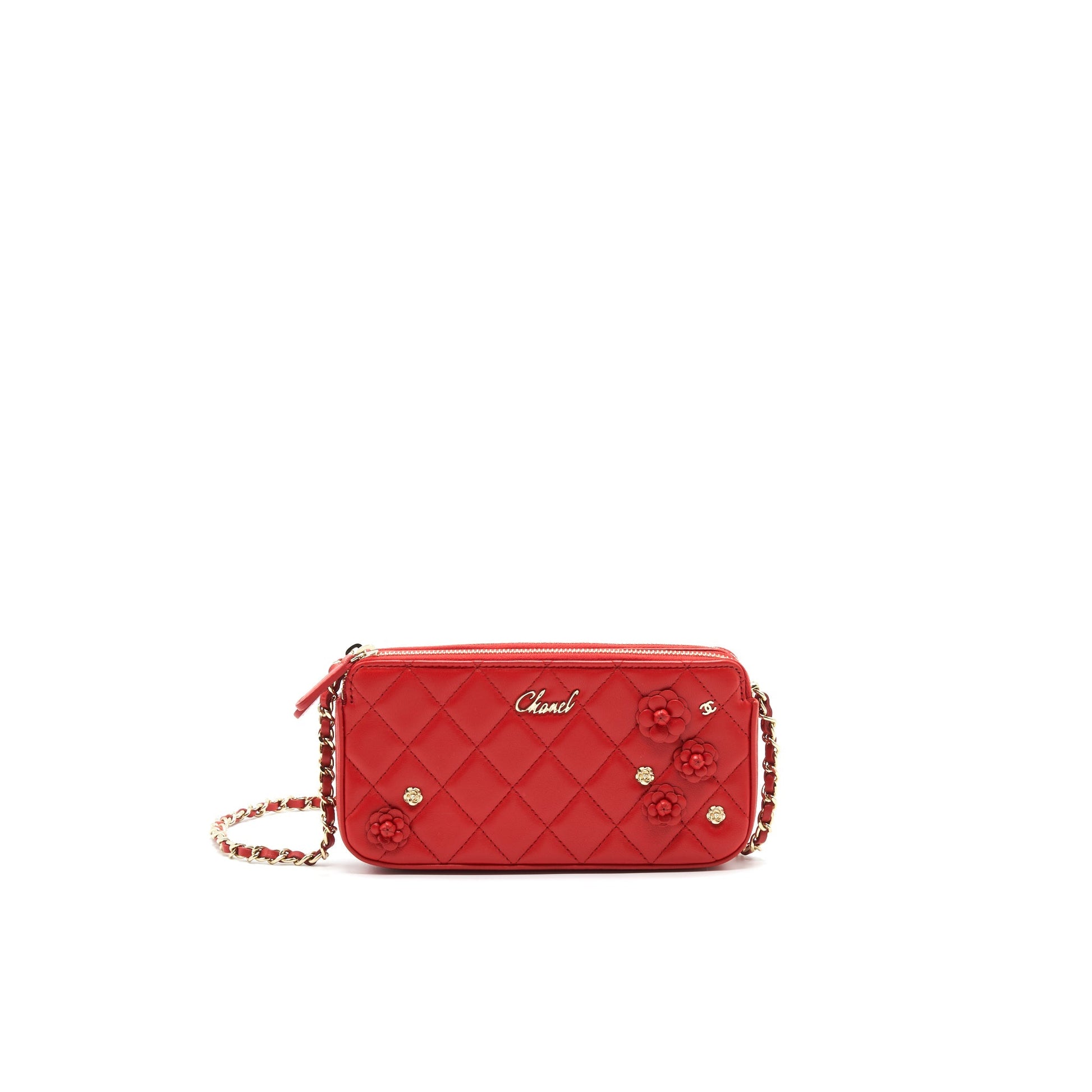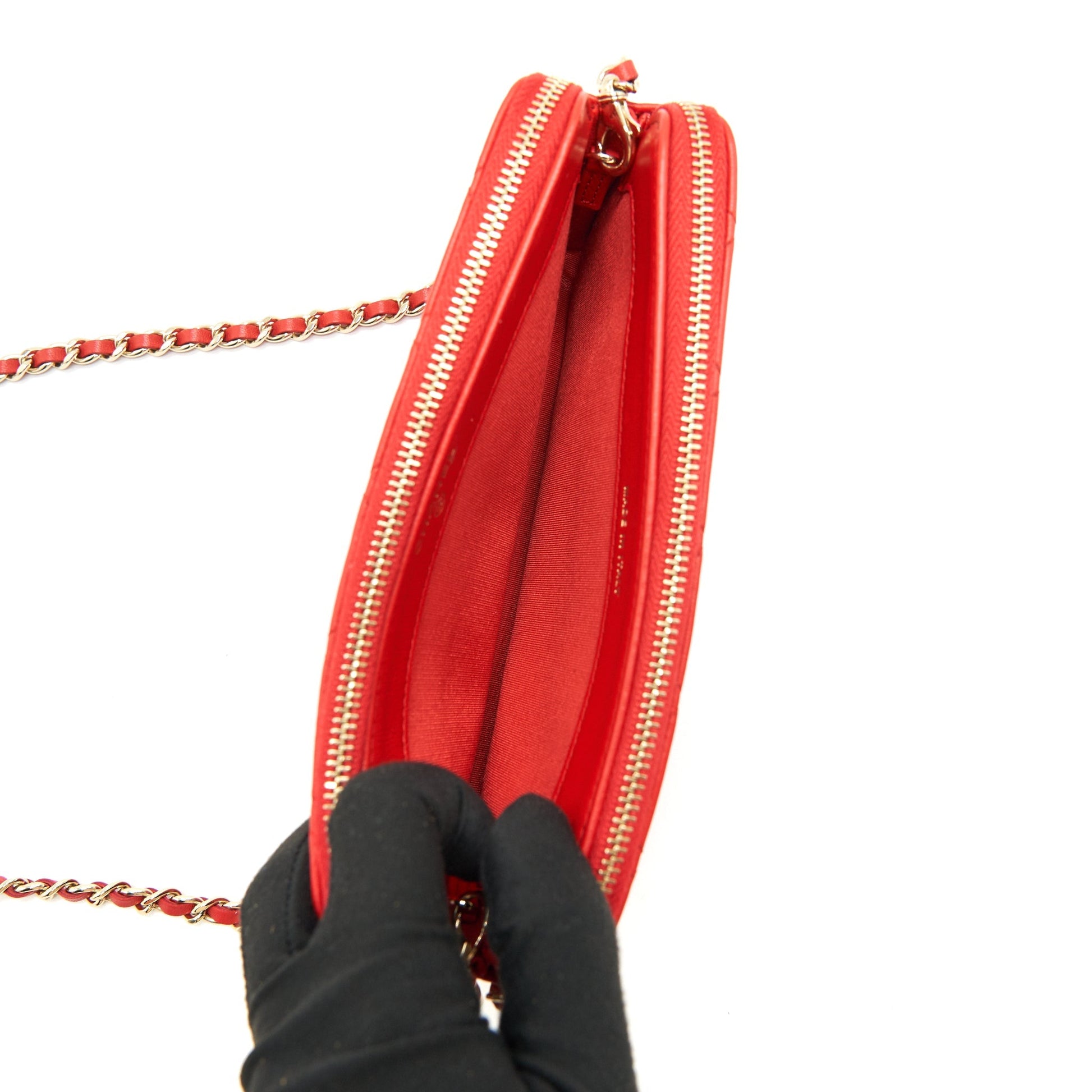 CHANEL RED DOUBLE ZIP WALLET ON CHAIN SPECIAL EDITION IN RED
