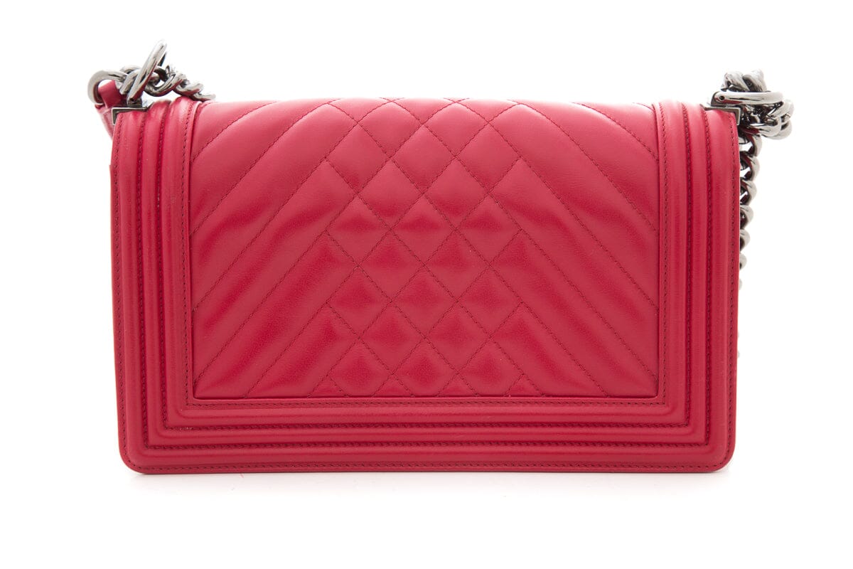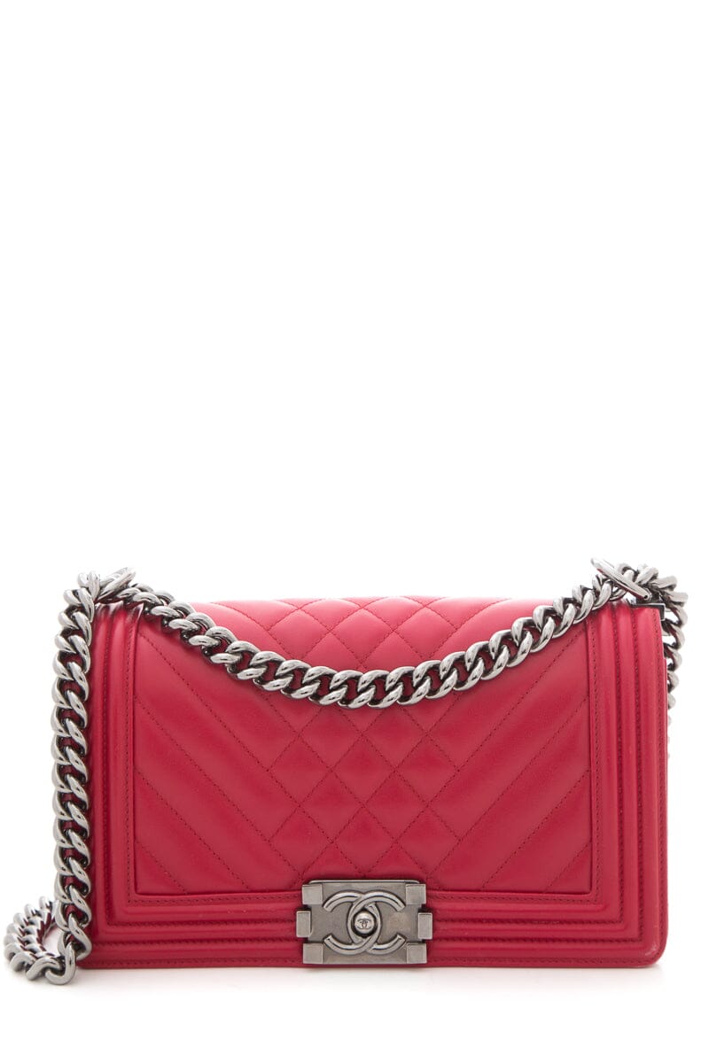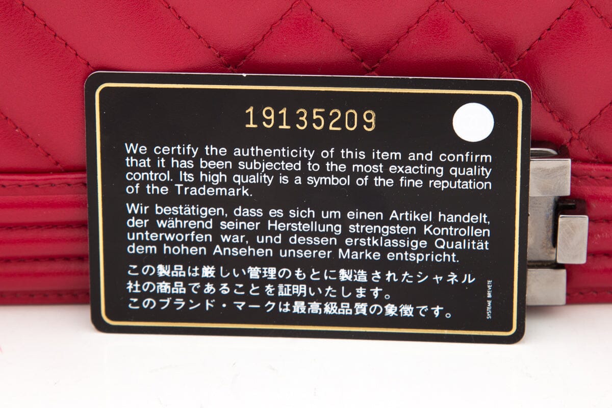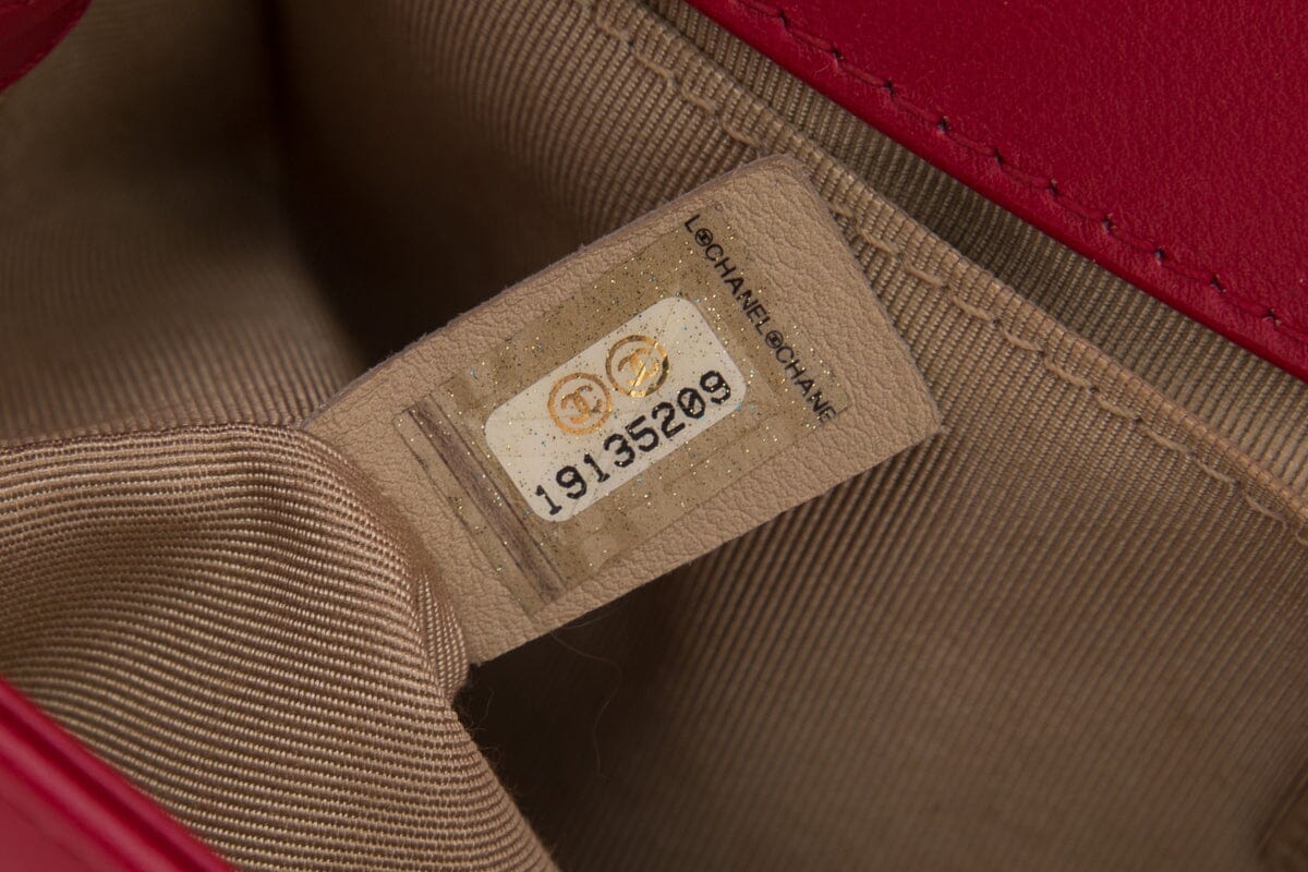 Chanel Red Medium Quilted Lambskin Handbag. This item is in New condition; slight wear to leather on corners.