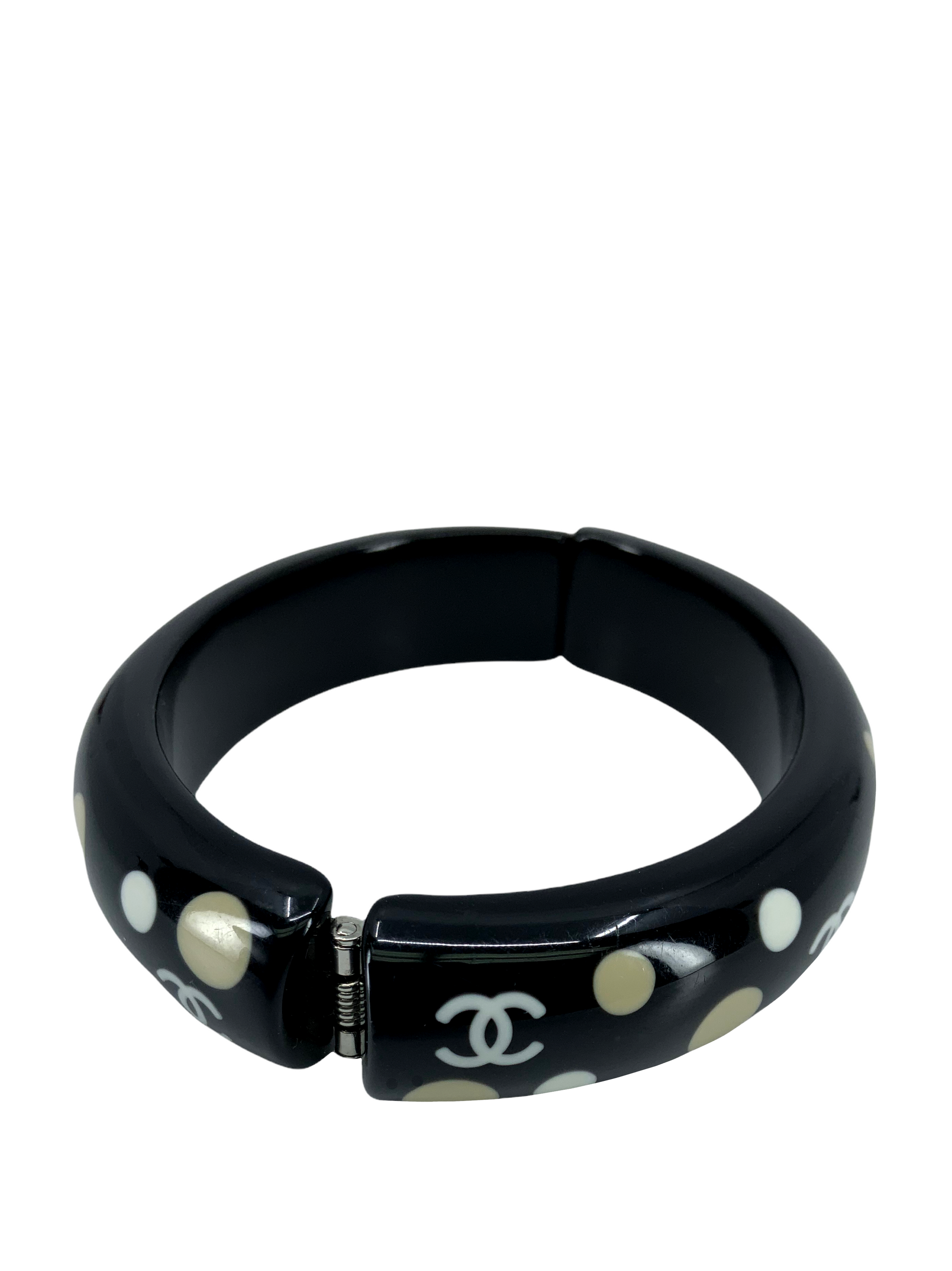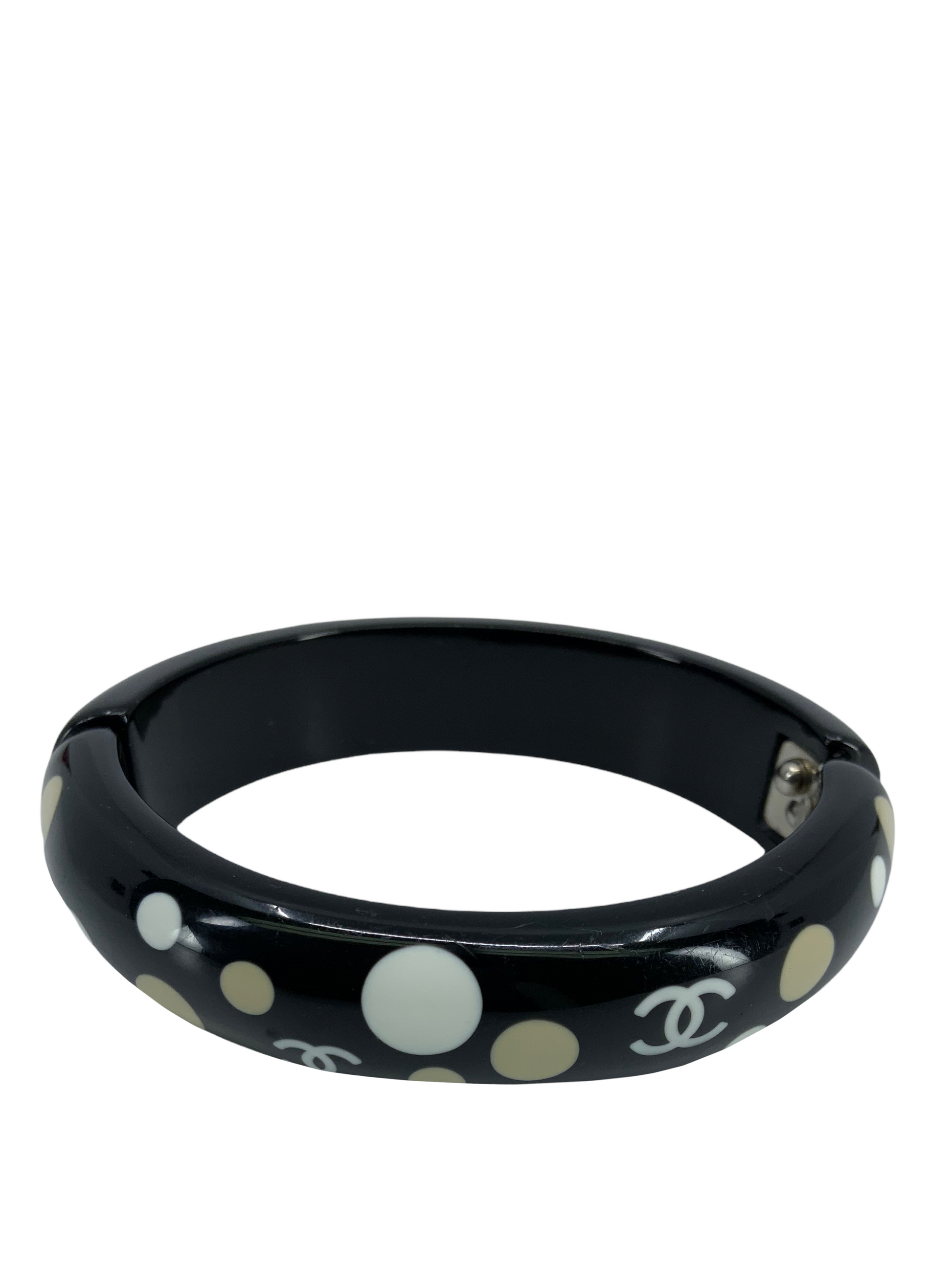 Chanel Resin CC Logo Polka Dot Bangle Bracelet