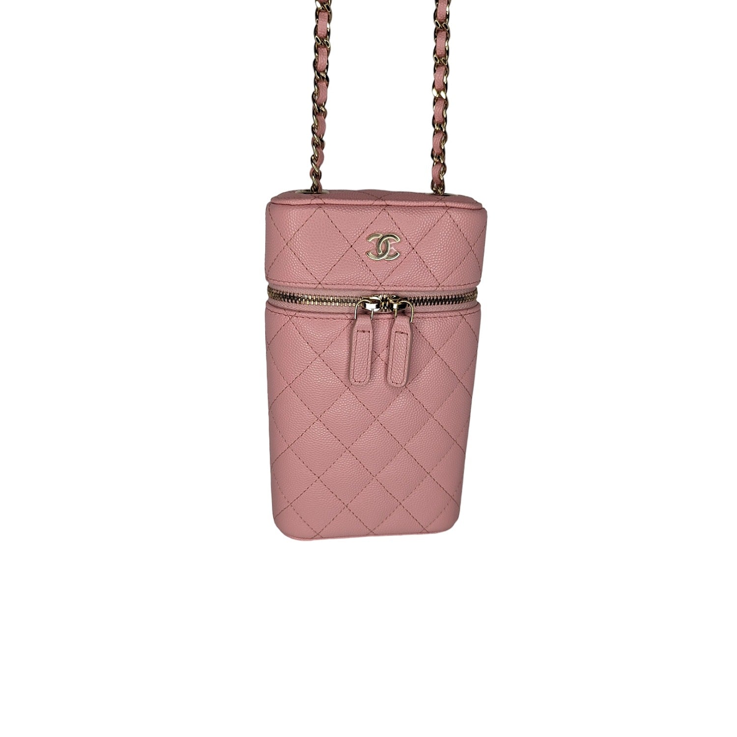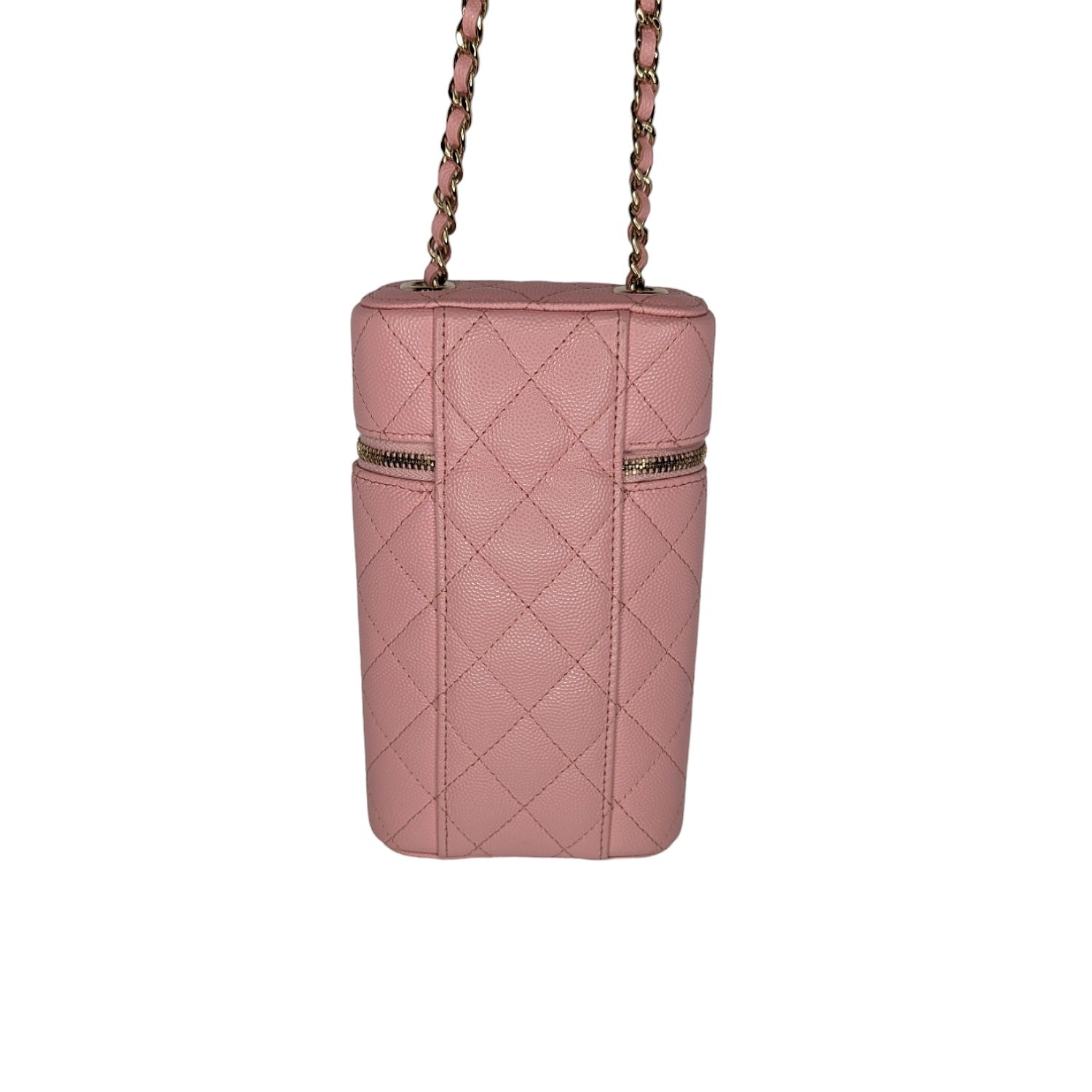 Chanel Rose Quilted Caviar Vanity O-Phone Holder With Chain