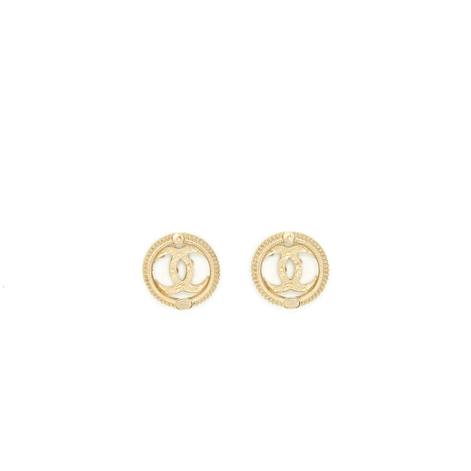 Chanel Round CC Logo Crystal and Pearl Earrings GHW