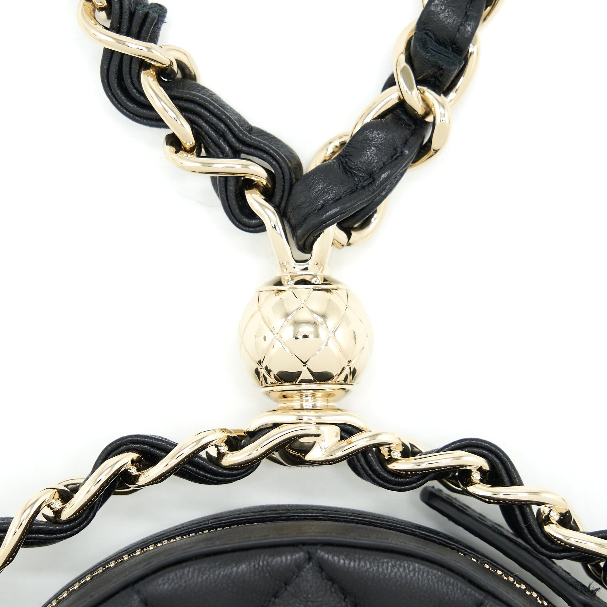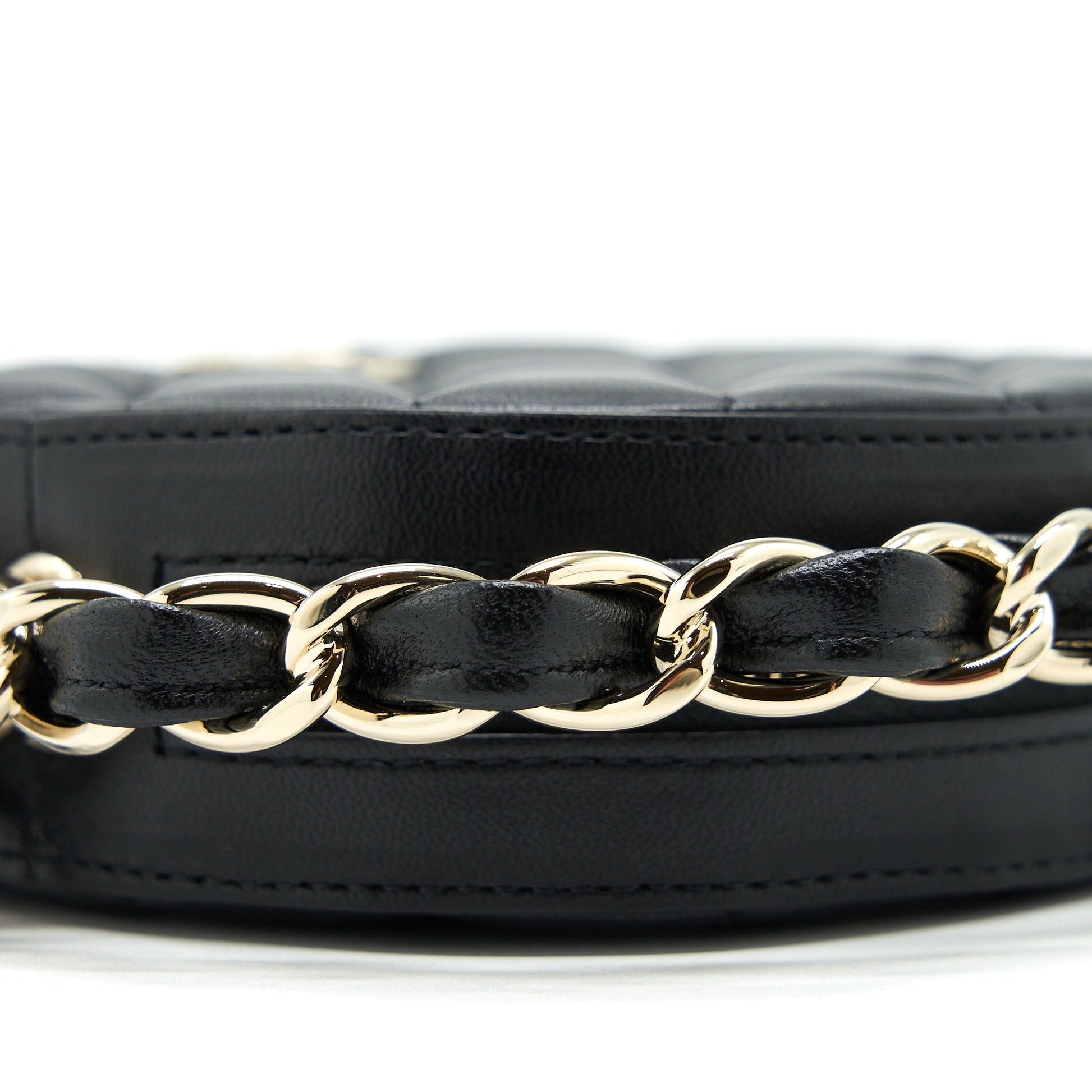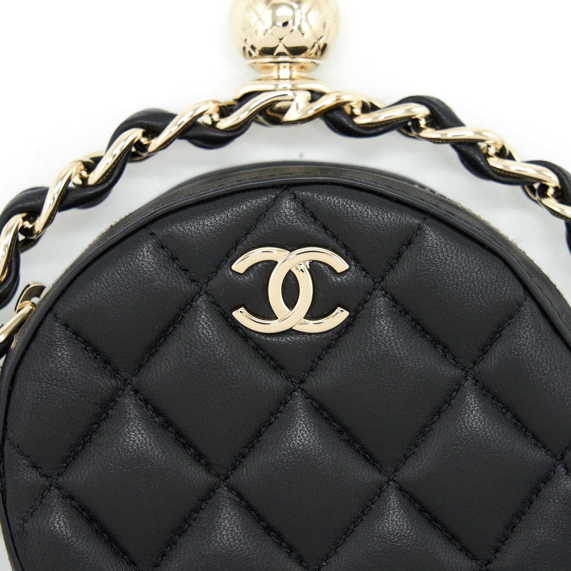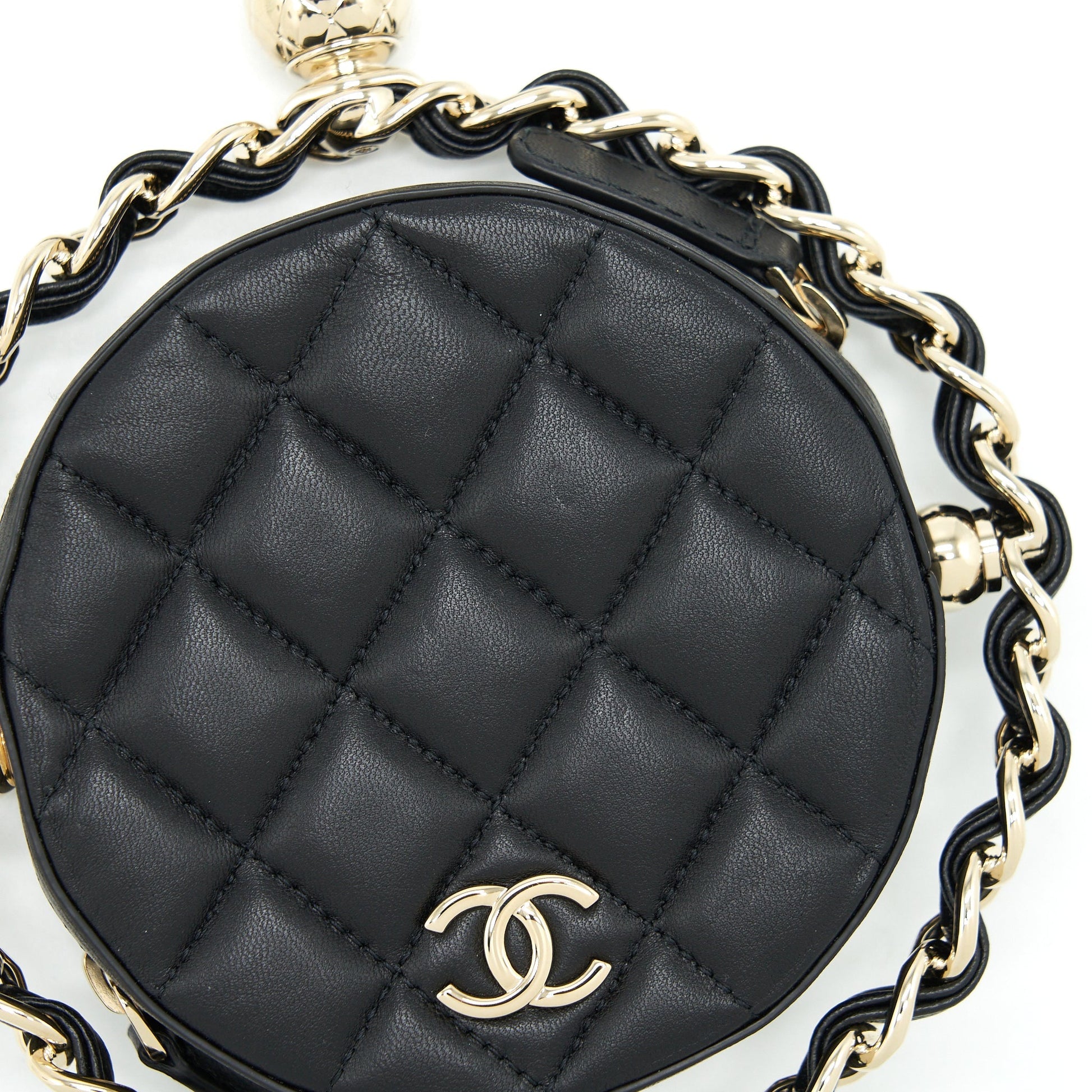 Chanel Round Clutch With Chain Lambskin Black LGHW