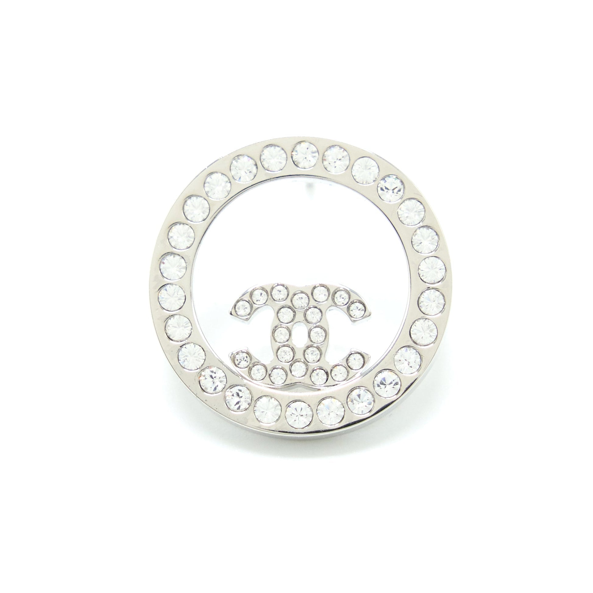 Chanel Round Crystal CC Earrings SHW