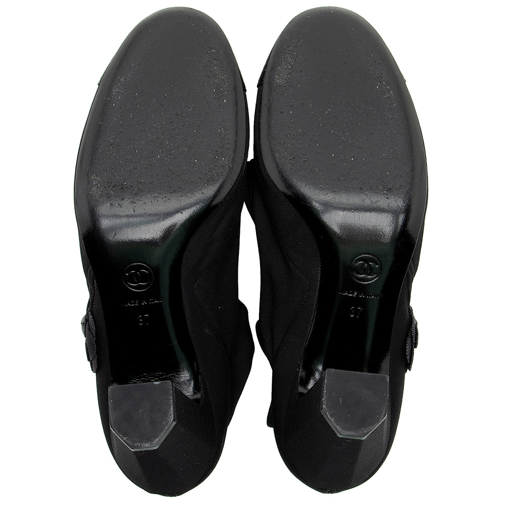 Chanel Satin Camellia Sock Boot - Size 7 / 37 (SHF-17935)