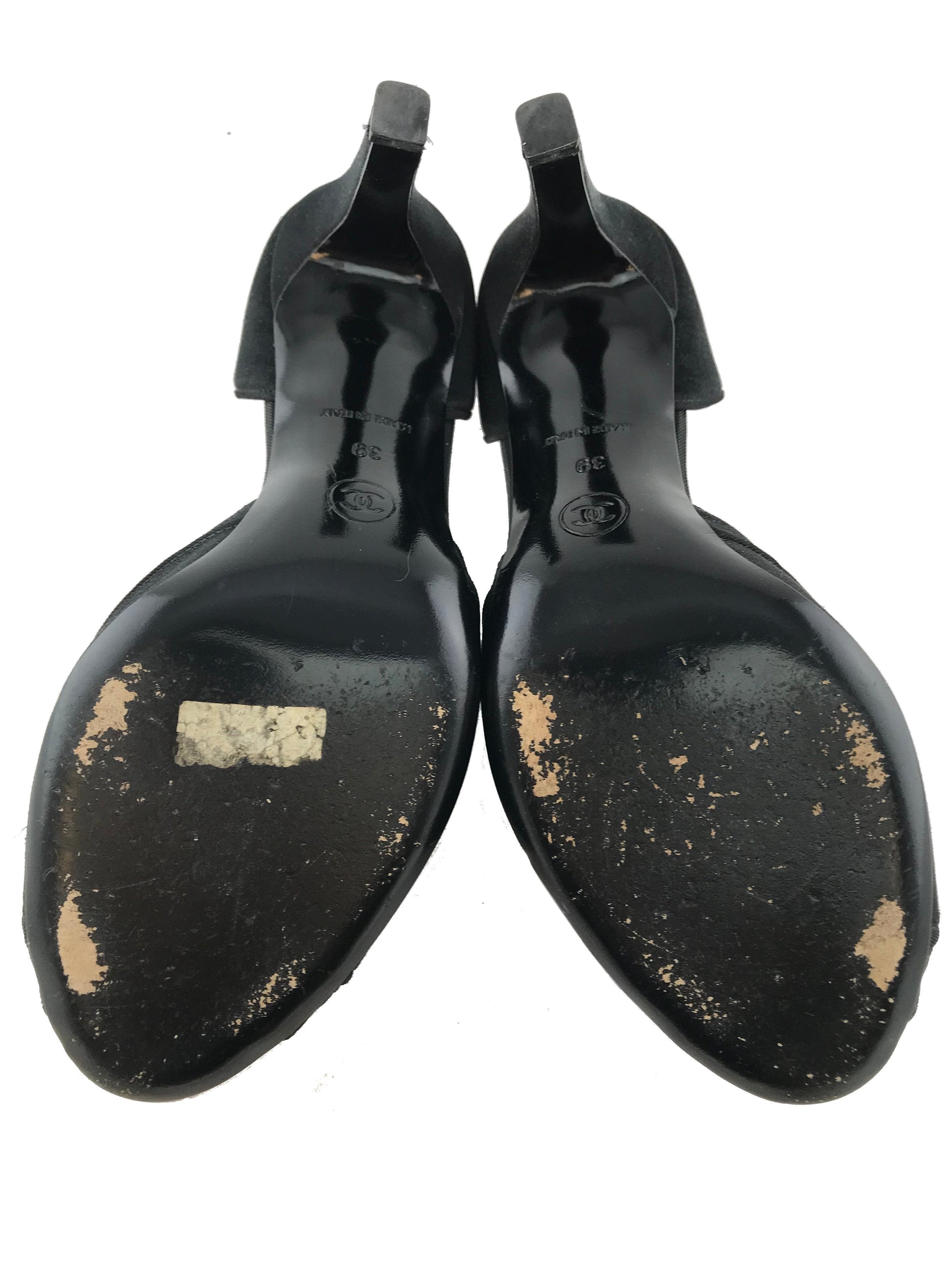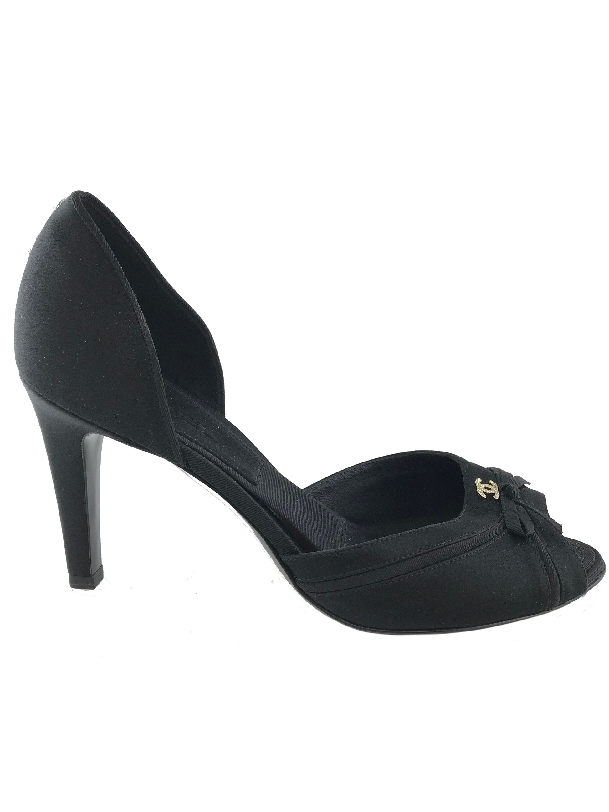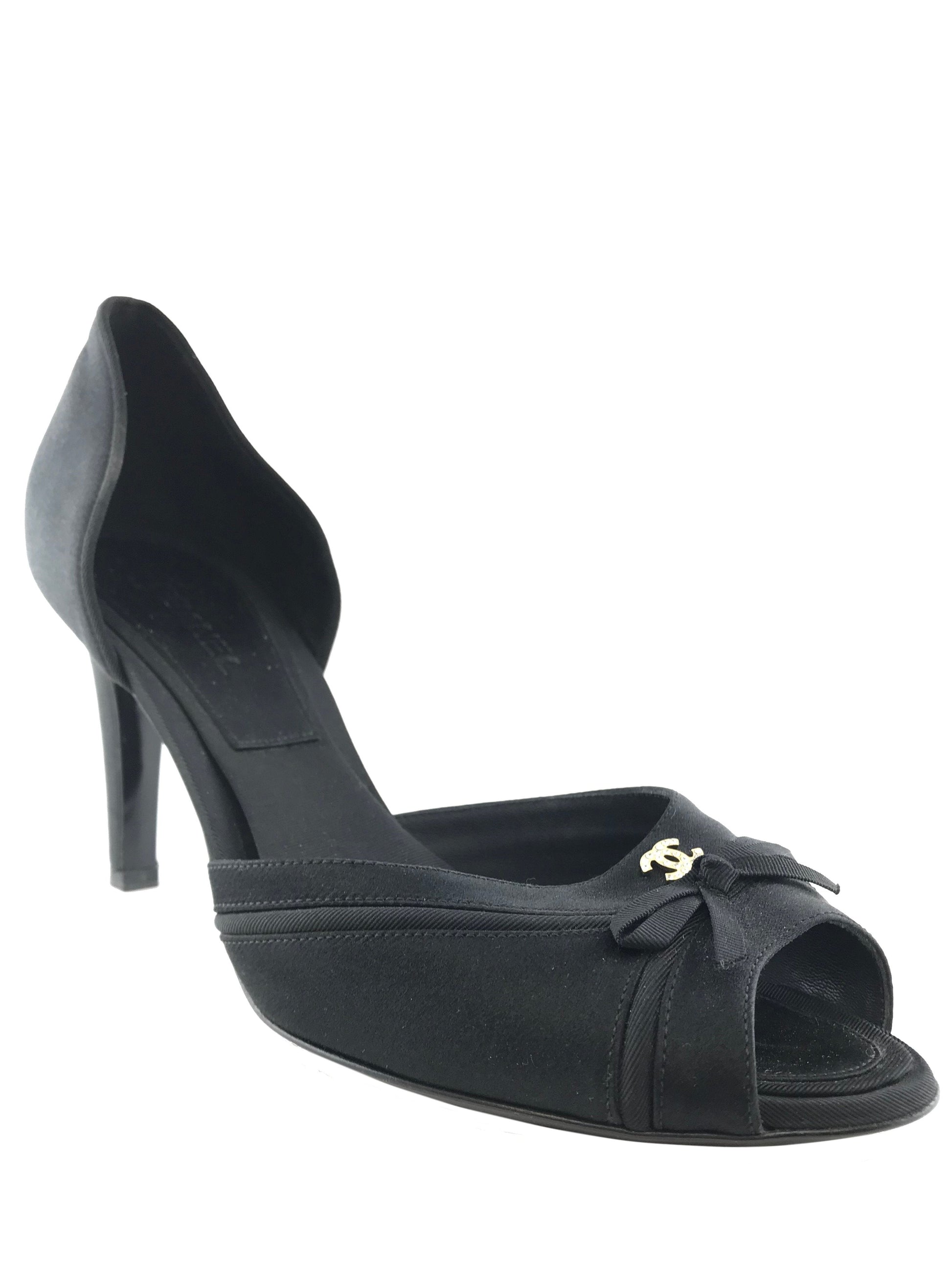 Add a touch of style to your wardrobe with this chic pair of Chanel Satin CC d'Orsay Pumps Size 8 (IT 38) crafted from black satin and tonal top-stitching. Featuringacrystal-embellished interlocking 'CC' logo and bow tie accent on the vamp.