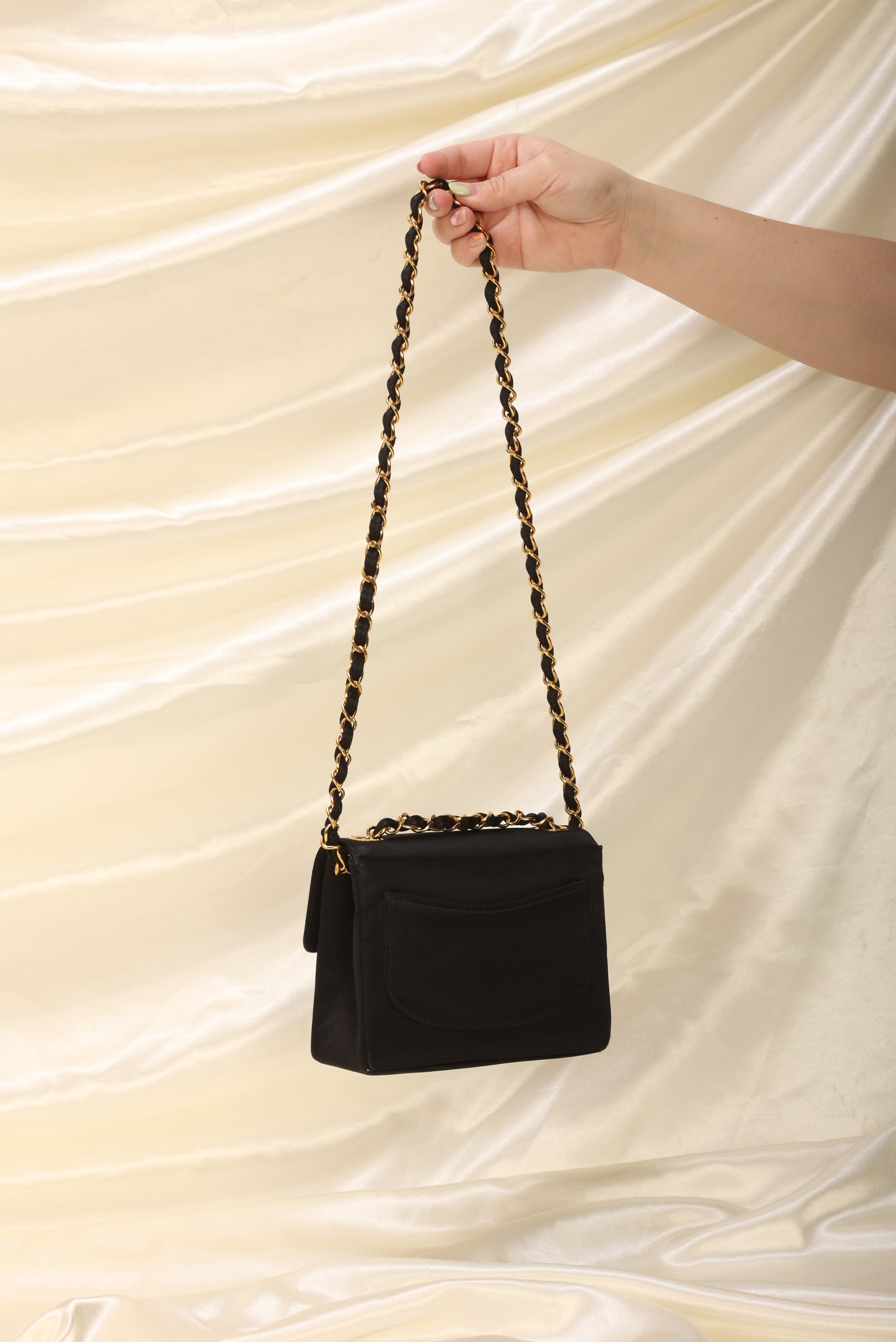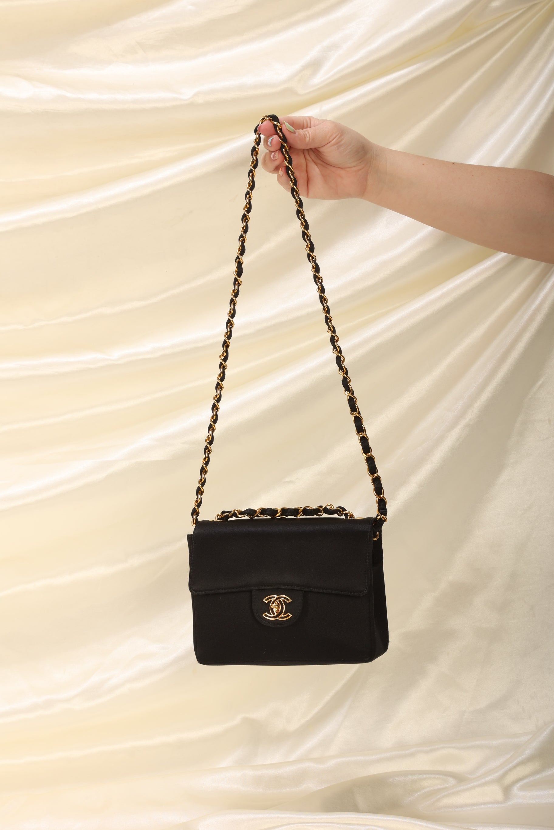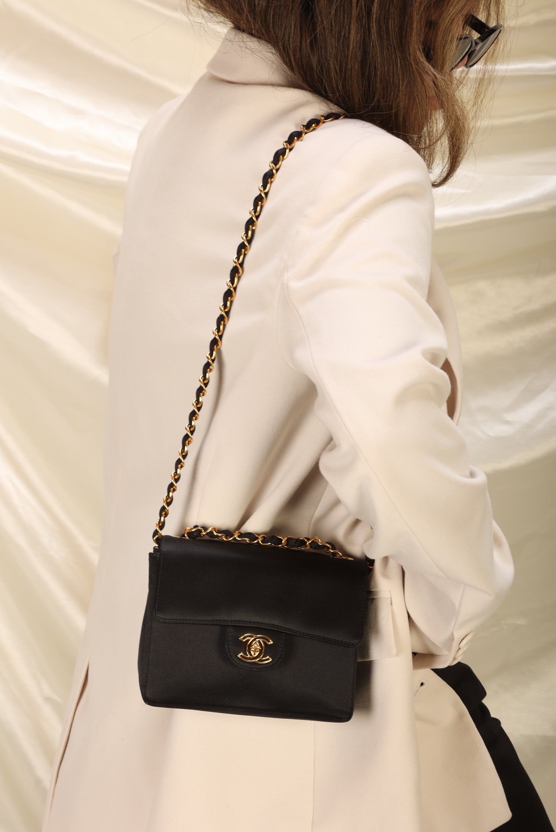 Not currently available anywhere online! This may look like a classic square flap, but what differentiates her is the solid satin finish mixed with an ultra rare pending CC turnlock!!!?Rare piece crafted in 24K gold plated. Can fit some small phone models and keys.