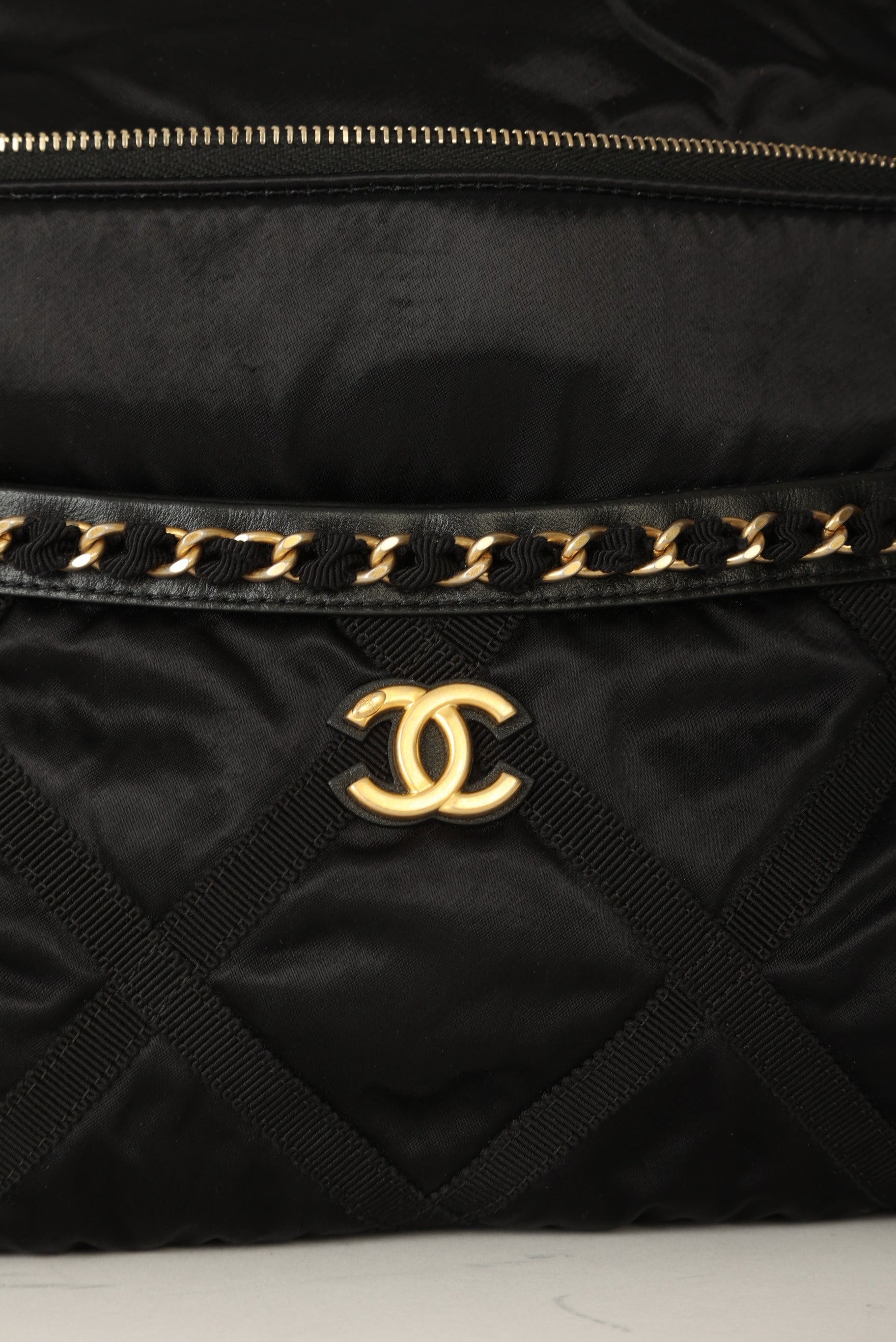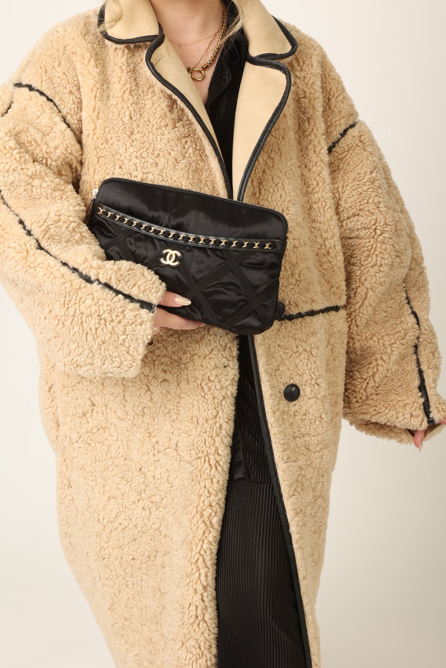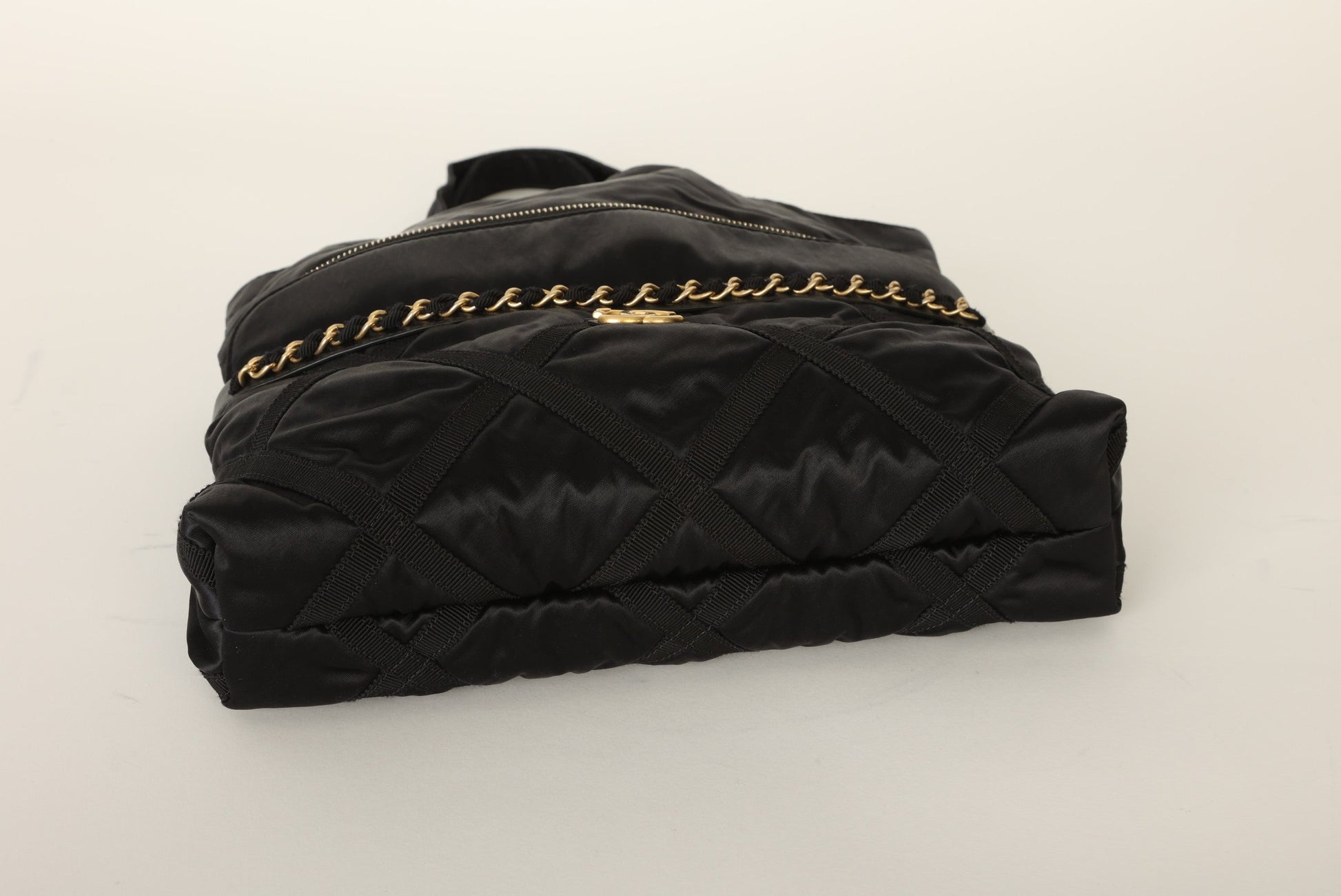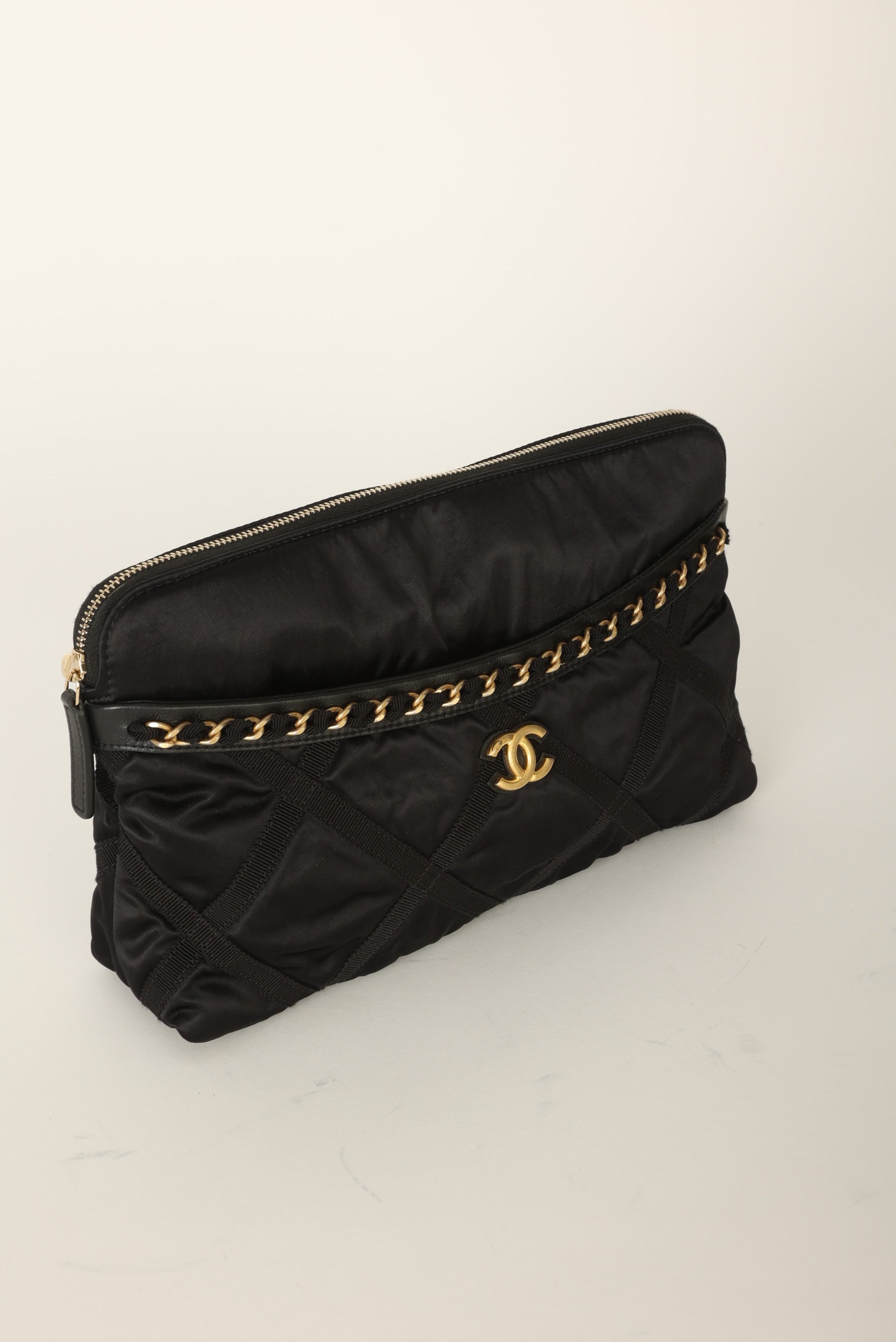 Dropping in the shop is a unique Chanel Satin Zip Clutch Tote in black with aged gold hardware! This piece is two bags in one! All zipped up, this bag acts as a clutch. Unzipped, the bag unfolds into a tote! Such a unique and creative piece that can be styled for any occasion! The aged gold hardware elevates the bag in such a chic way. You an fit your iPad Mini/Kindle and the rest of your daily essentials.?