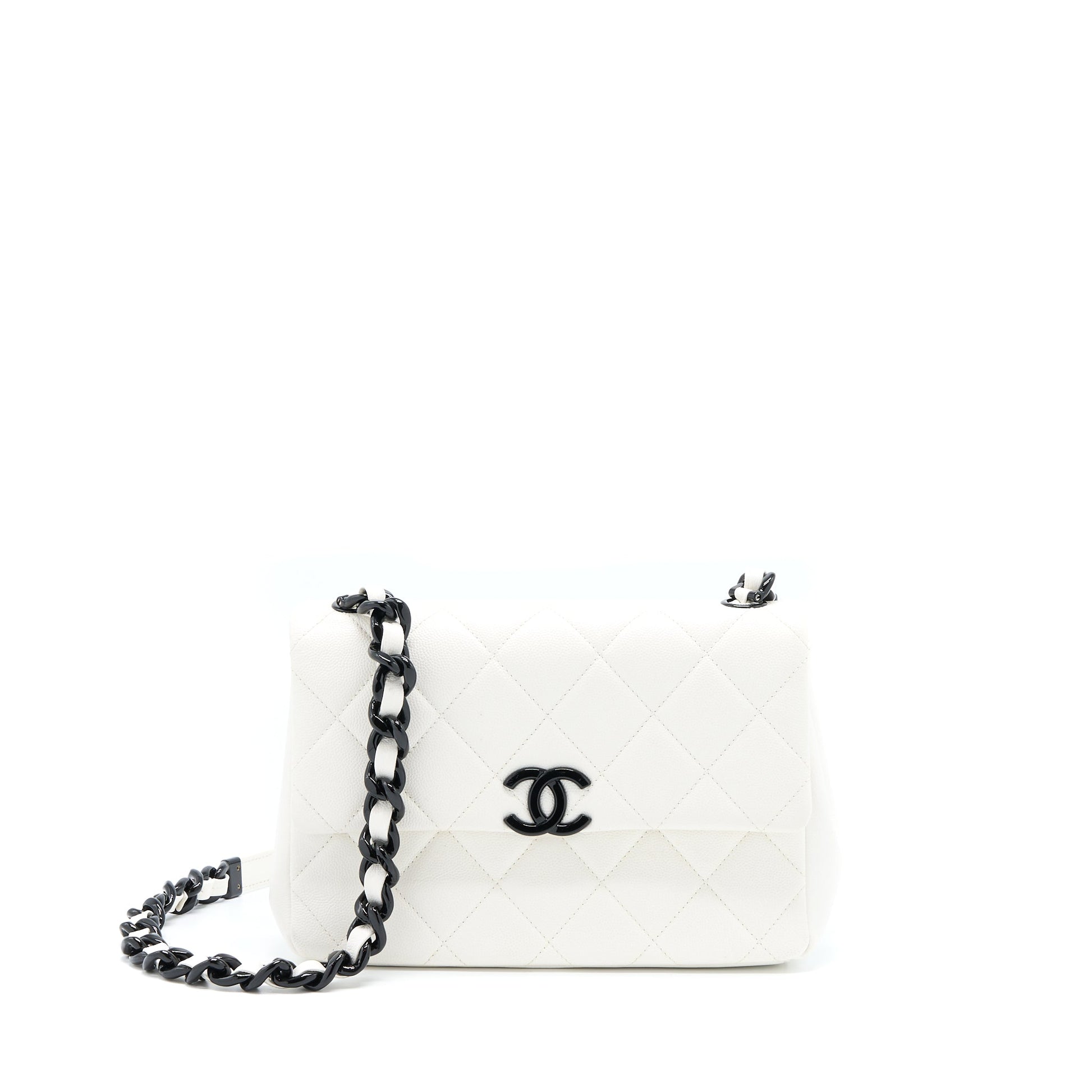 Chanel Seasonal Flap Bag Caviar White With Black Hardware