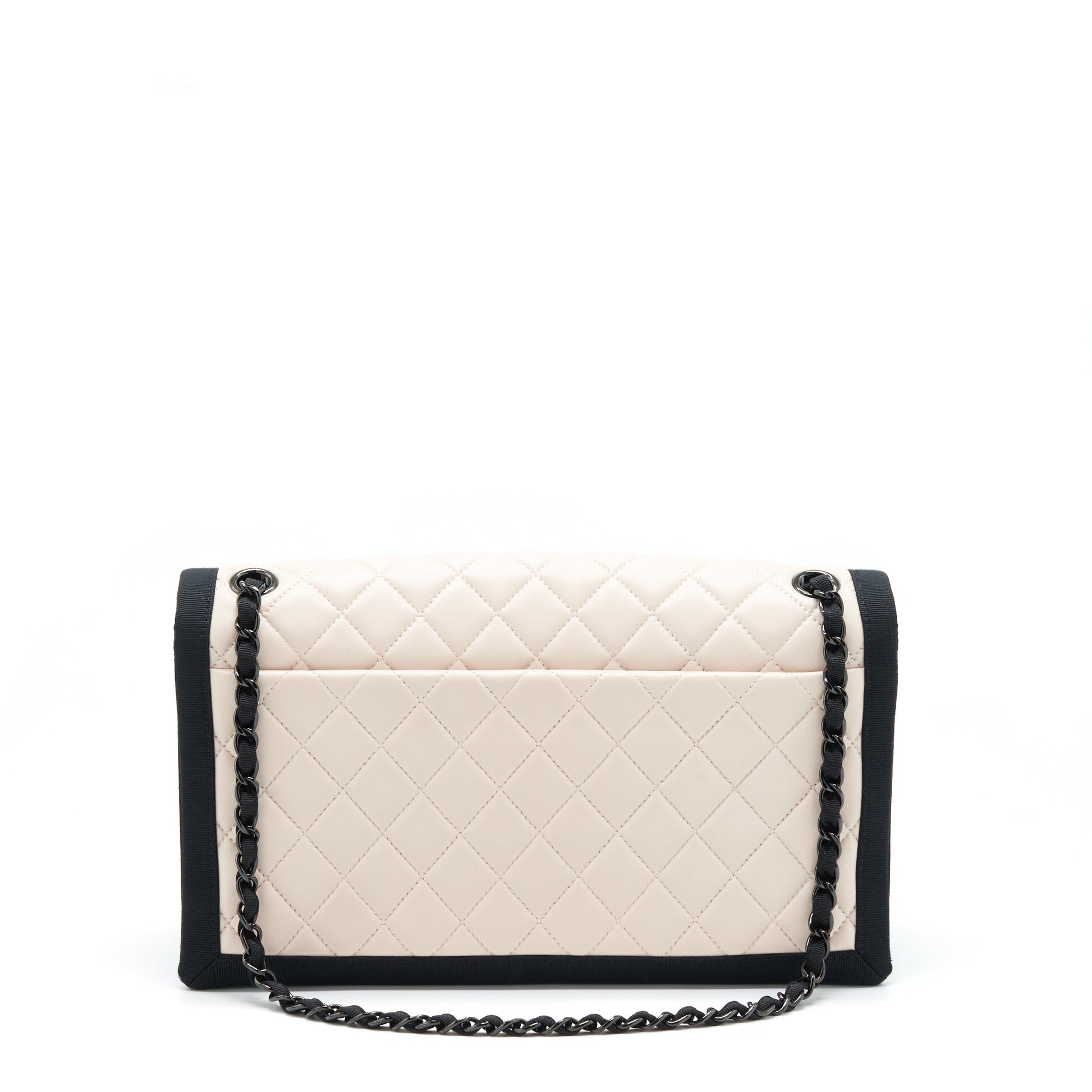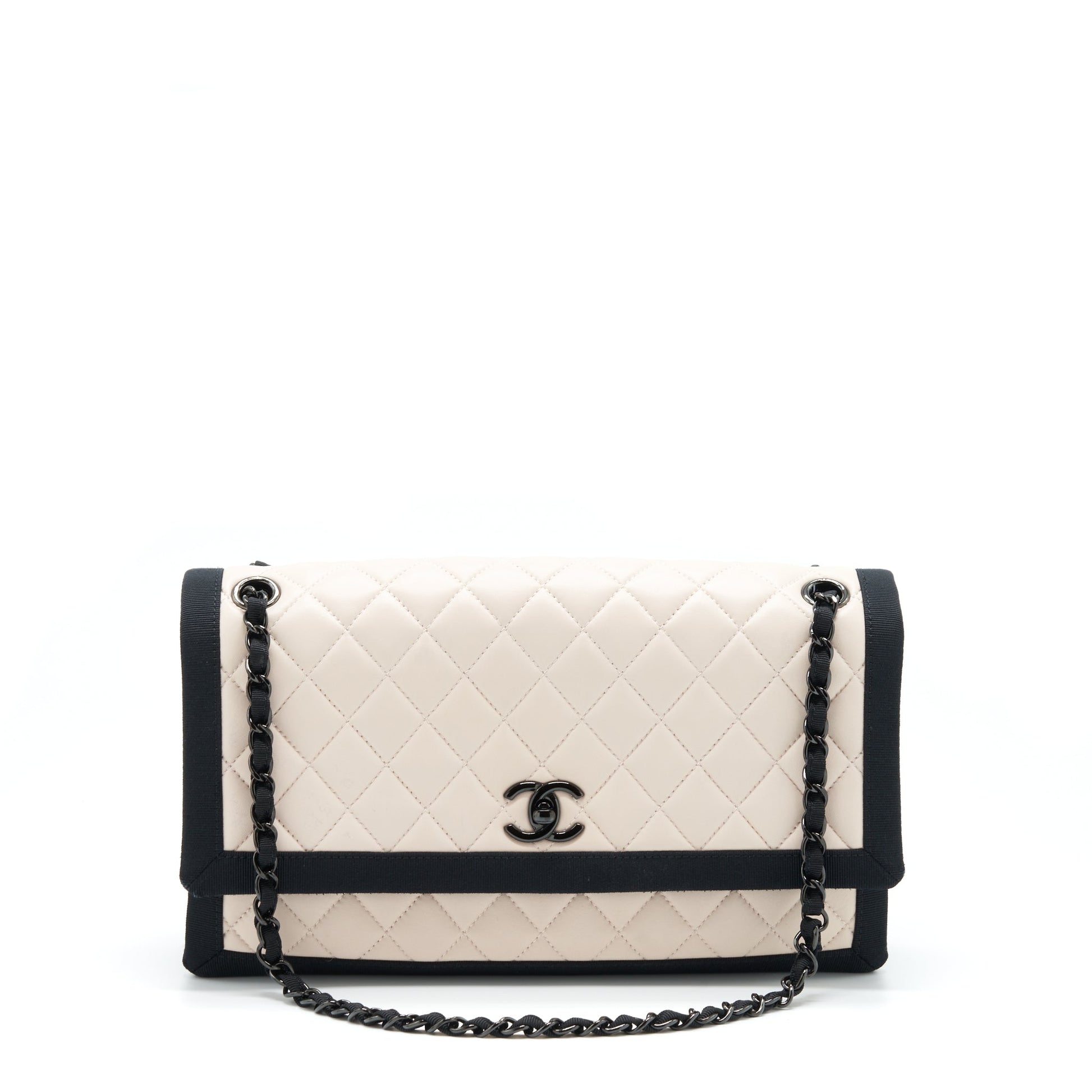 Chanel Seasonal Flap Bag Lambskin Light Beige Black Hardware