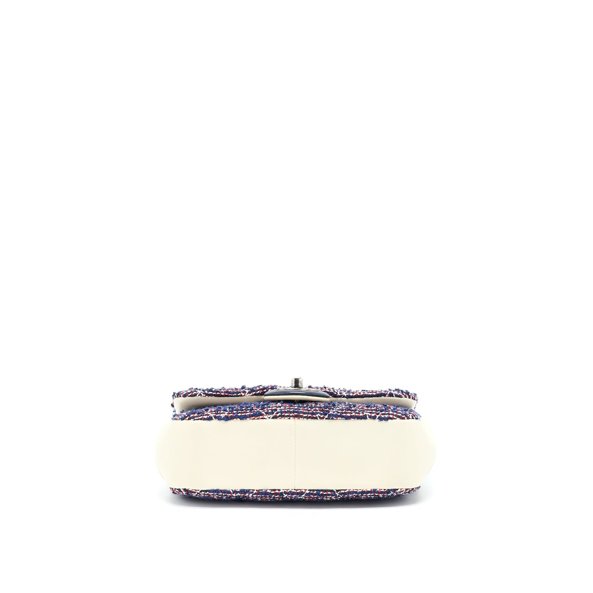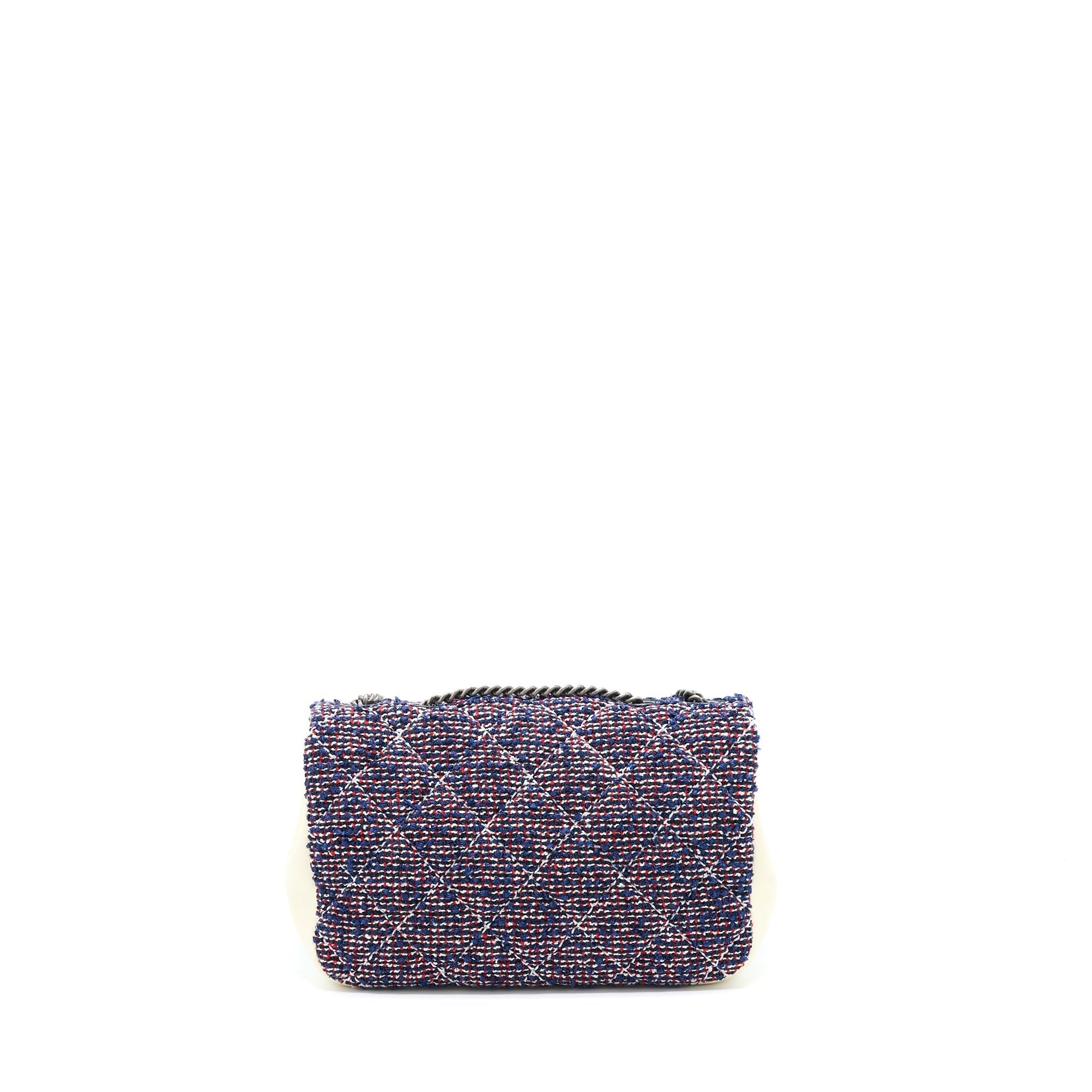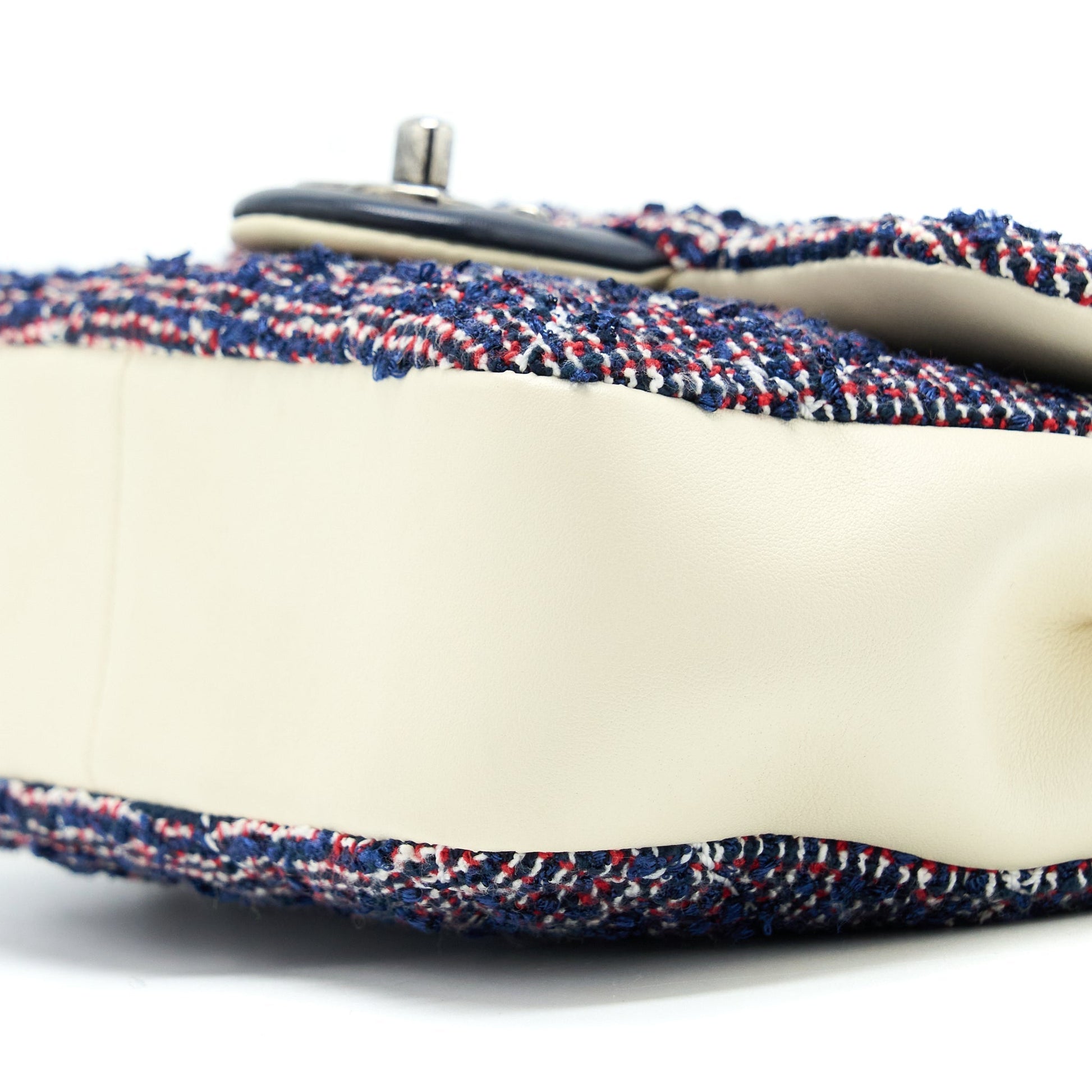 Chanel Seasonal Mini Rectangular Flap Bag Tweed Blue/ Red/ White Ruthenium Hardware