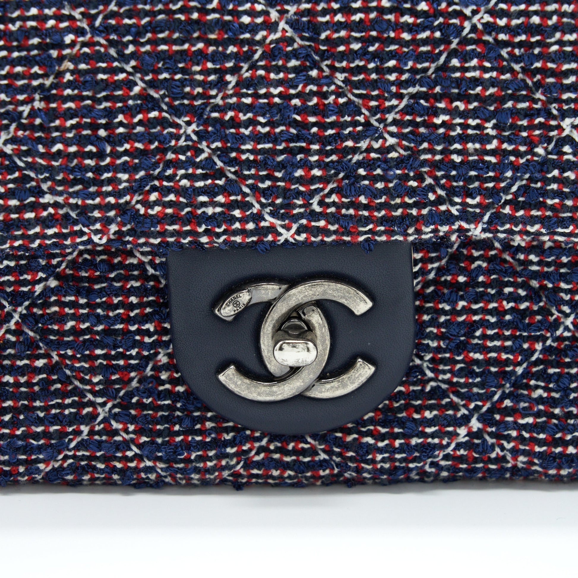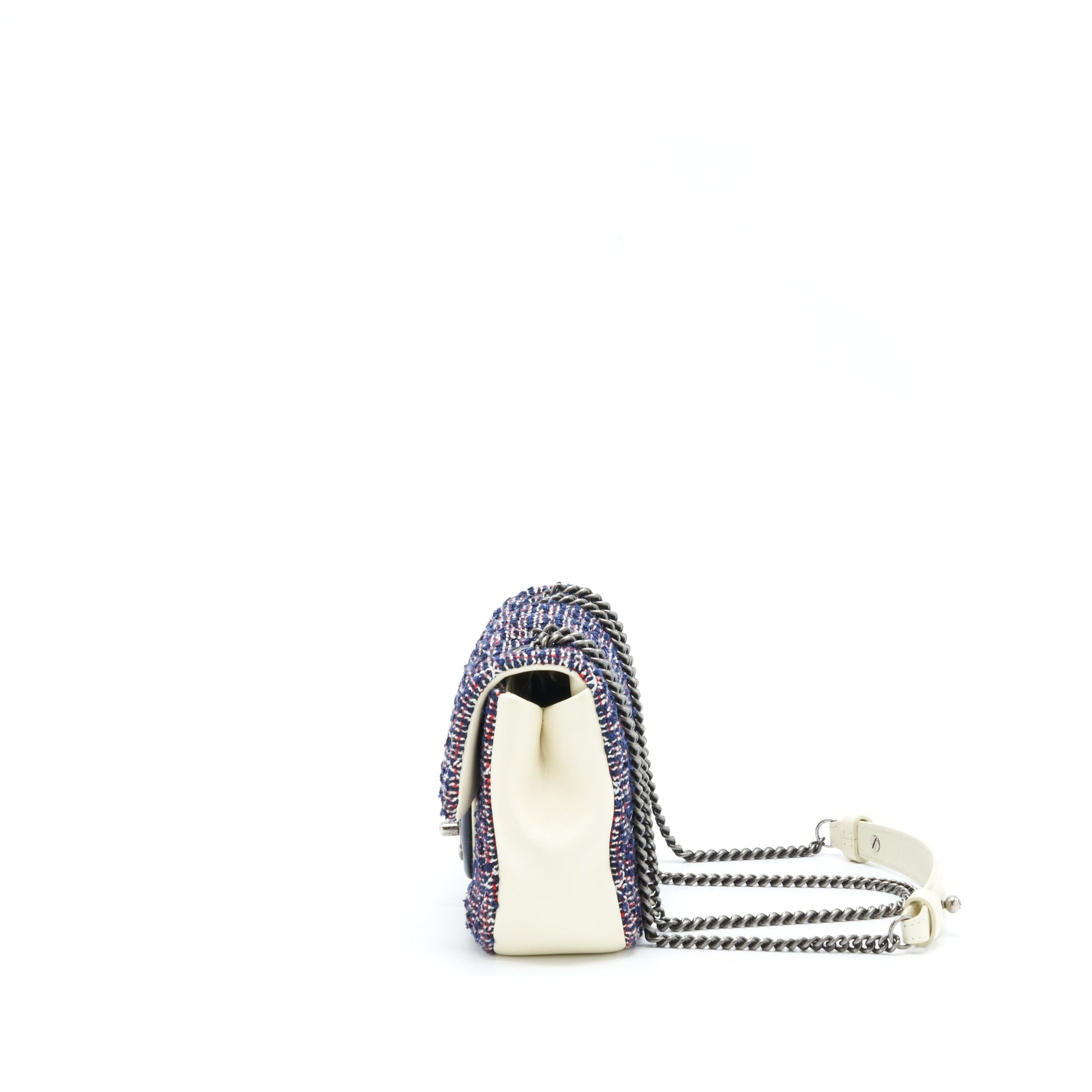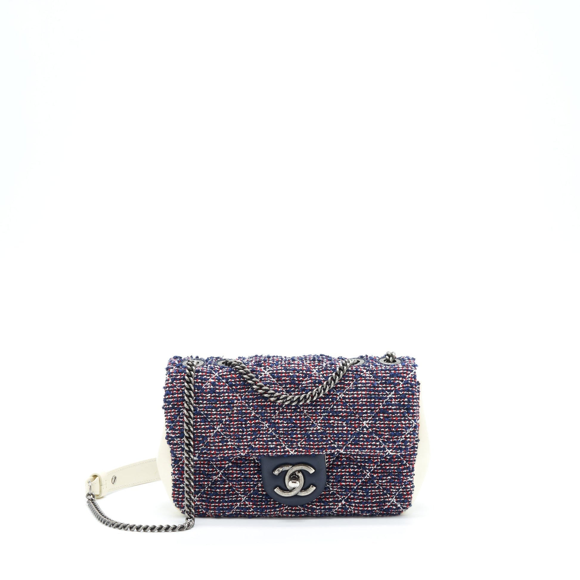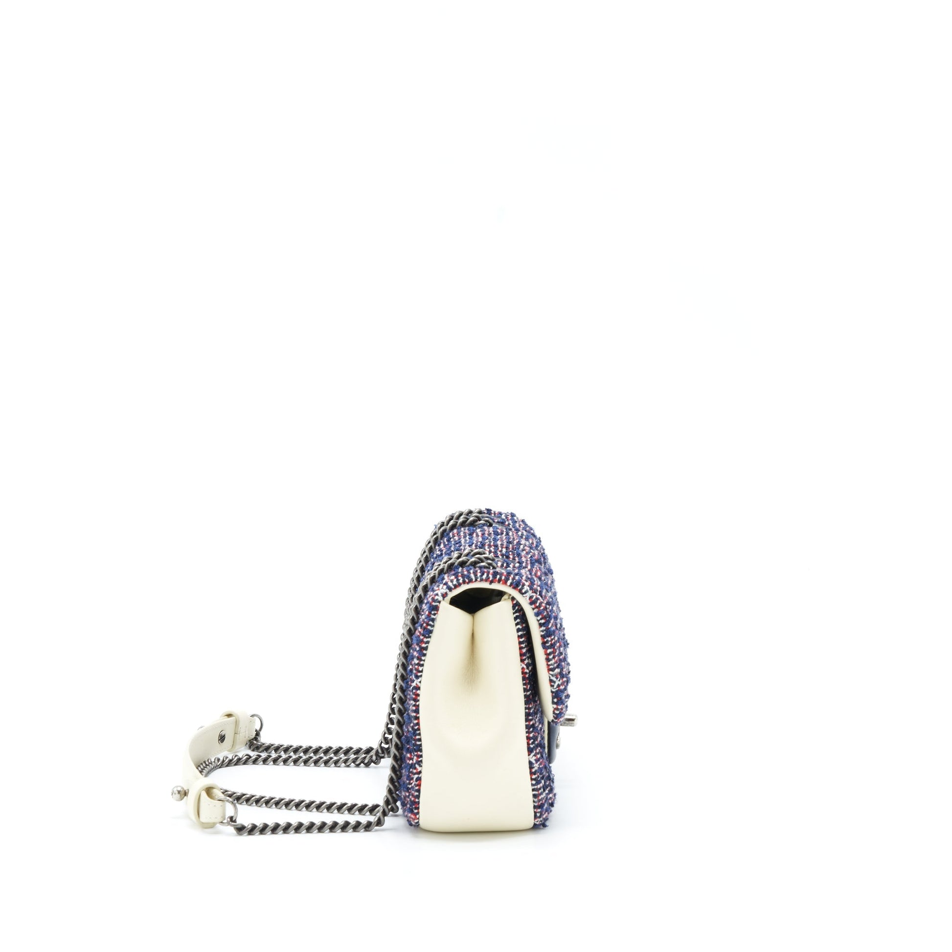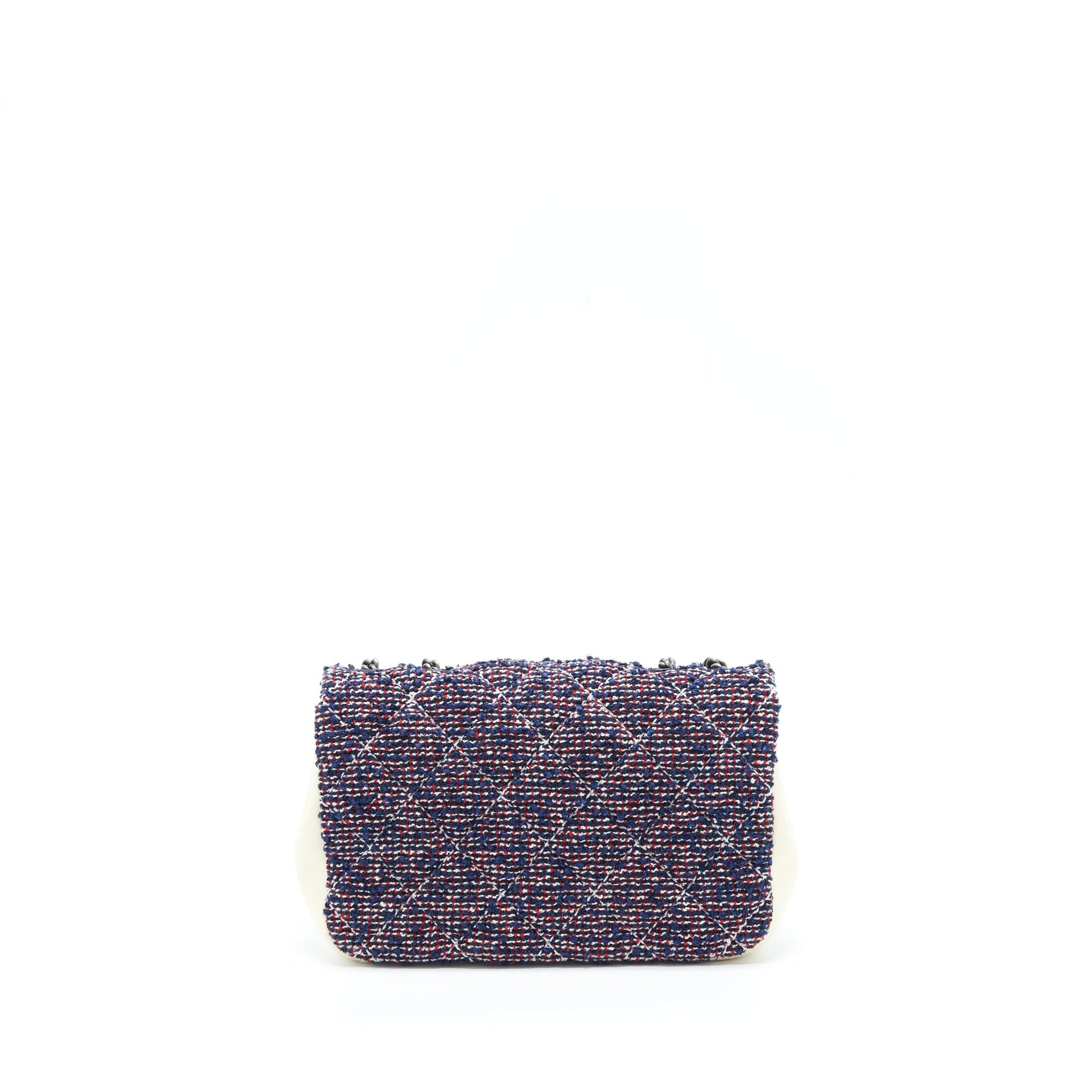 Chanel Seasonal Mini Flap Bag Tweed Blue/ Multicolour Ruthenium Hardware