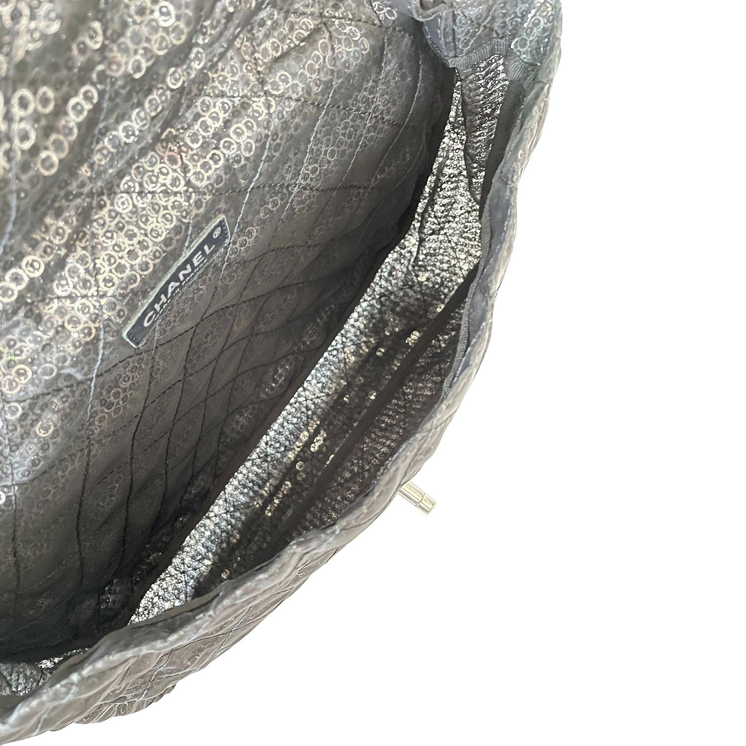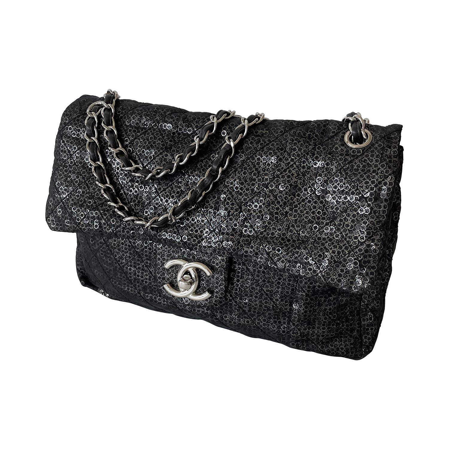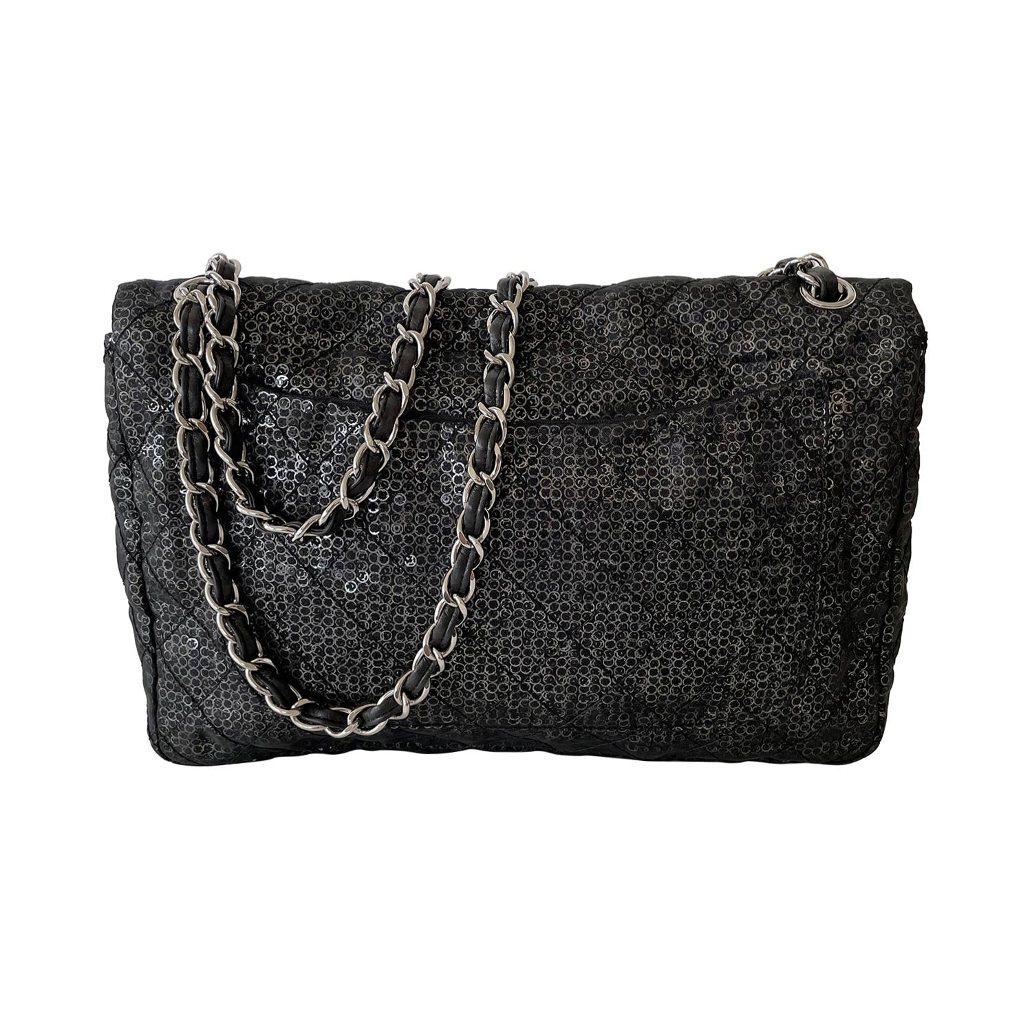 Description: Chanel Sequins Mesh Jumbo Classic Flap Bag