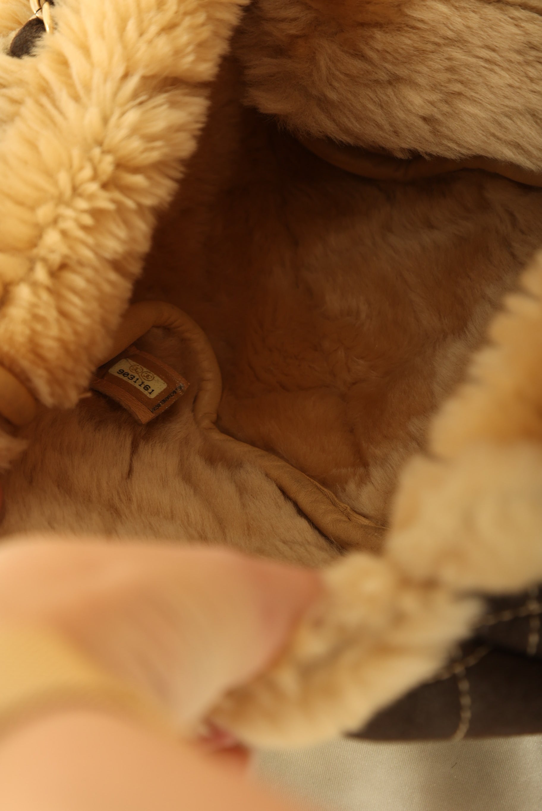 Please note: Small opening near turnlock plate due to slight leather pull. Three missing stitches near edges, but does not compromise structure. Slight shearling balding near armpit lip.?Please refer to photos for more details.?