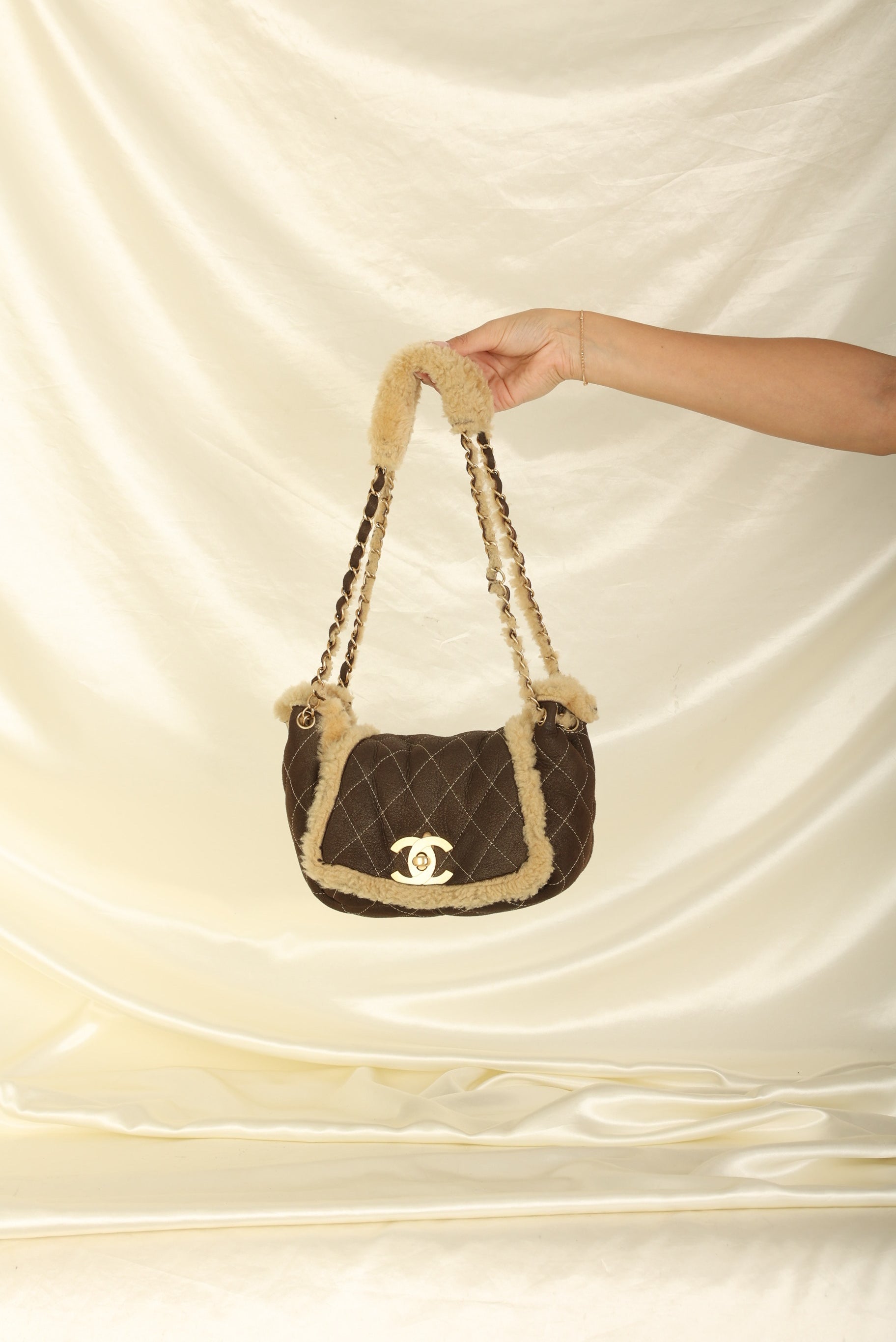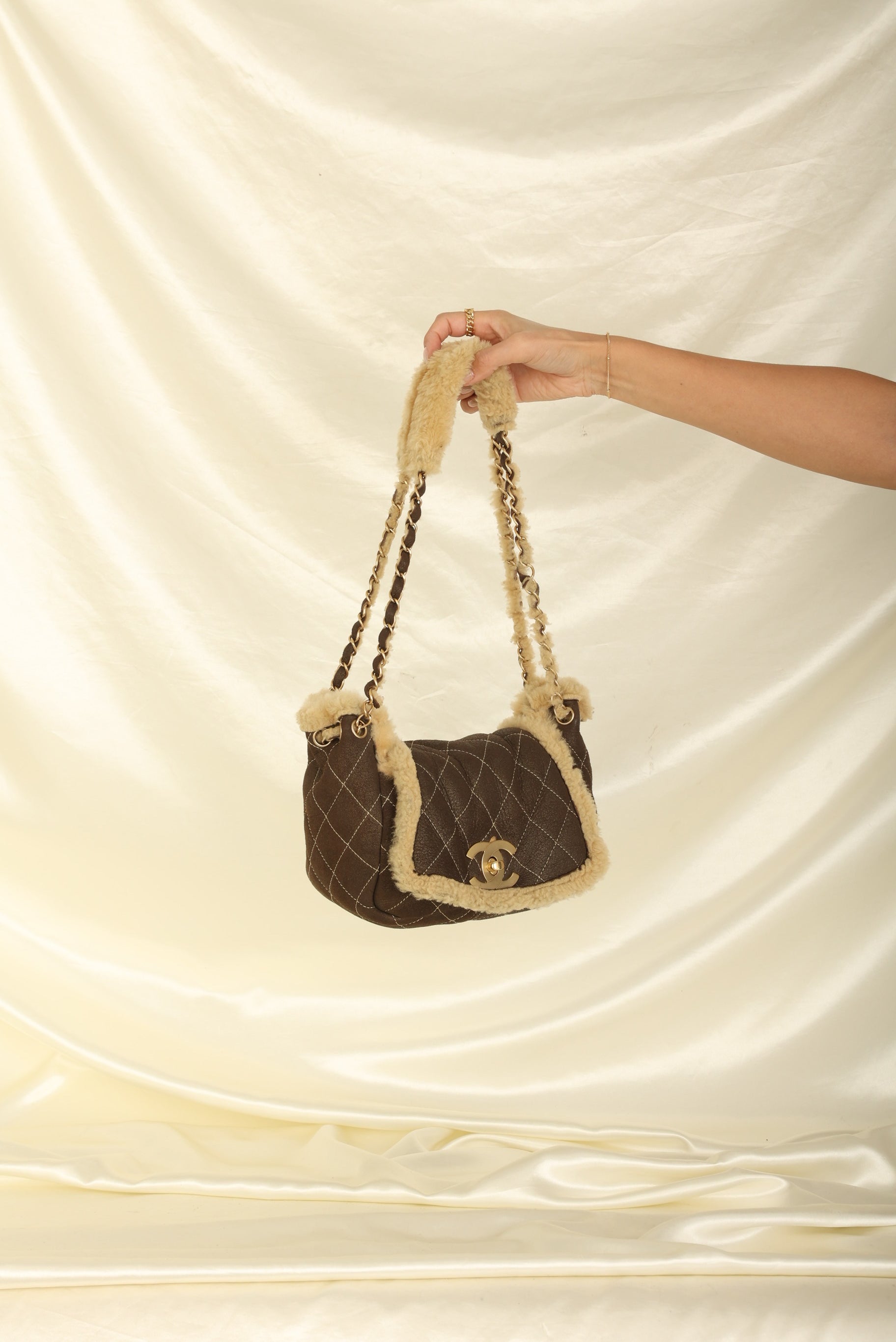 This cozy little cutie of a bag is such a great piece to have in your collection for both fall and winter! The Chanel Shearling Chain Flap comes in a gorgeous deep brown that's complimented perfectly by matte gold accents. You can fit your phone, sunglasses, keys, wallet, and a few of your smaller essentials.?