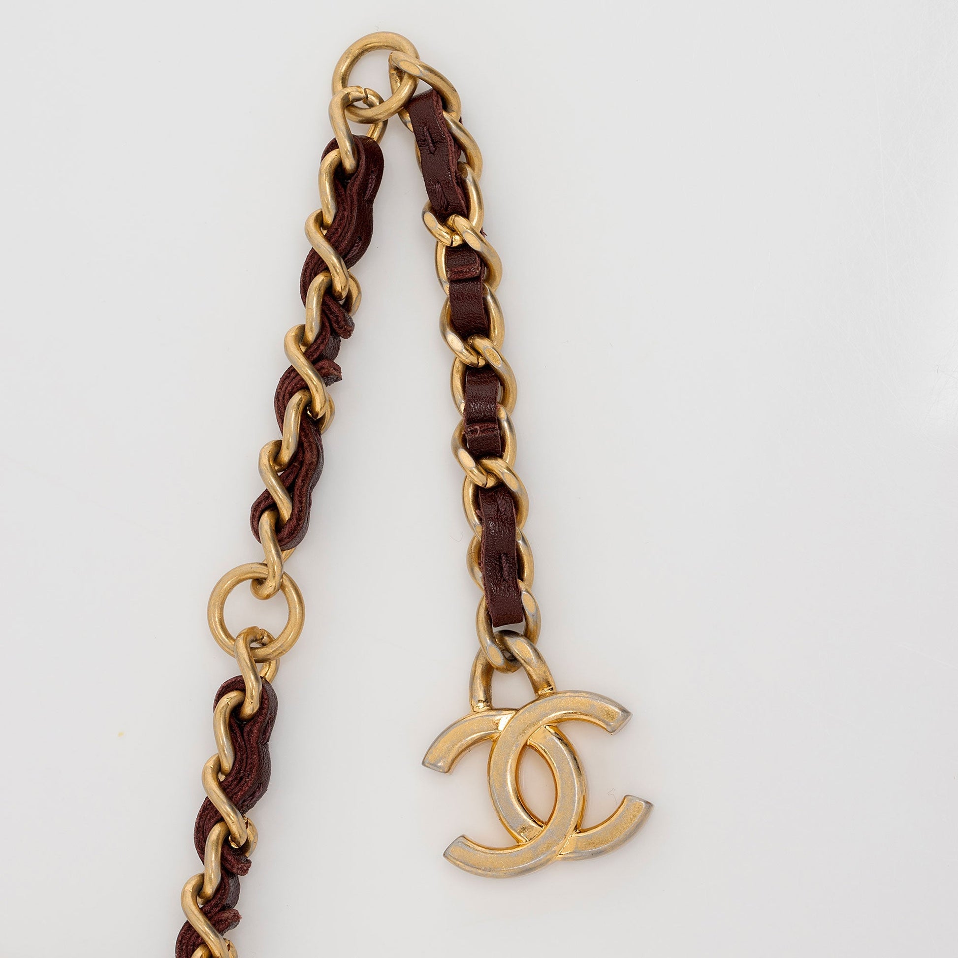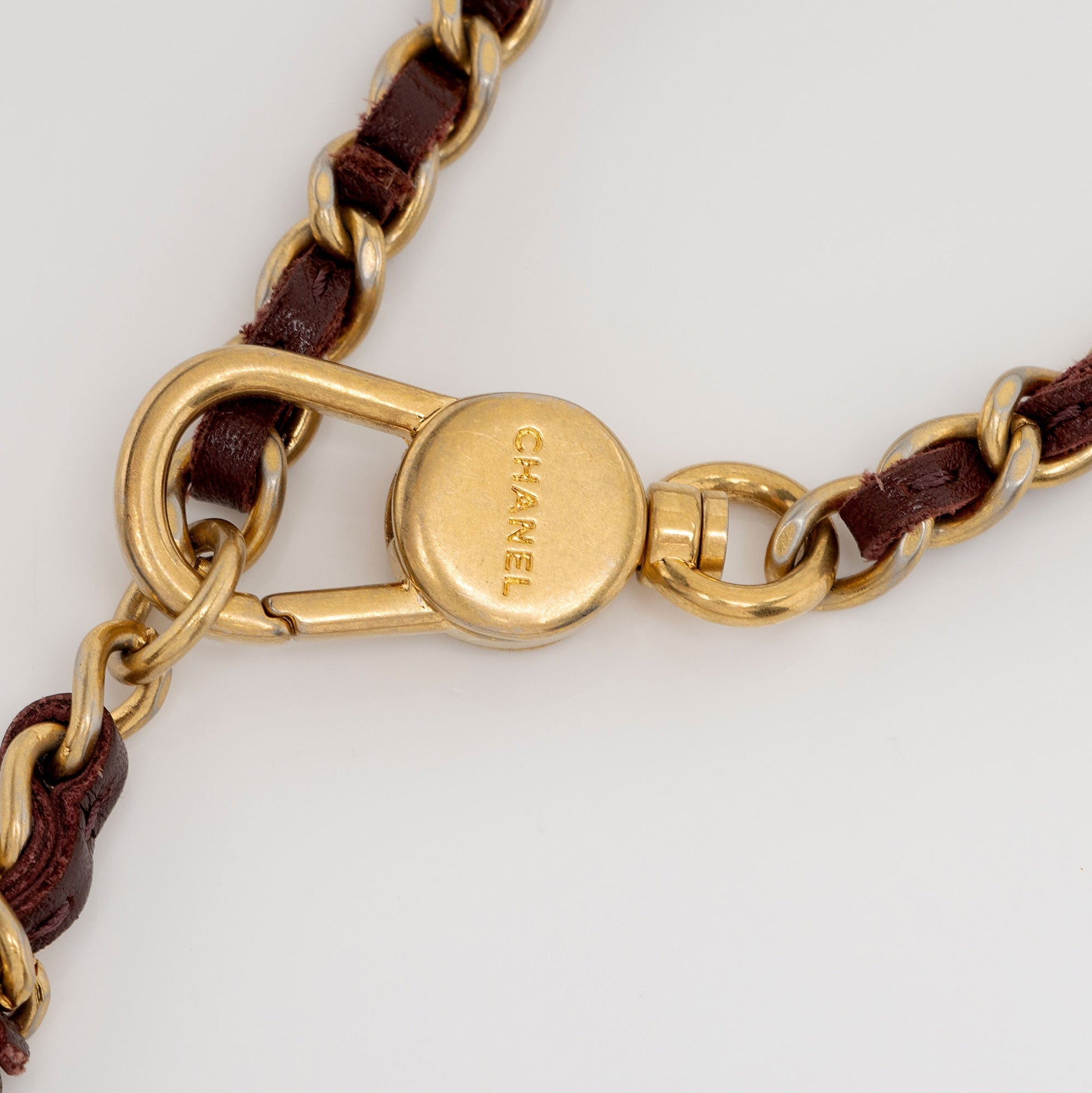 Condition Notes: Darkening, marks, and light fraying throughout leather woven into chain belt. Light surface scratches to hardware. Scuffs throughout interior flap. Light marks and darkening throughout interior.