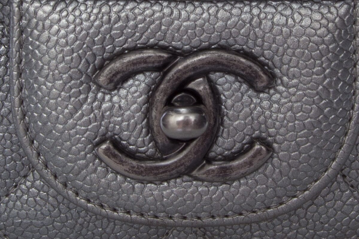 Chanel Silver Caviar Jumbo RHW Handbag