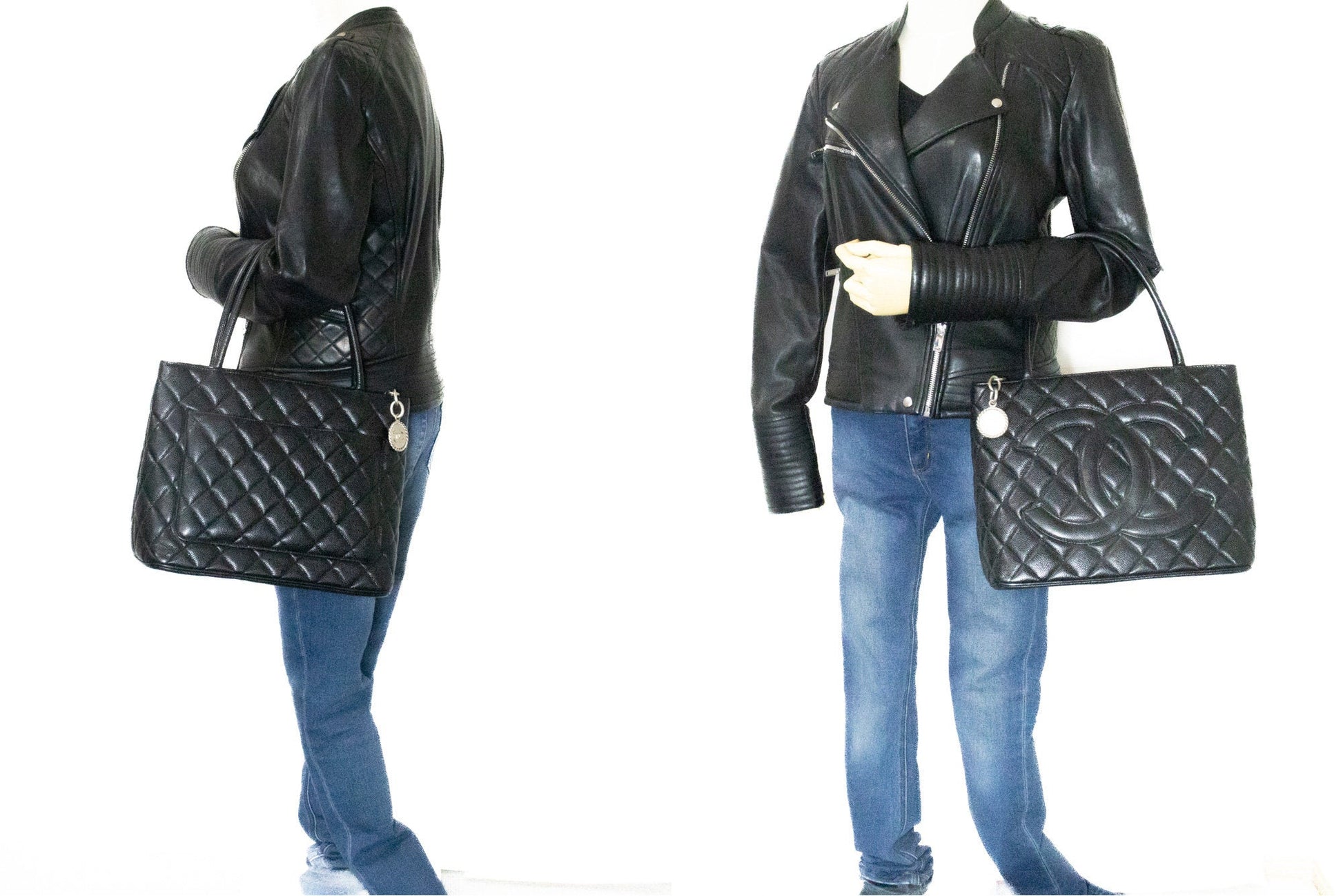 An CHANEL Silver Medallion Caviar Shoulder Bag Grand Shopping Tote i75 This item is Vintage / Classic. The year of manufacture would be 2002.