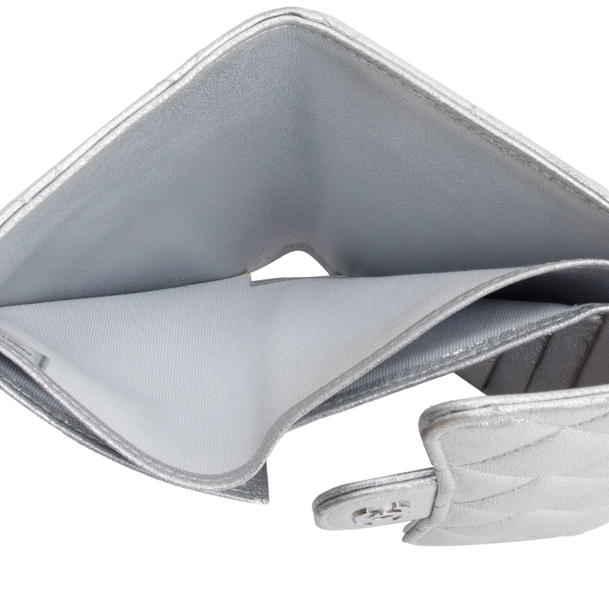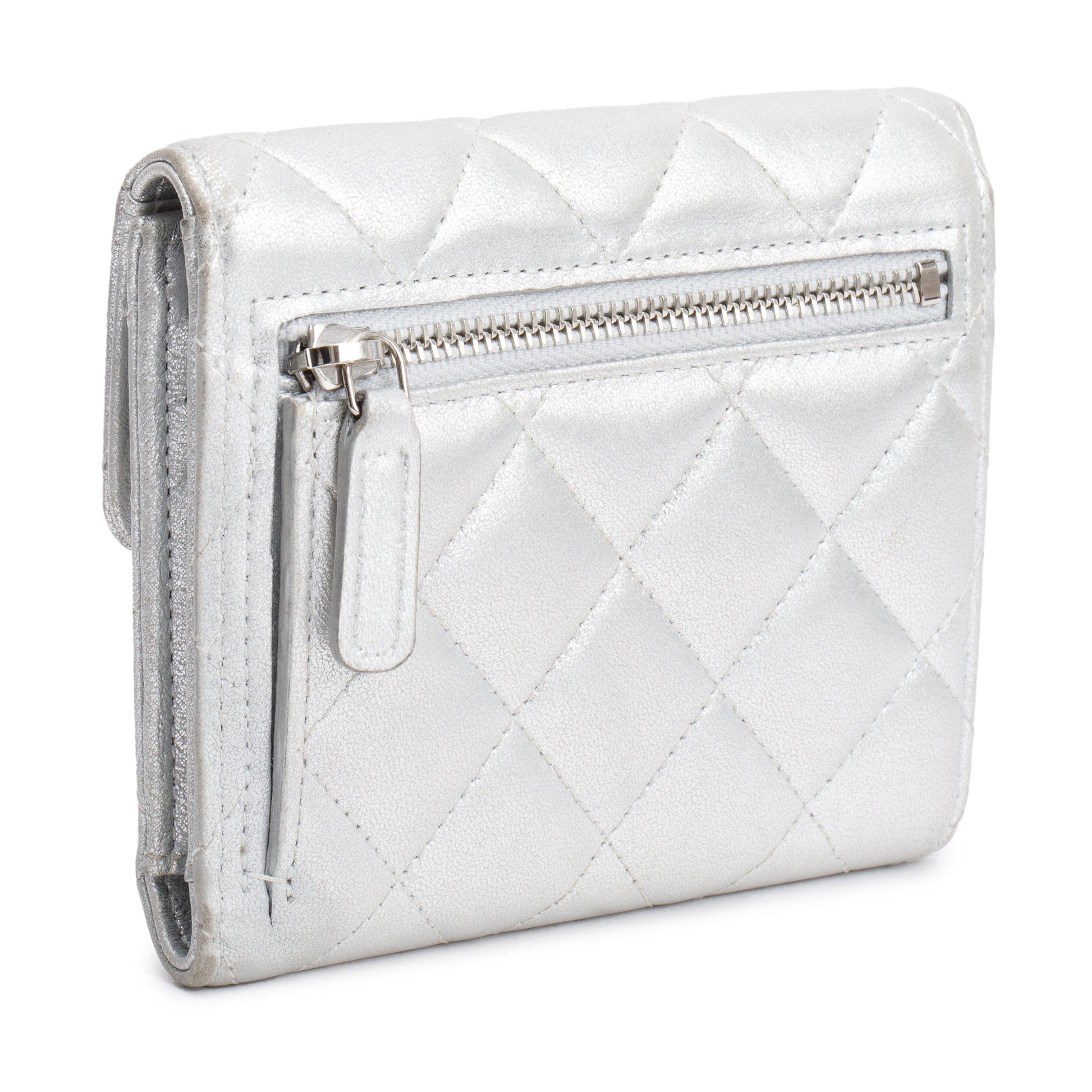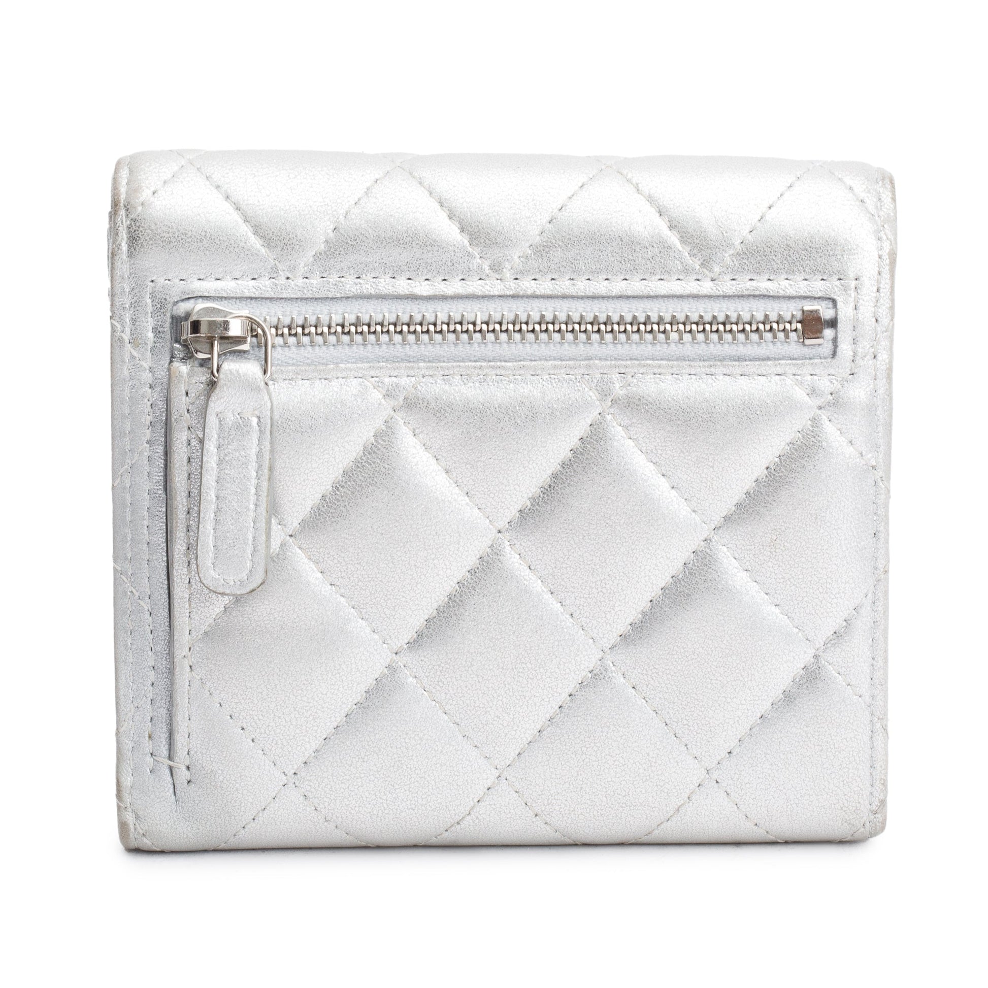 Chanel 2021 Silver Metallic Quilted Lambskin Leather Compact Wallet