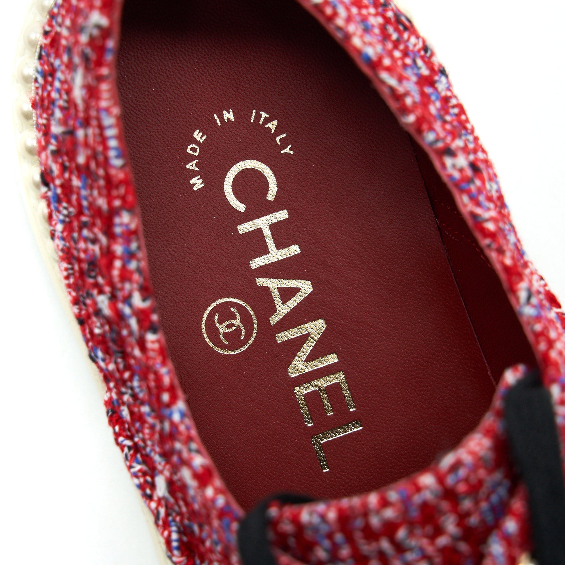 CHANEL Size 36.5 Tweed Lace-Up Pearls Flats Shoes