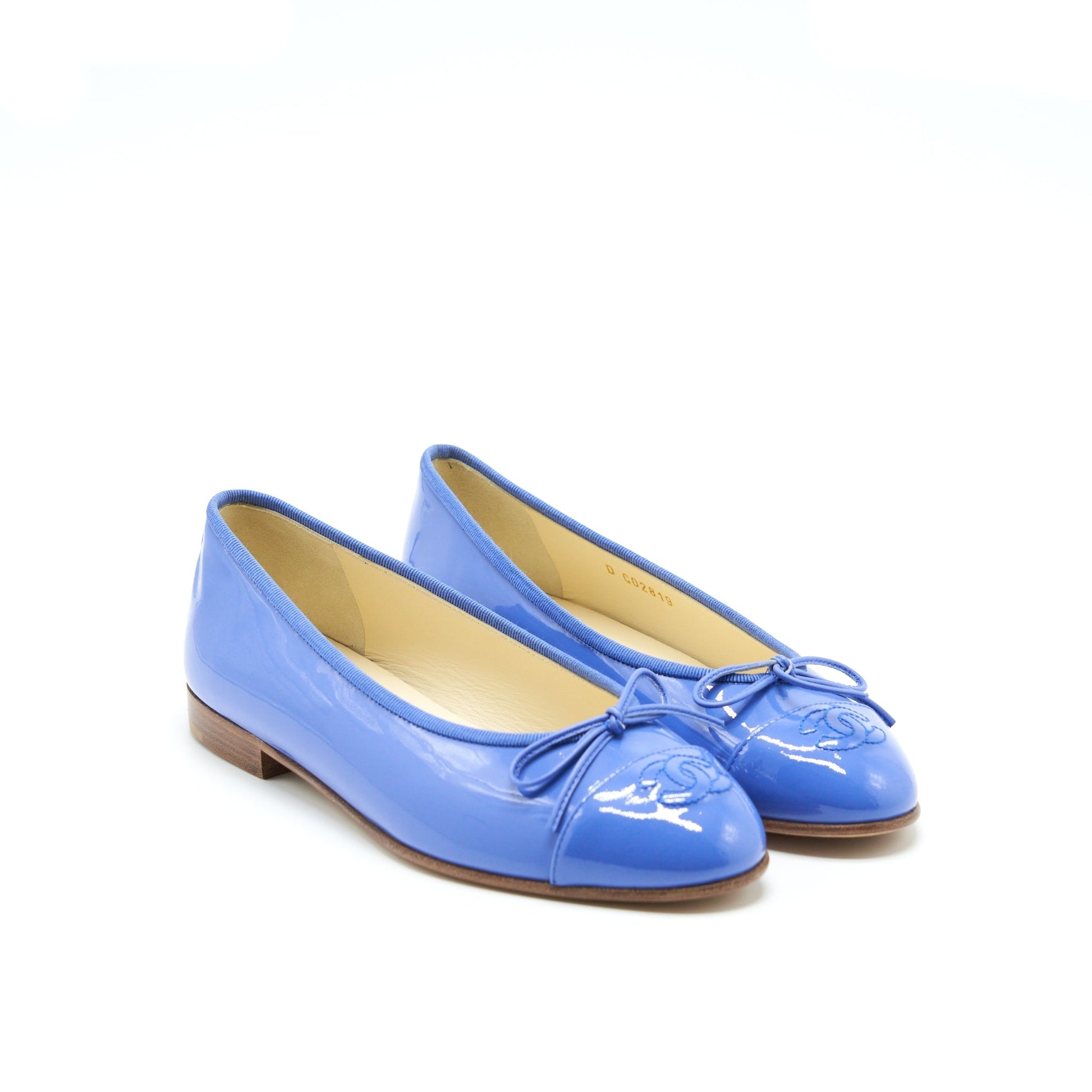 Chanel Size 37 Cap Toe Ballerina Flats Patent Calfskin Blue