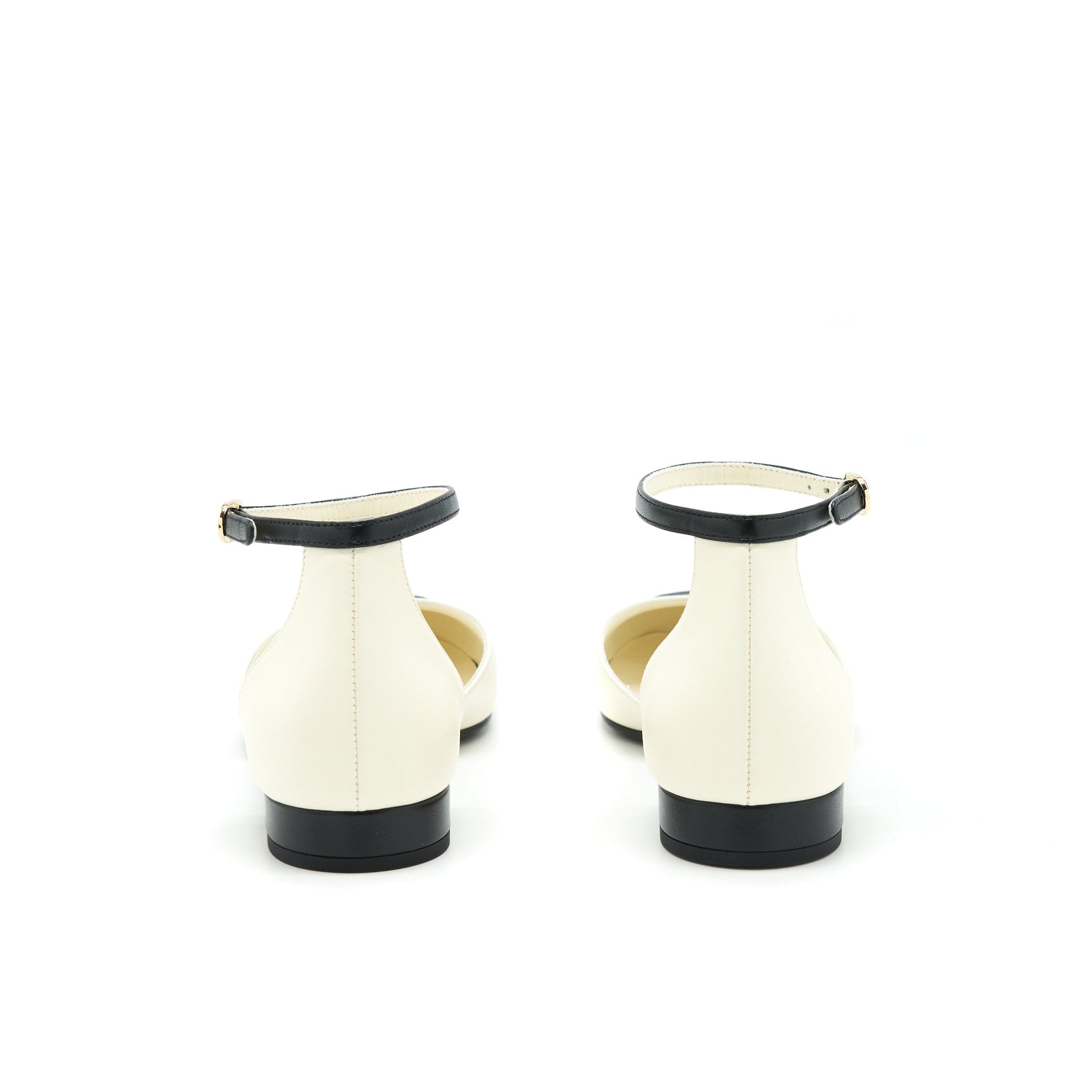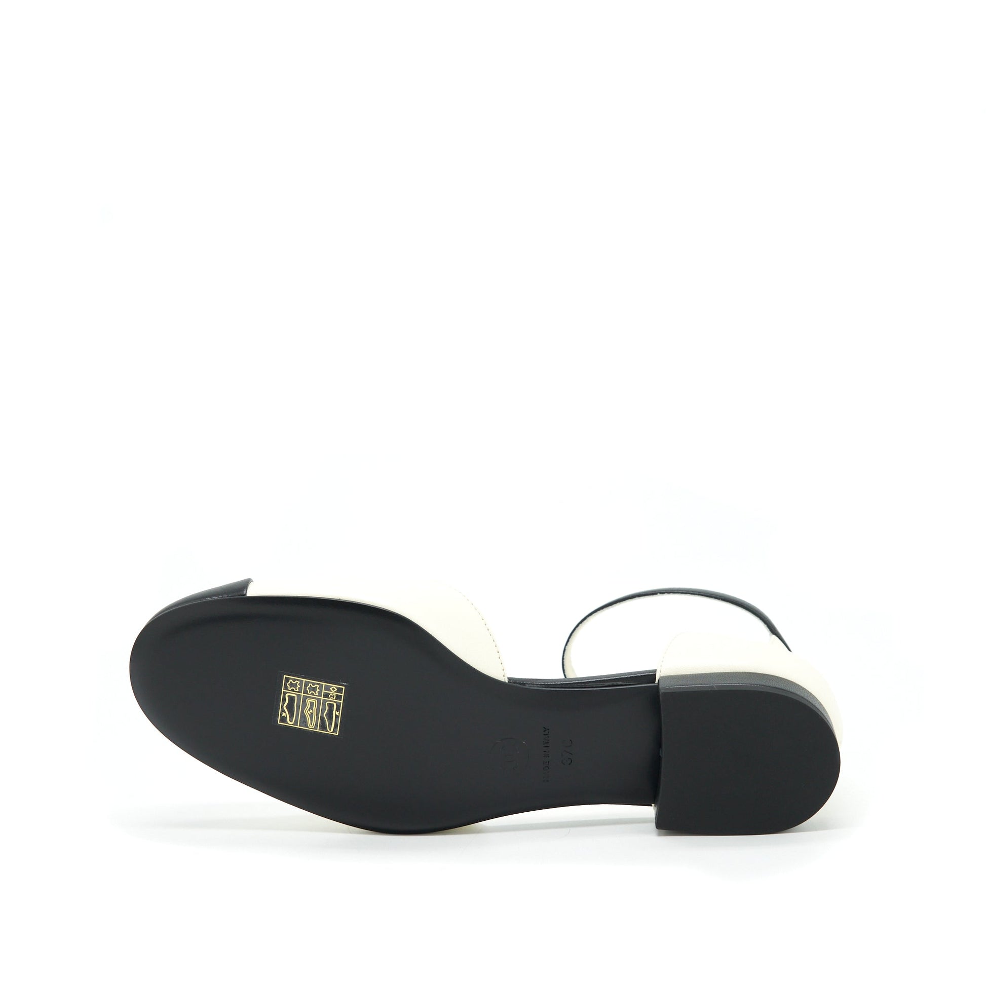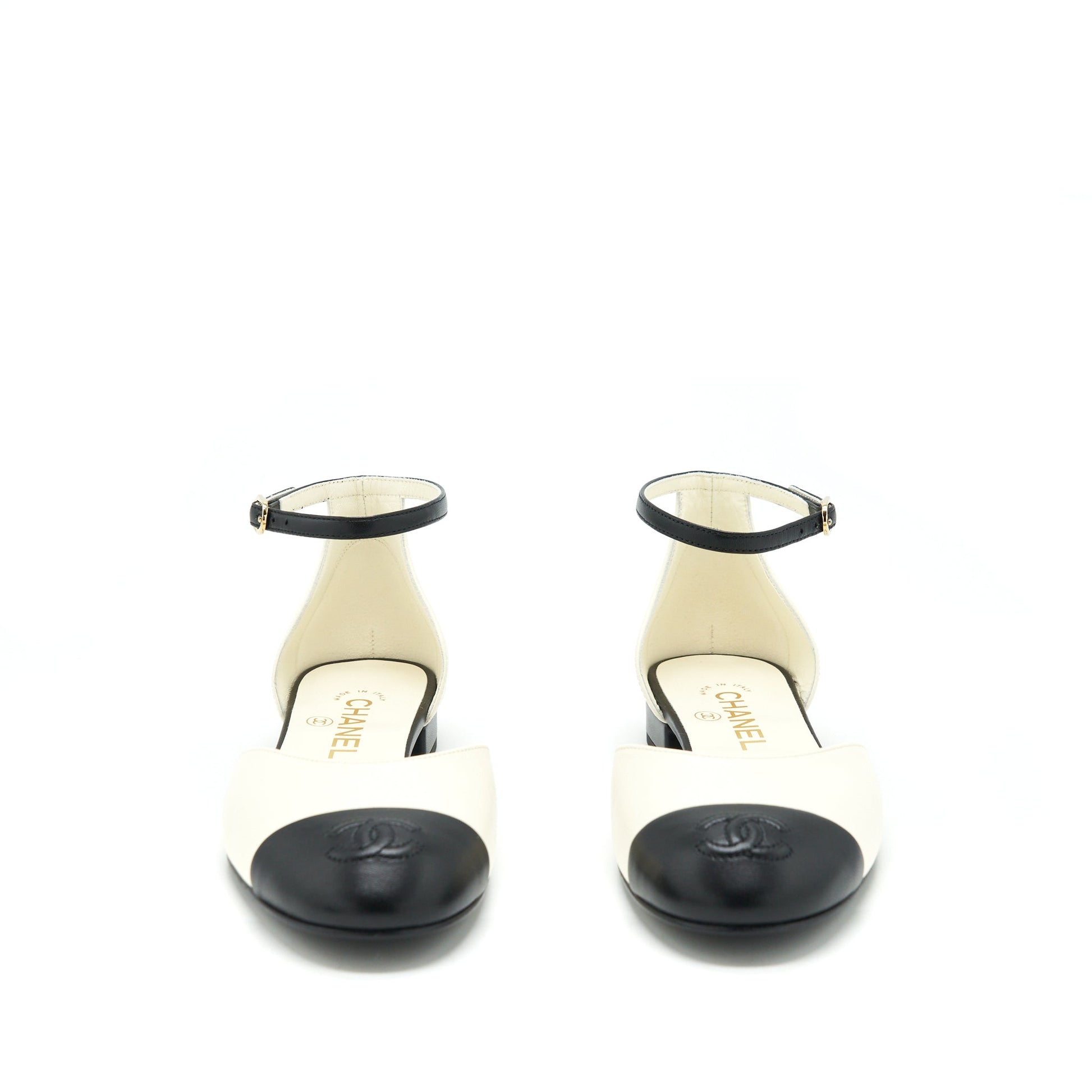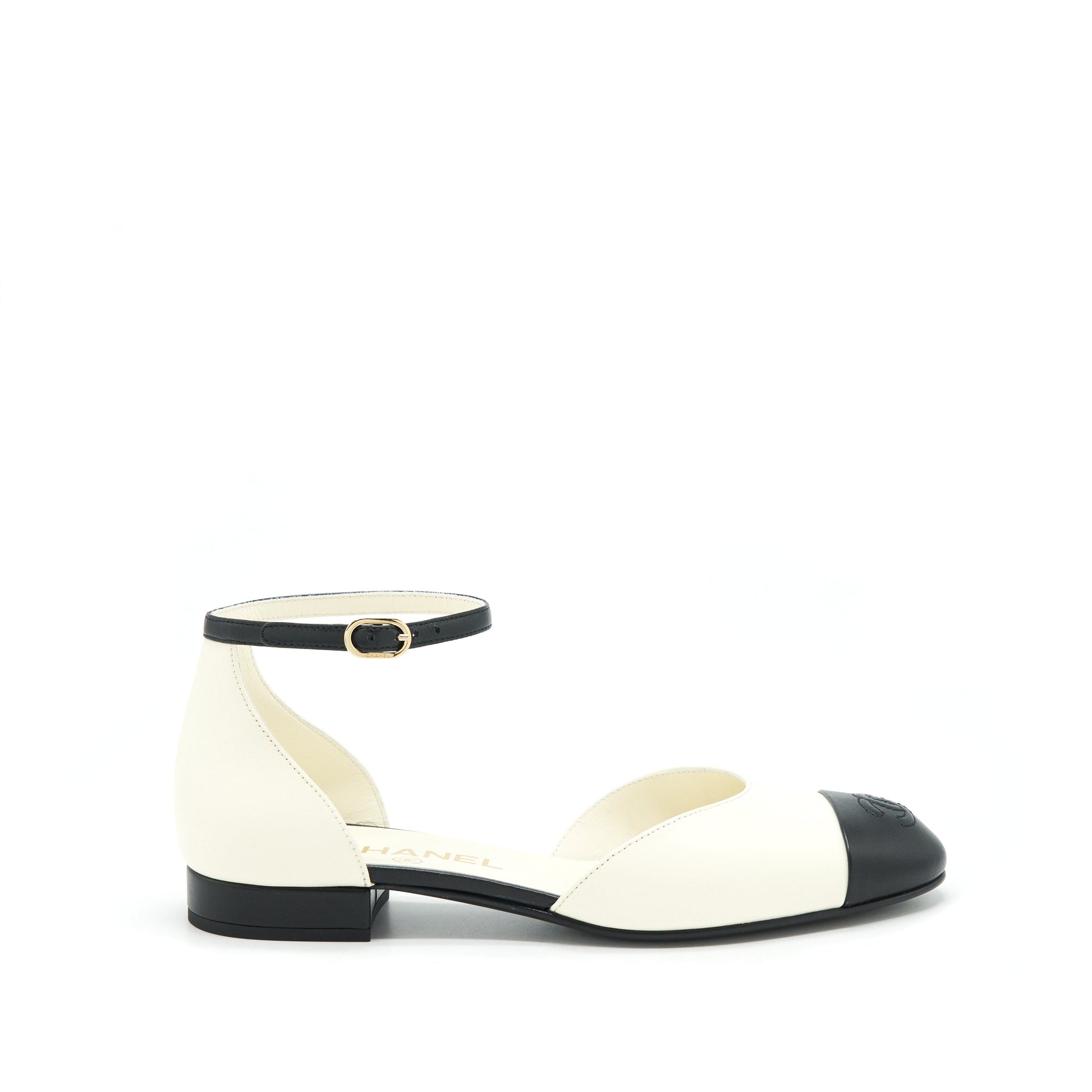 Chanel Size 37 Open Flat Shoes Lambskin Ivory / Black