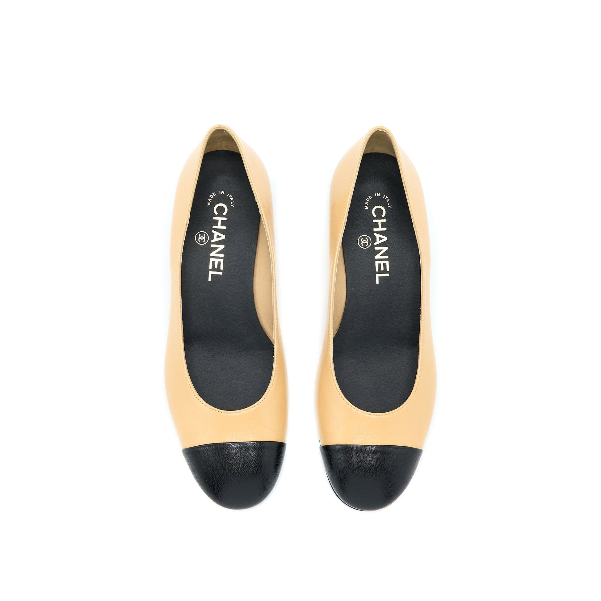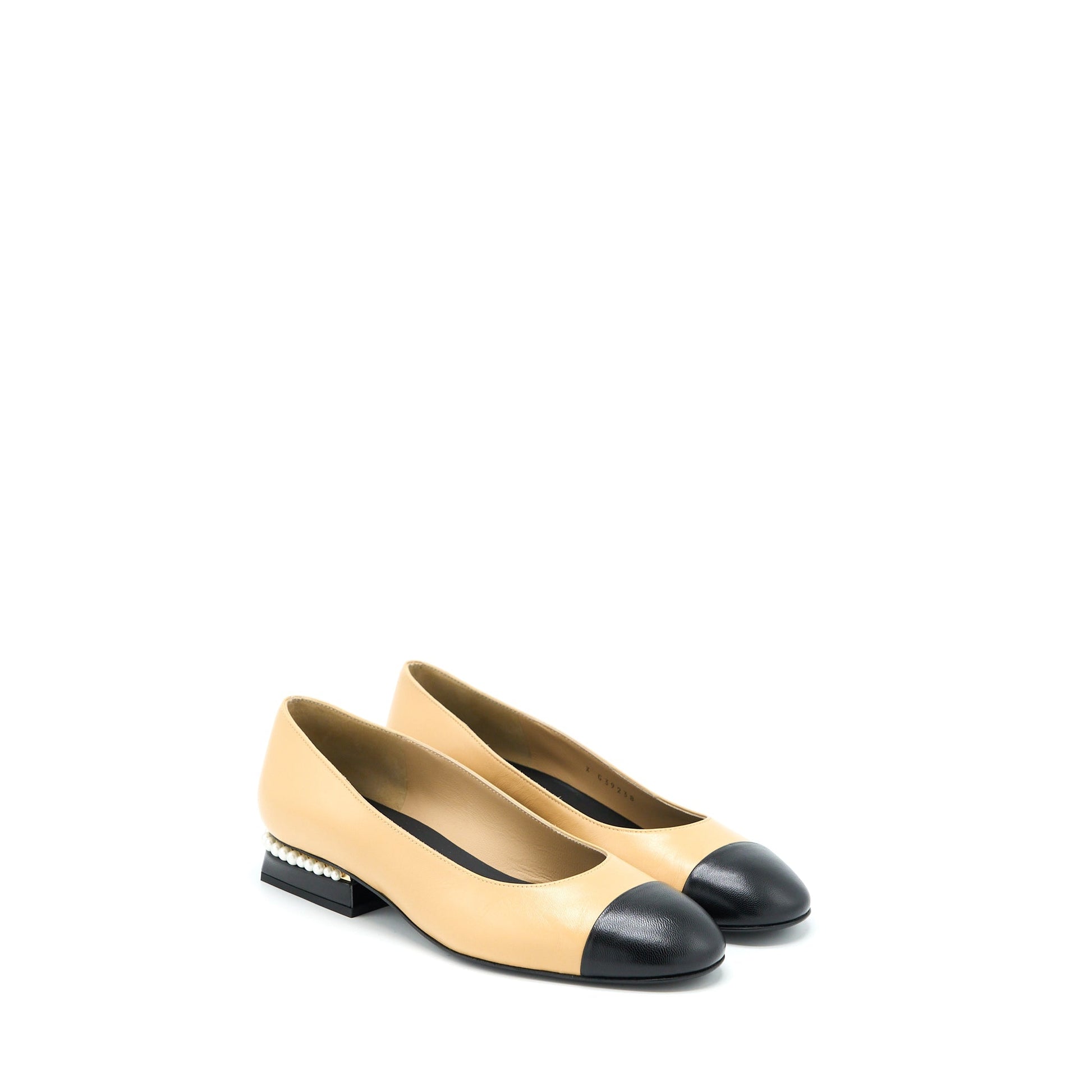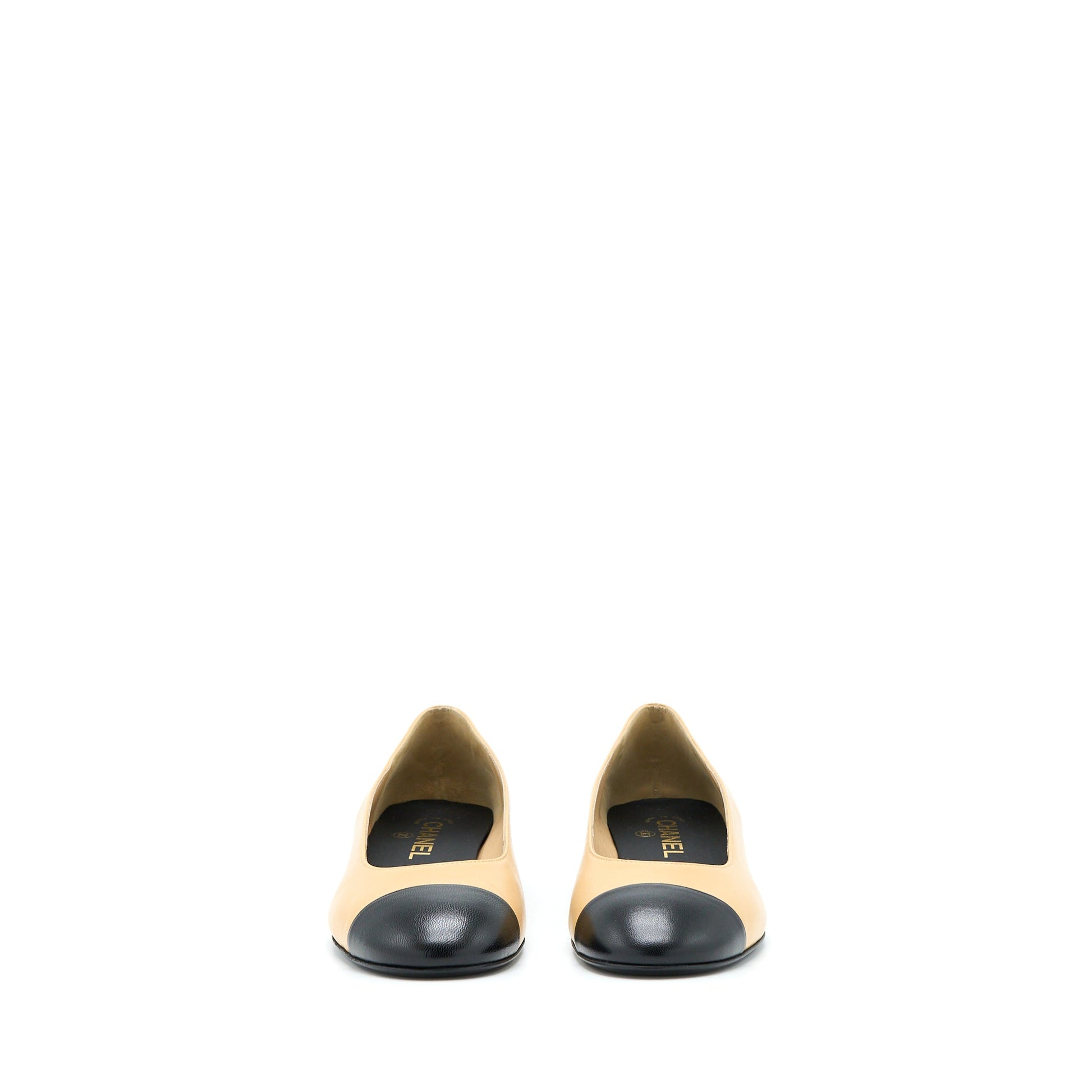 Chanel Size 38 CC Logo With Pearl Flats Beige / Black