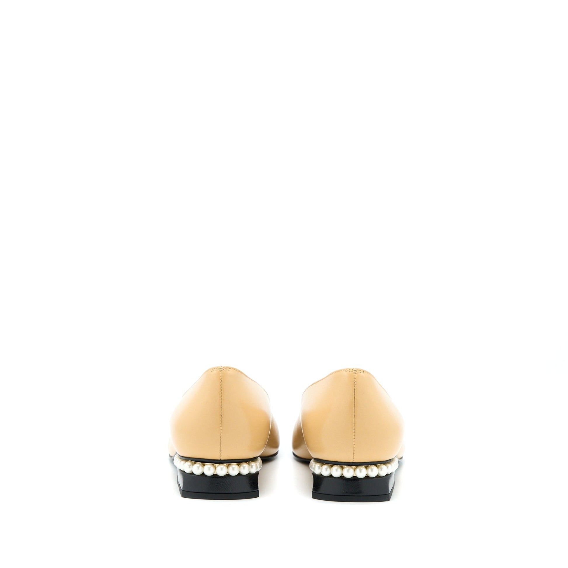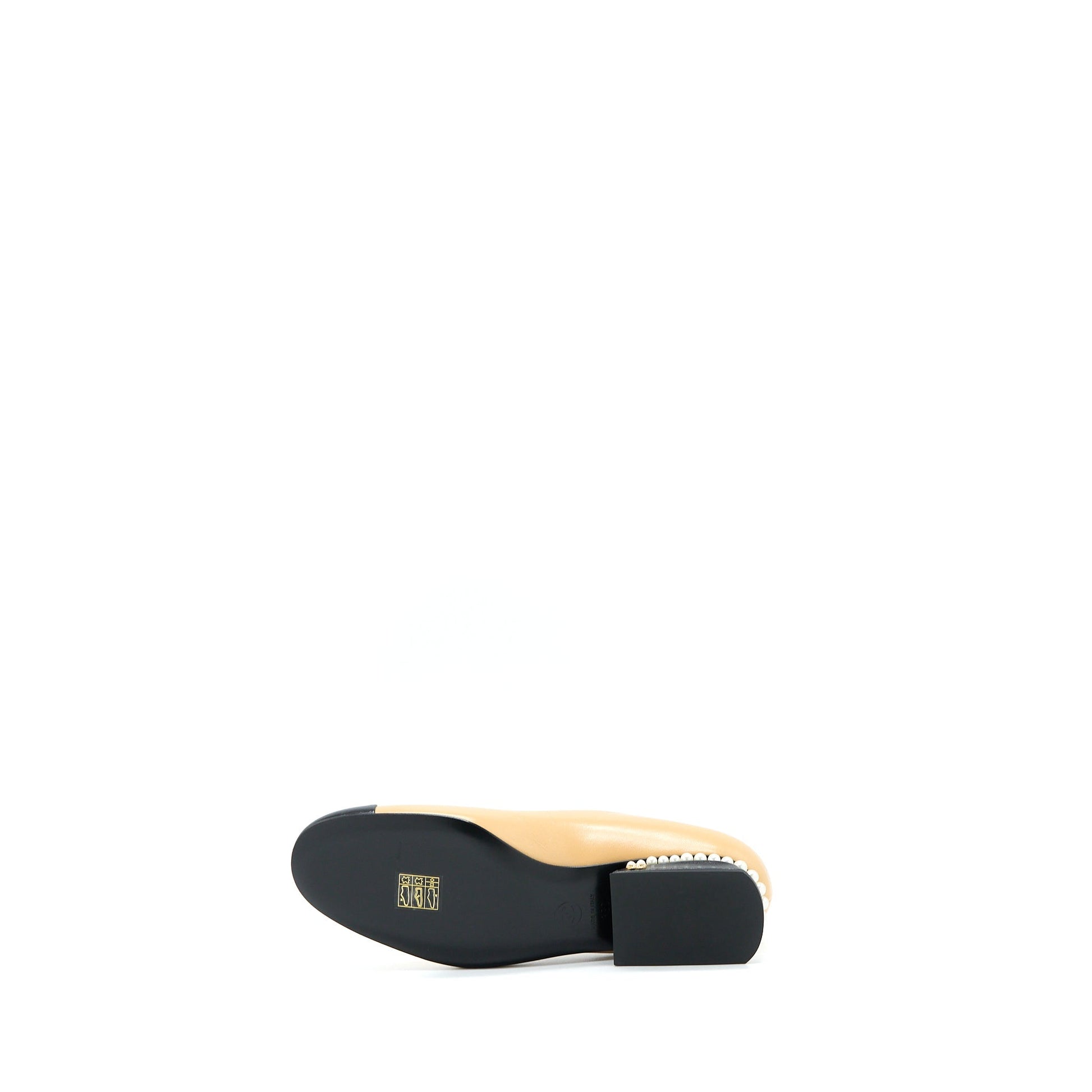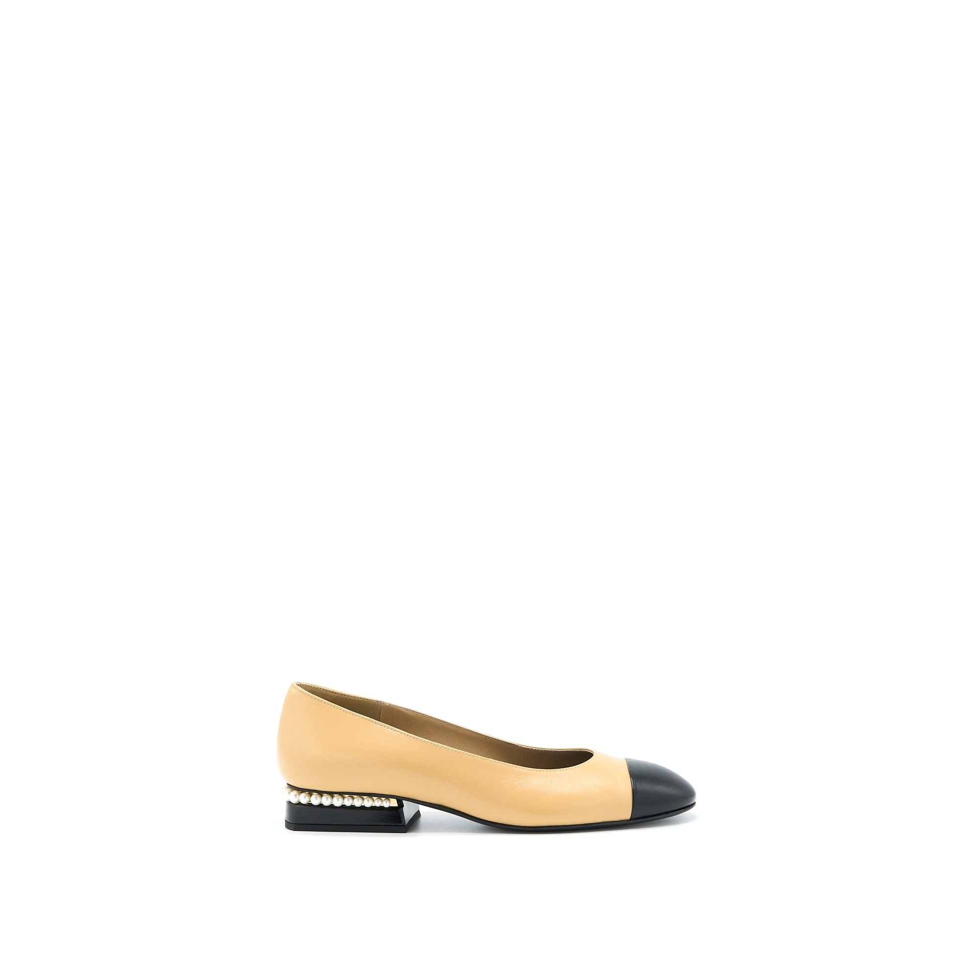 Chanel Size 38 CC Logo With Pearl Flats Beige / Black