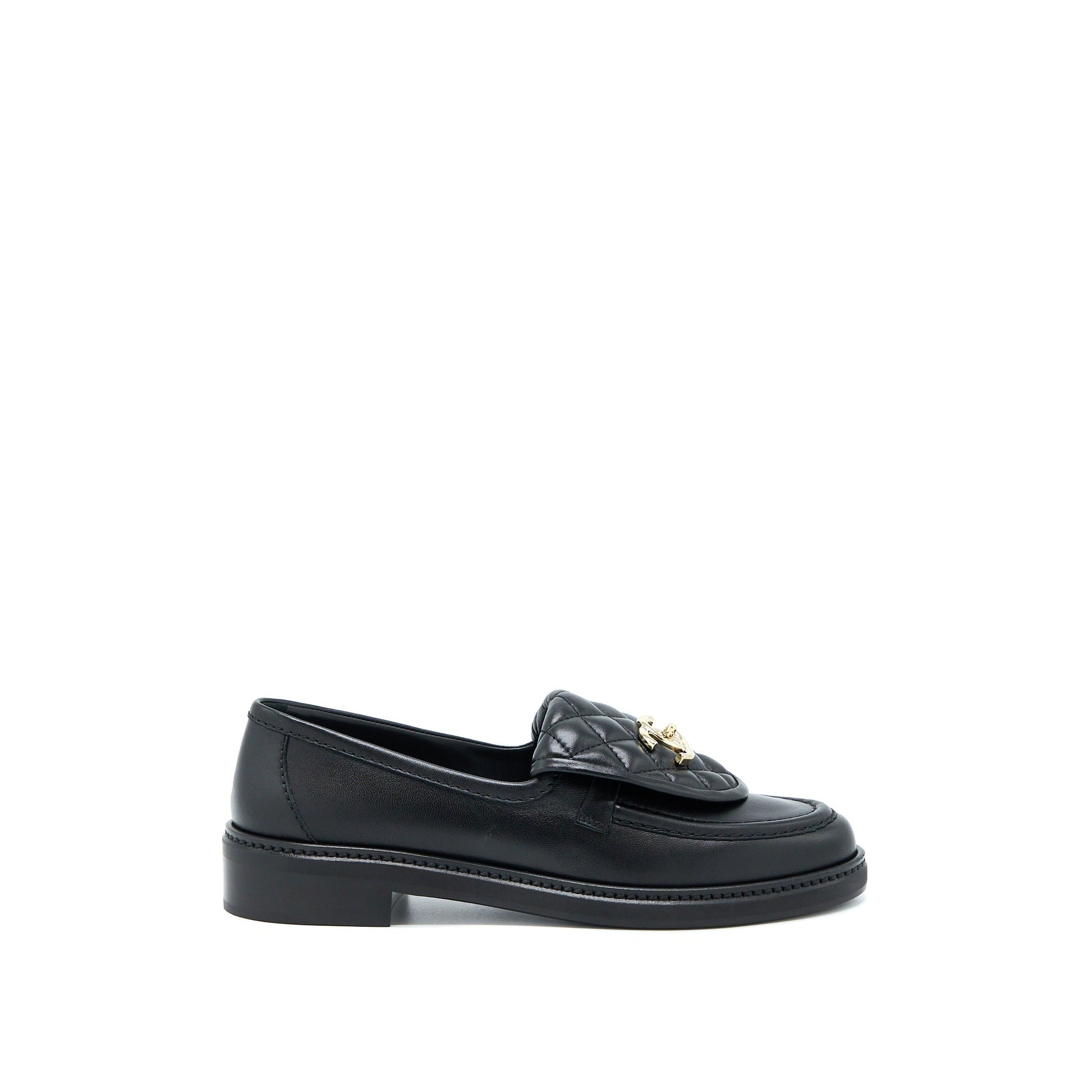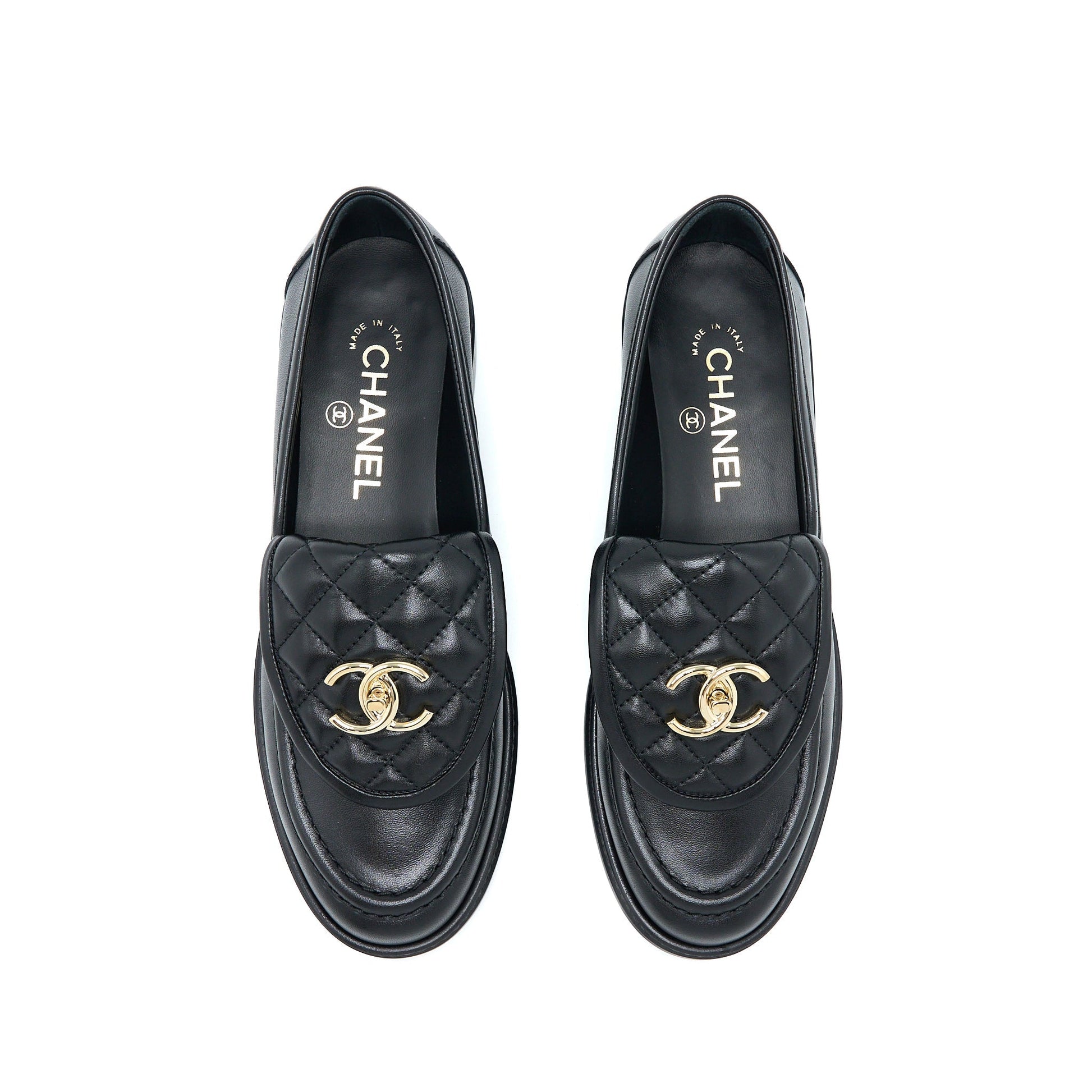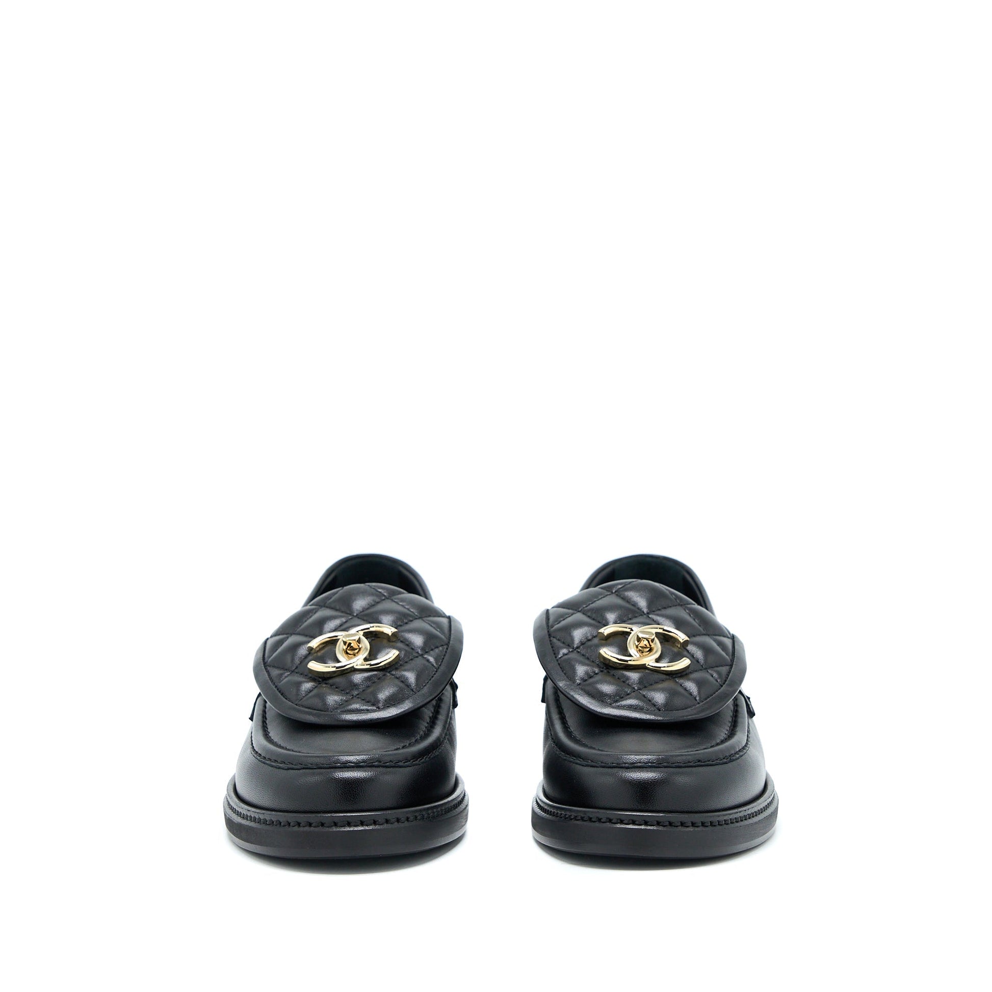 Chanel Size 38 CC Turnlock Loafers Black Quilted Leather LGHW