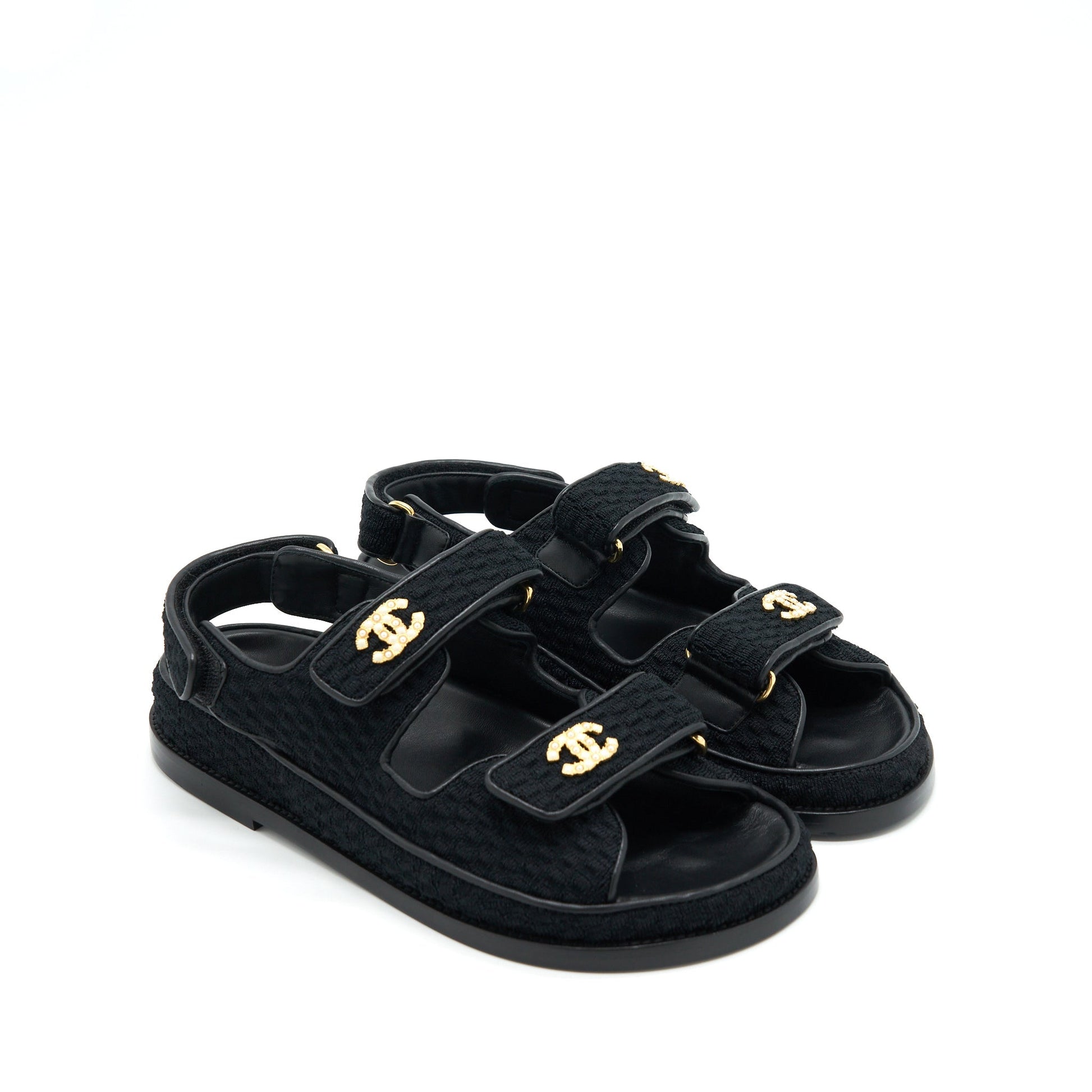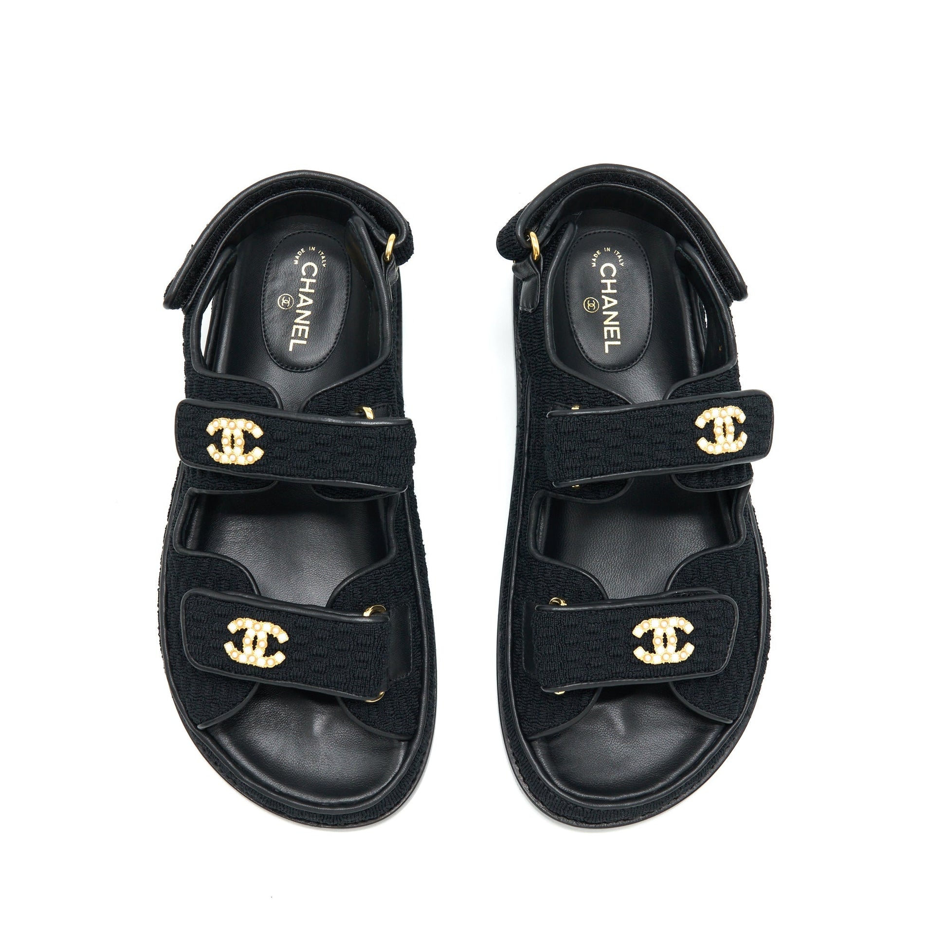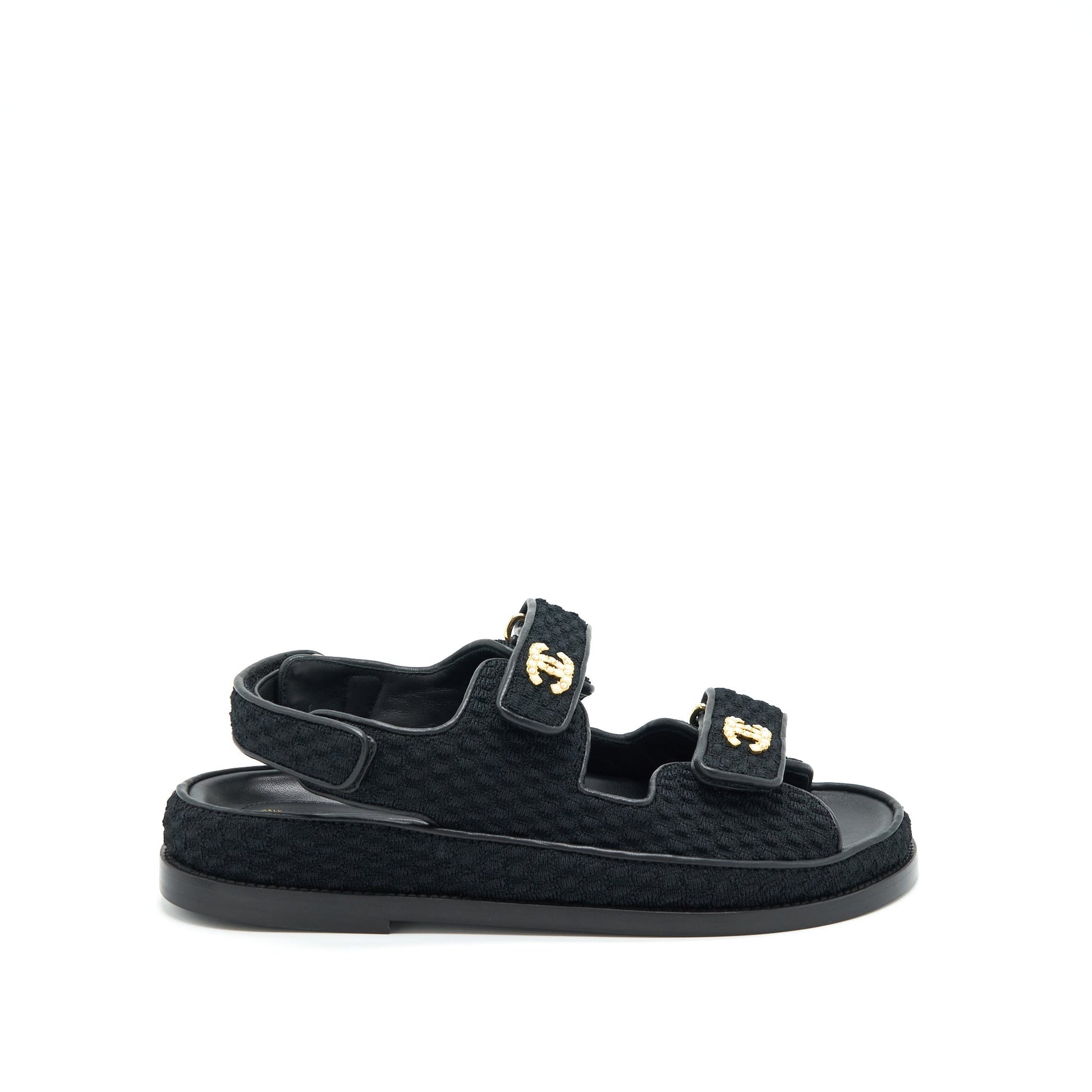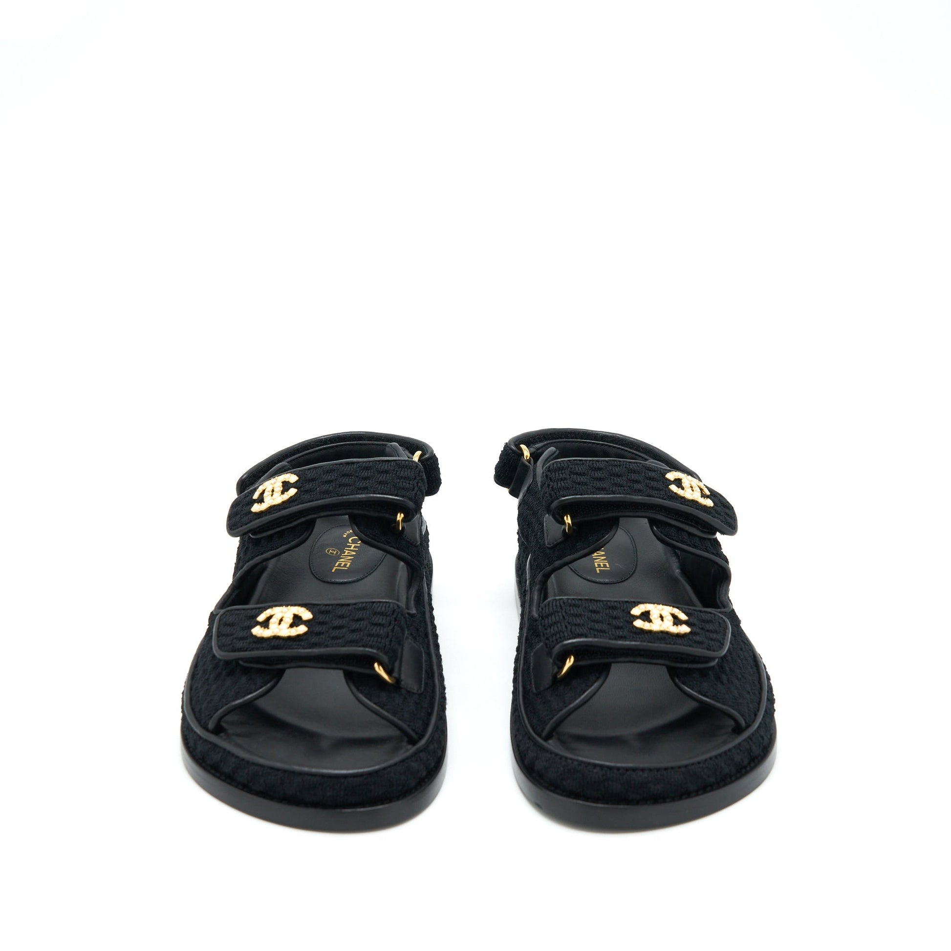 Chanel Size 38 Dad Sandal Black With Gold CC Logo