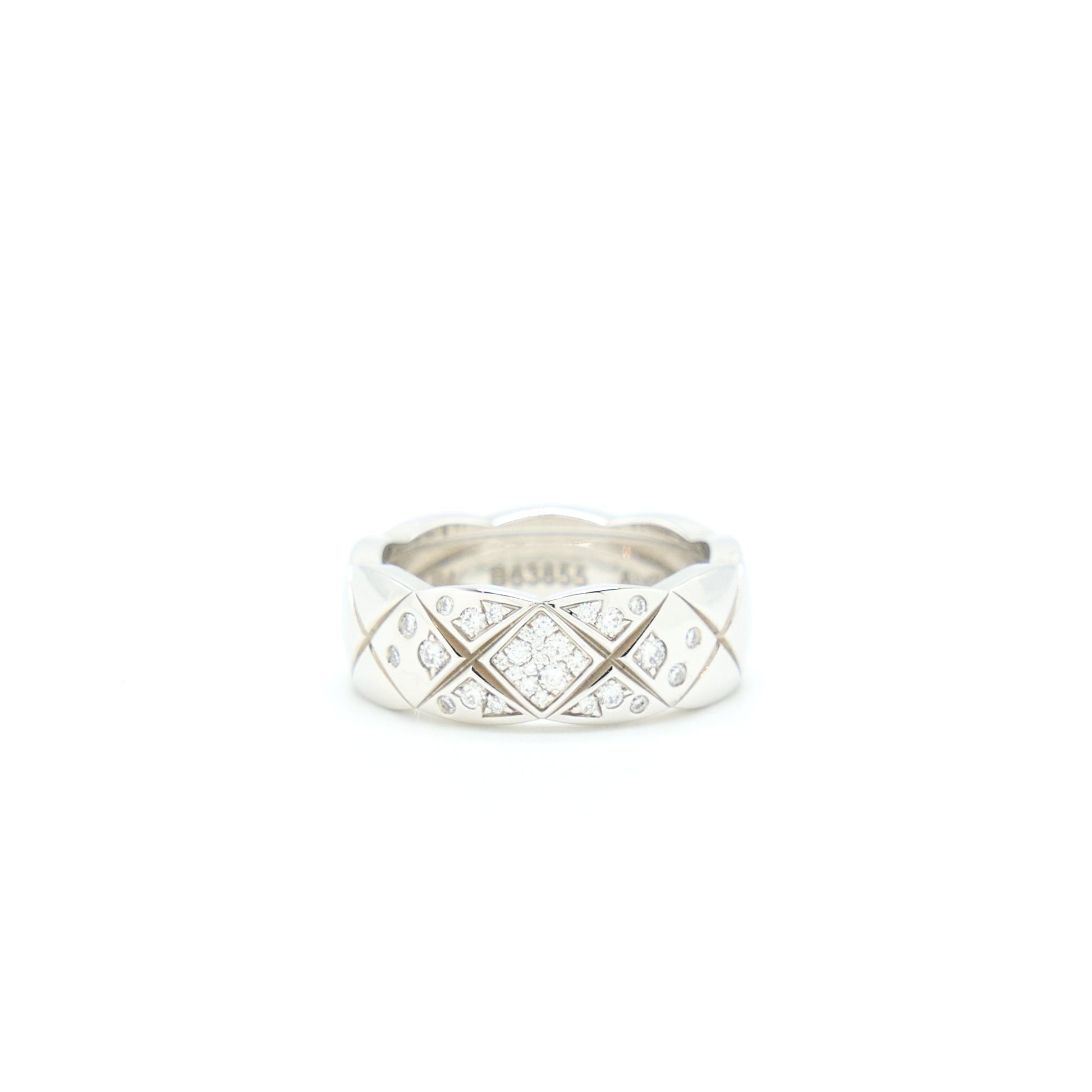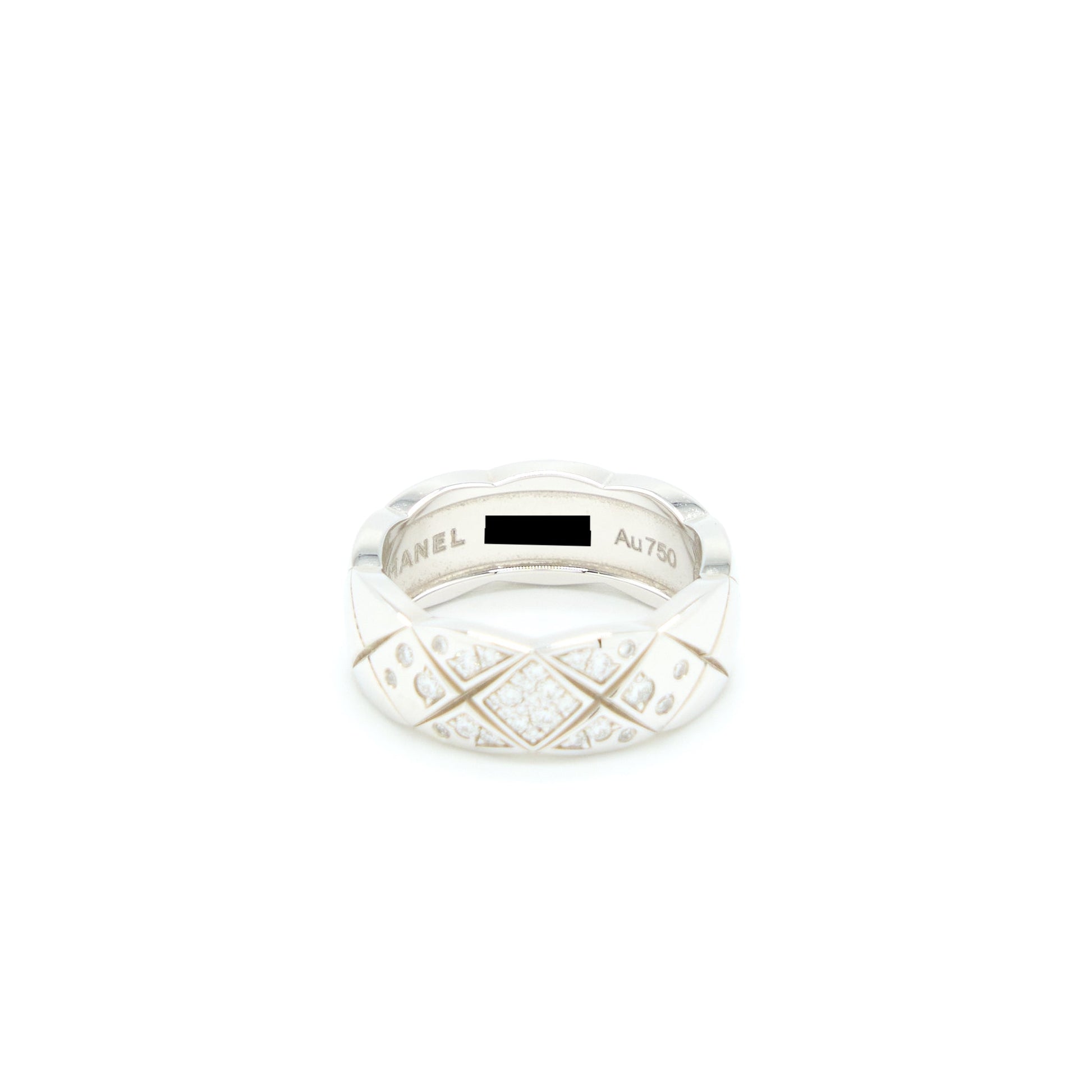 Chanel Size 49 Coco Crush Ring Quilted Motif Small Version 18k White Gold With Diamonds