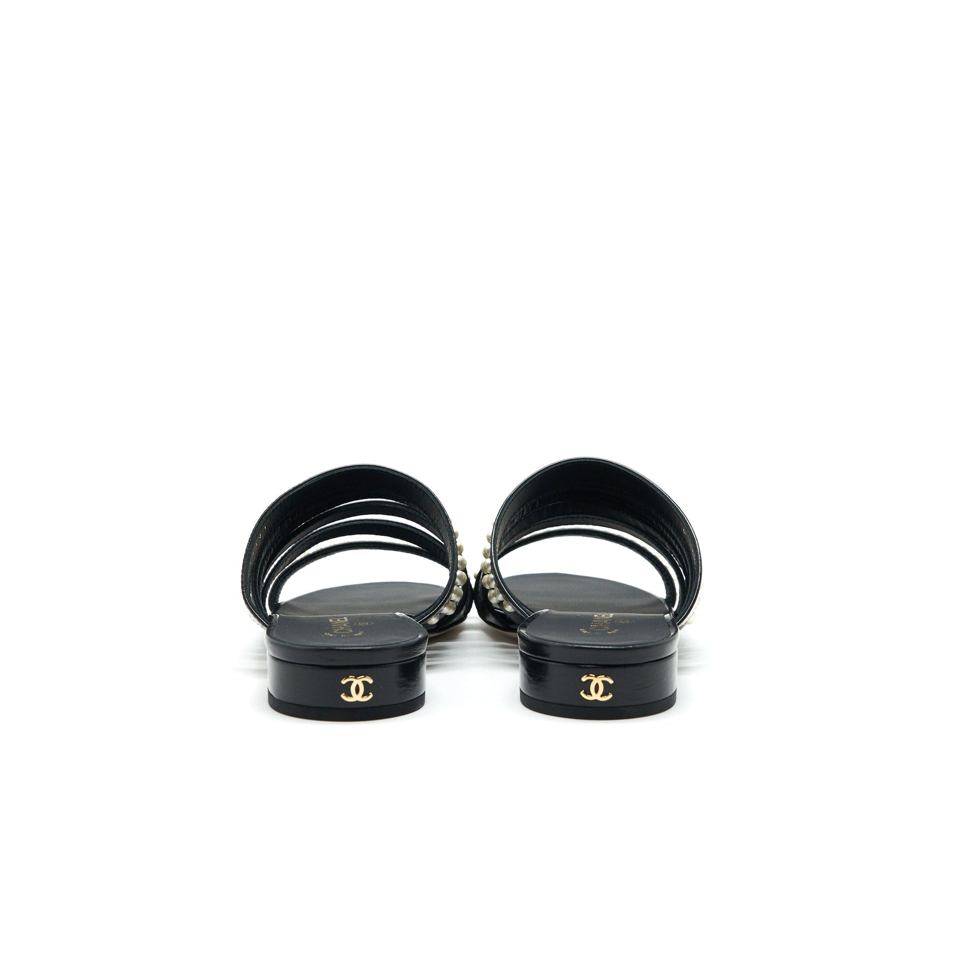 Chanel size37 Leather and pearl sandal black
