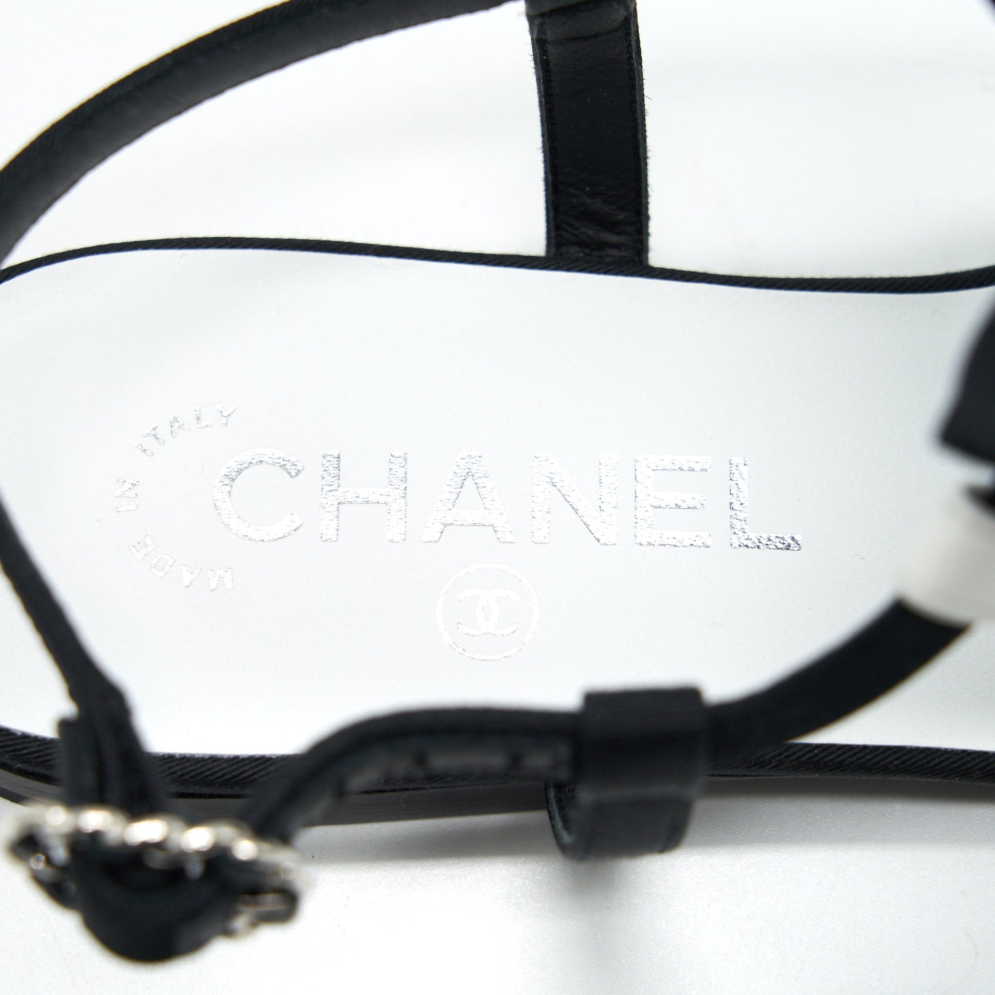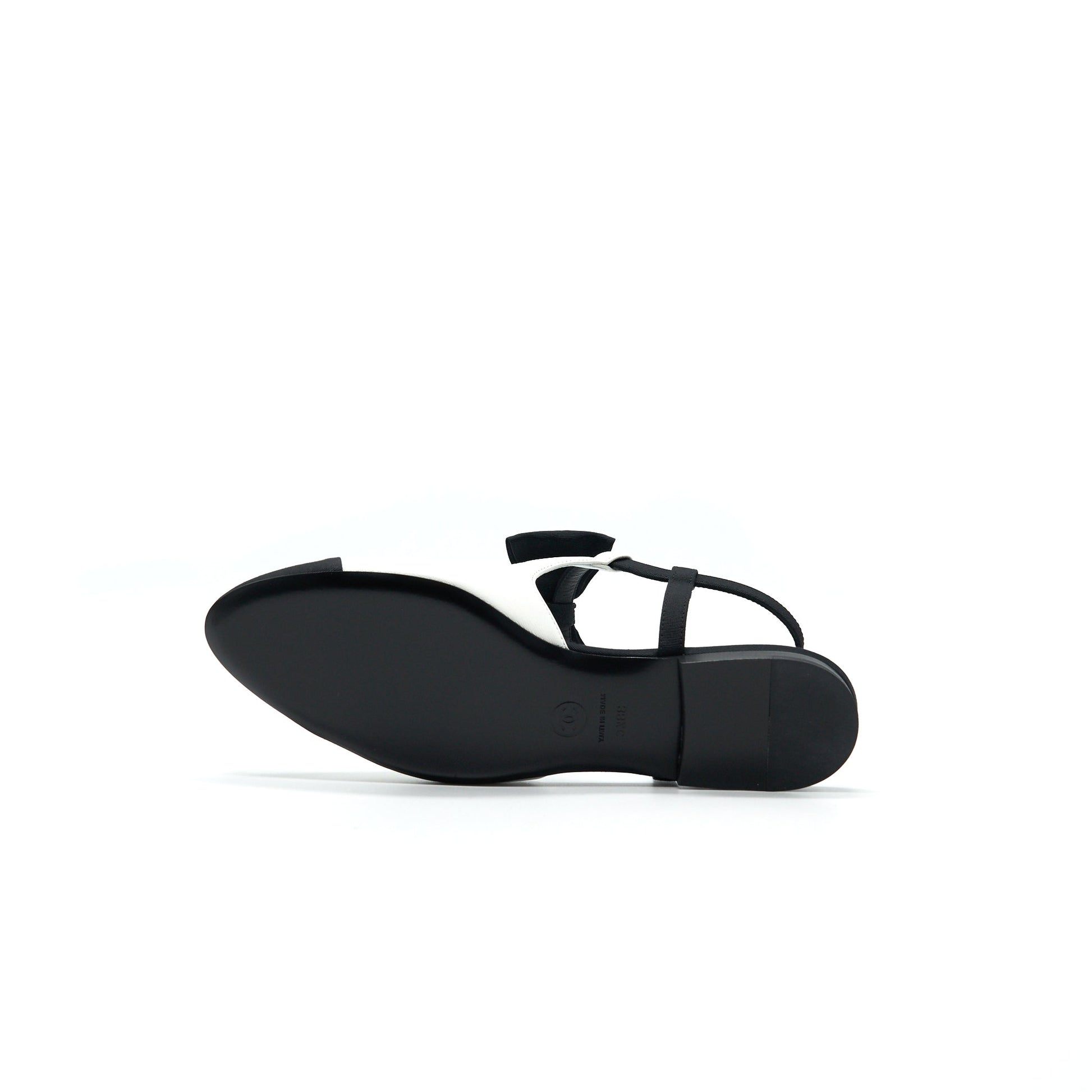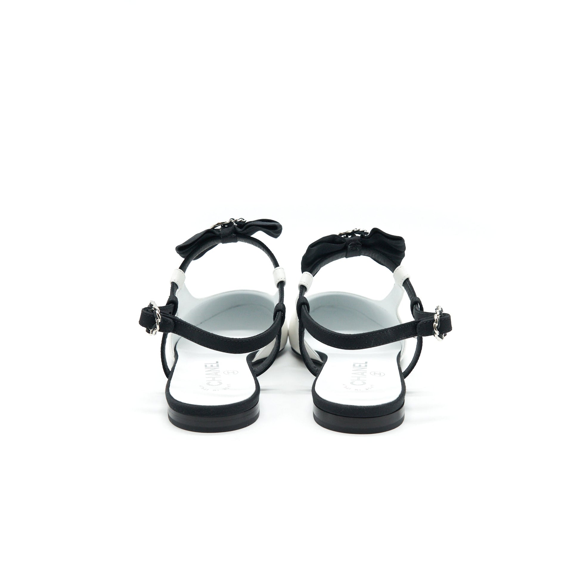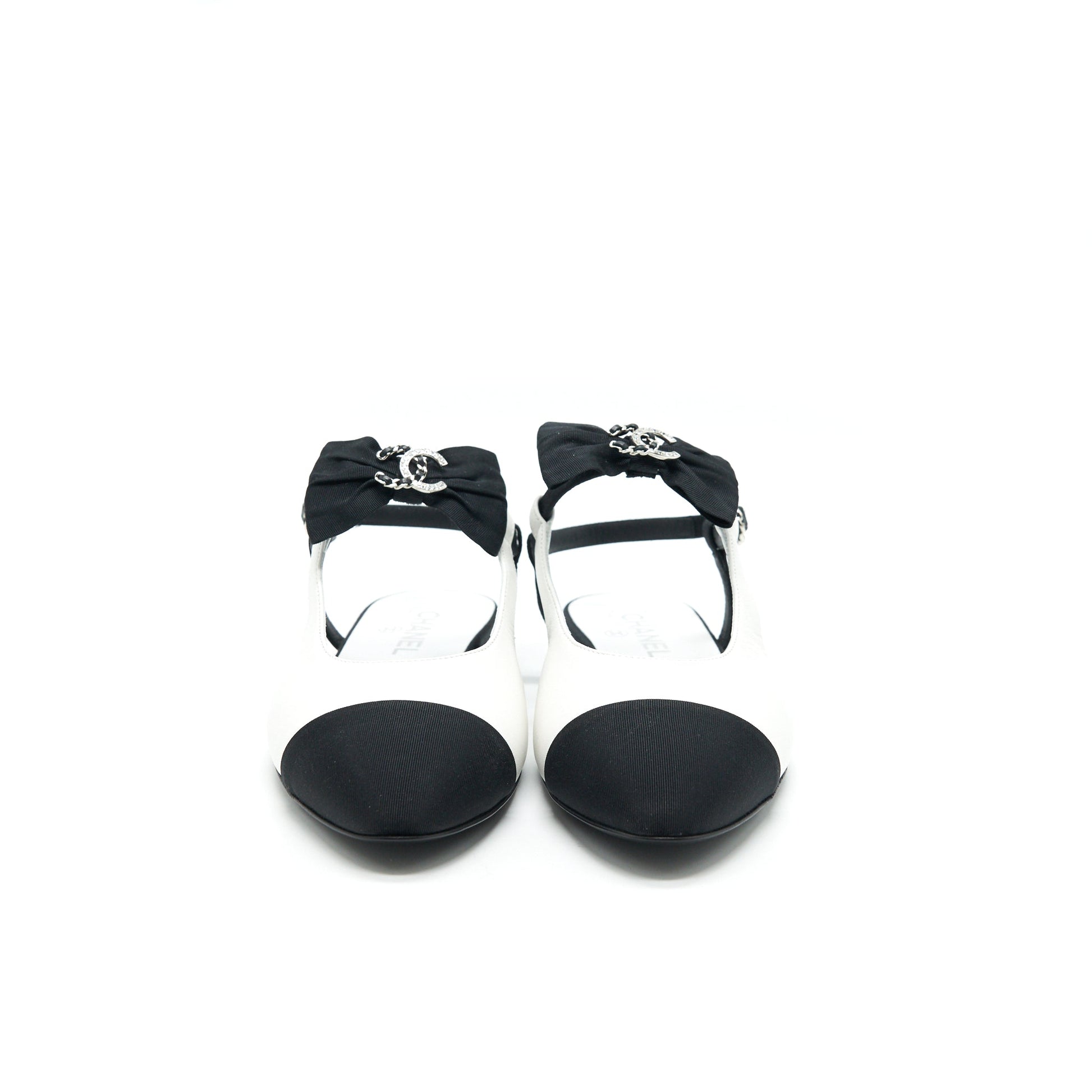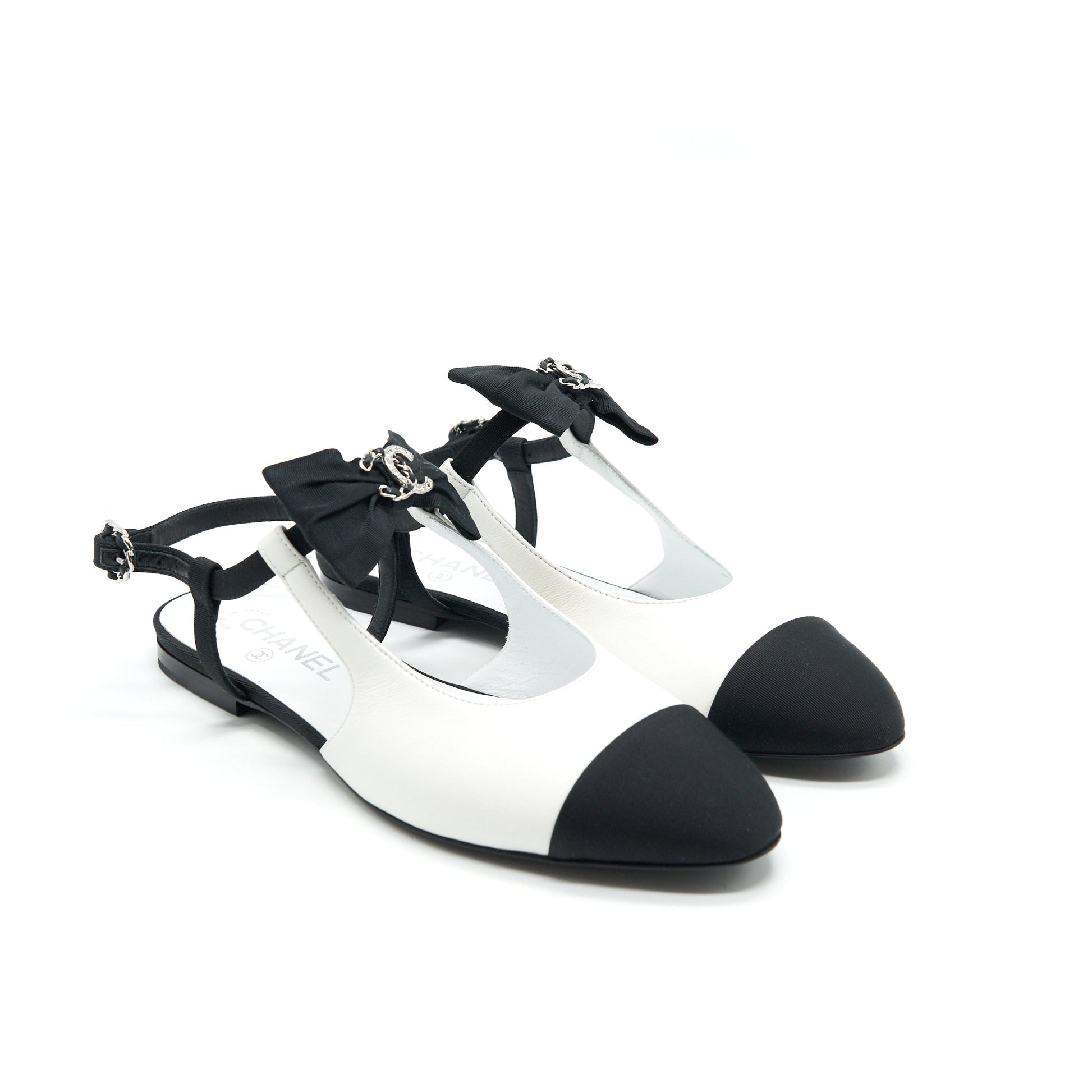 CHANEL Slingback Flats With Ribbons White and Black Size38.5