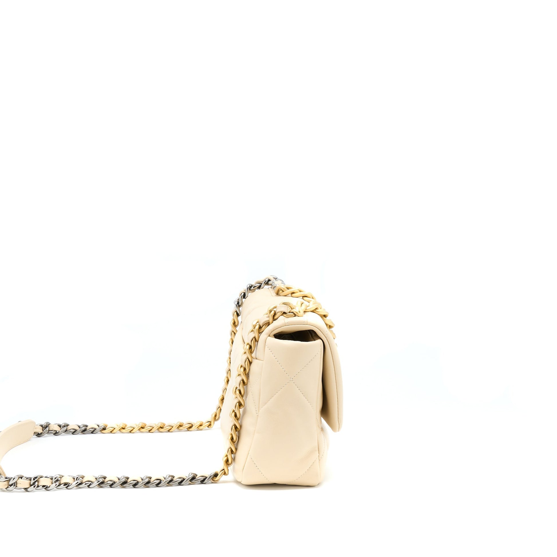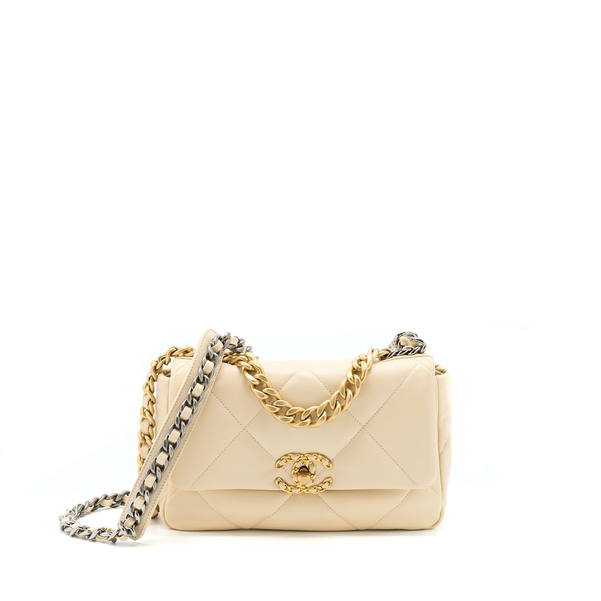 Chanel Small 19 Bag Goatskin Beige With Multicolour Hardware