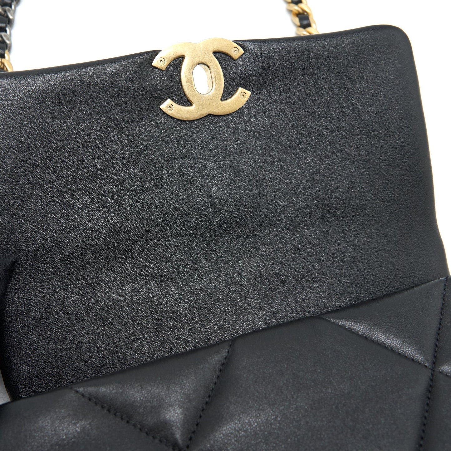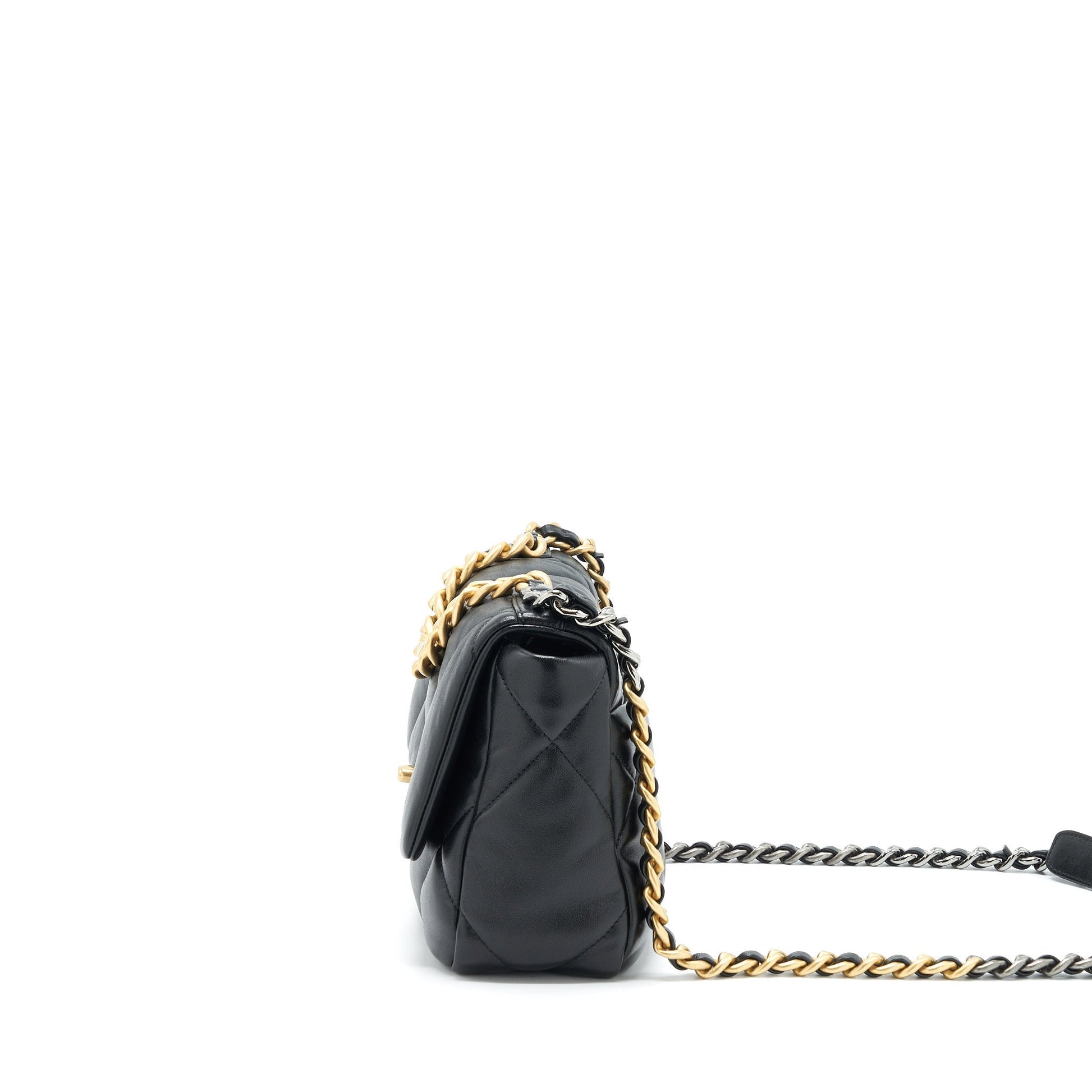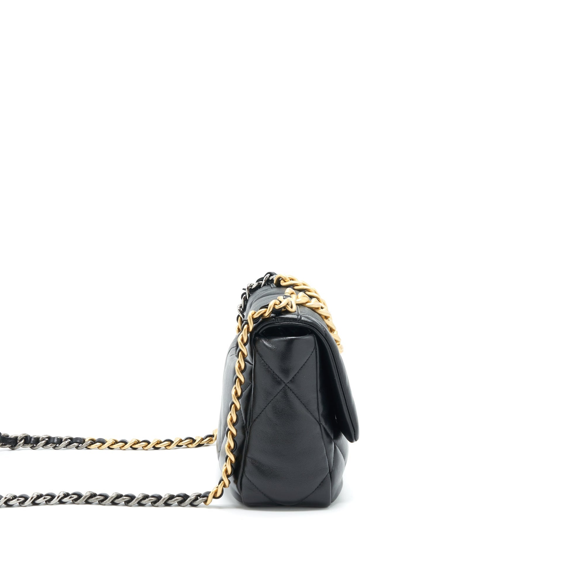 Chanel Small 19 Bag Lambskin Black With Gold And Silver Hardware