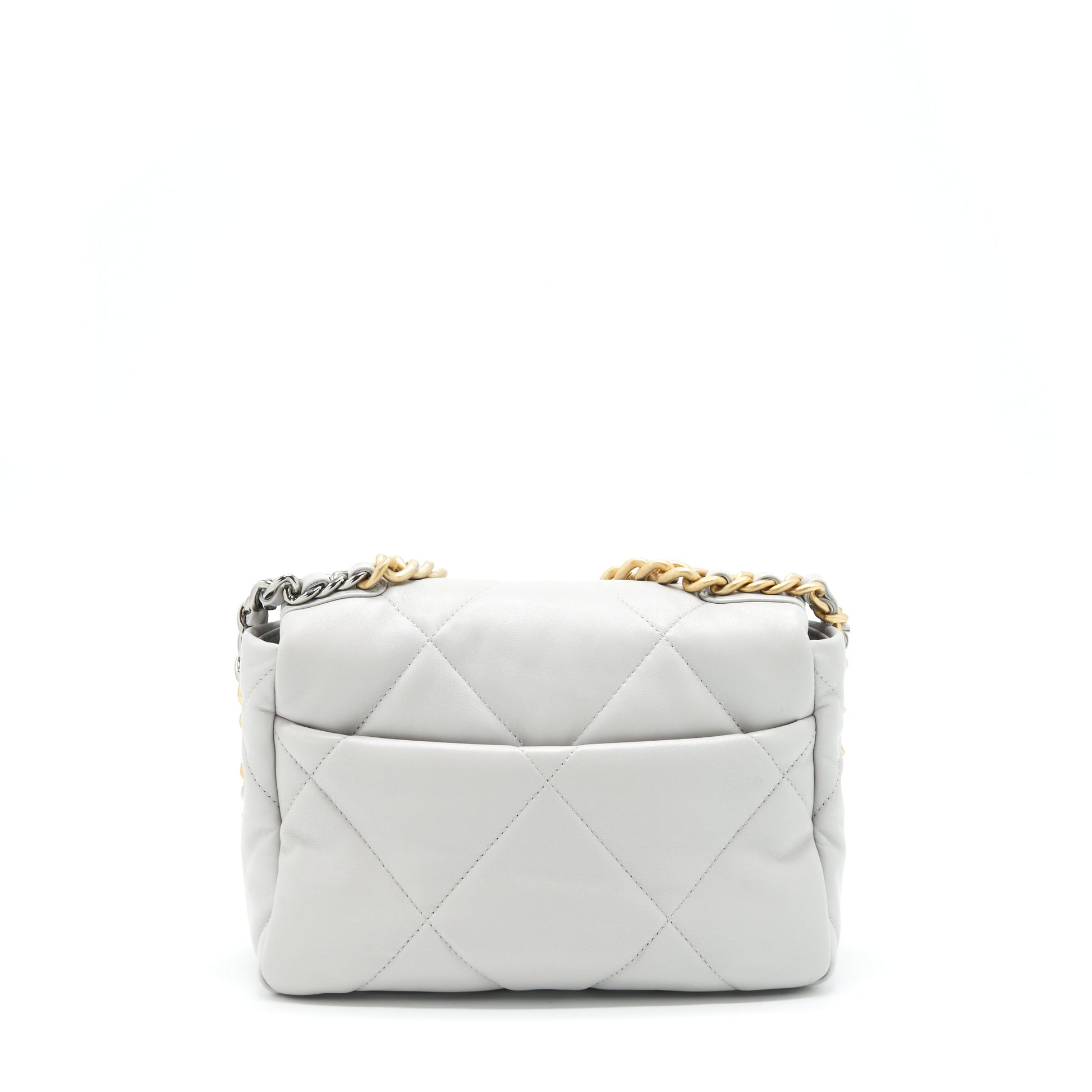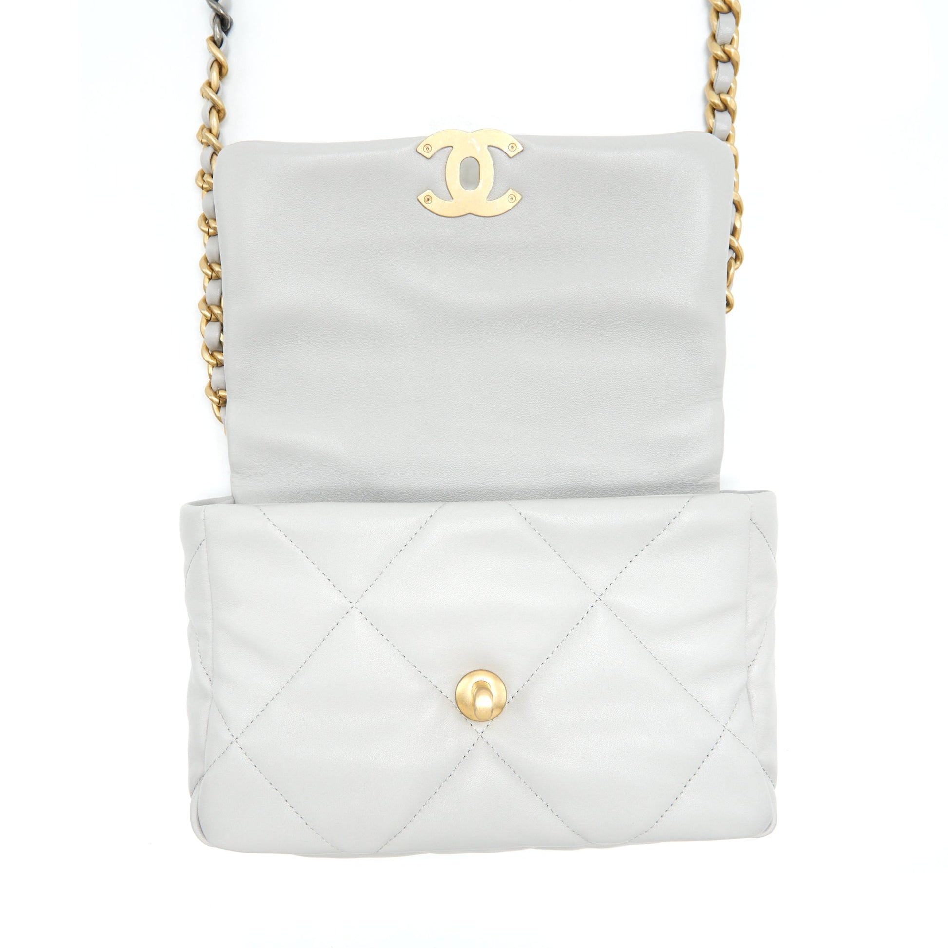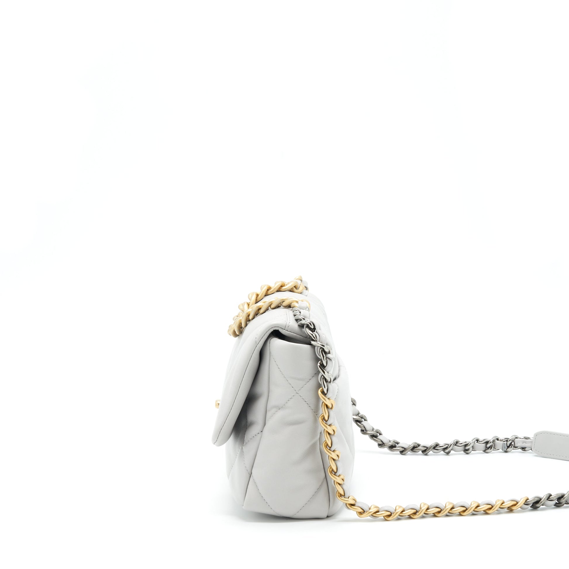 Chanel Small 19 Bag Lambskin Light Grey With Multicolour Hardware (Microchip)