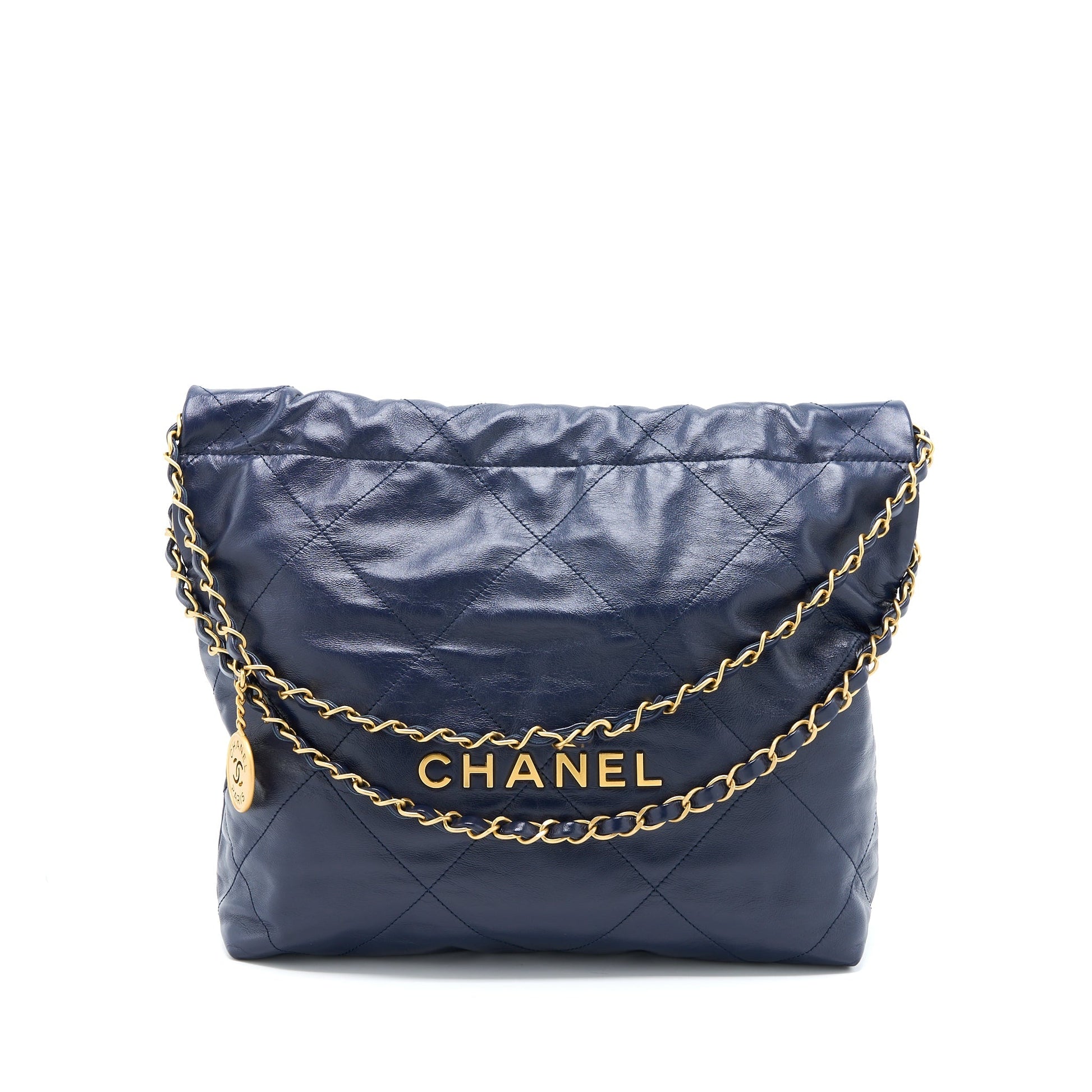 Chanel Small 22 Bag Shiny Calfskin Navy GHW (Microchip)