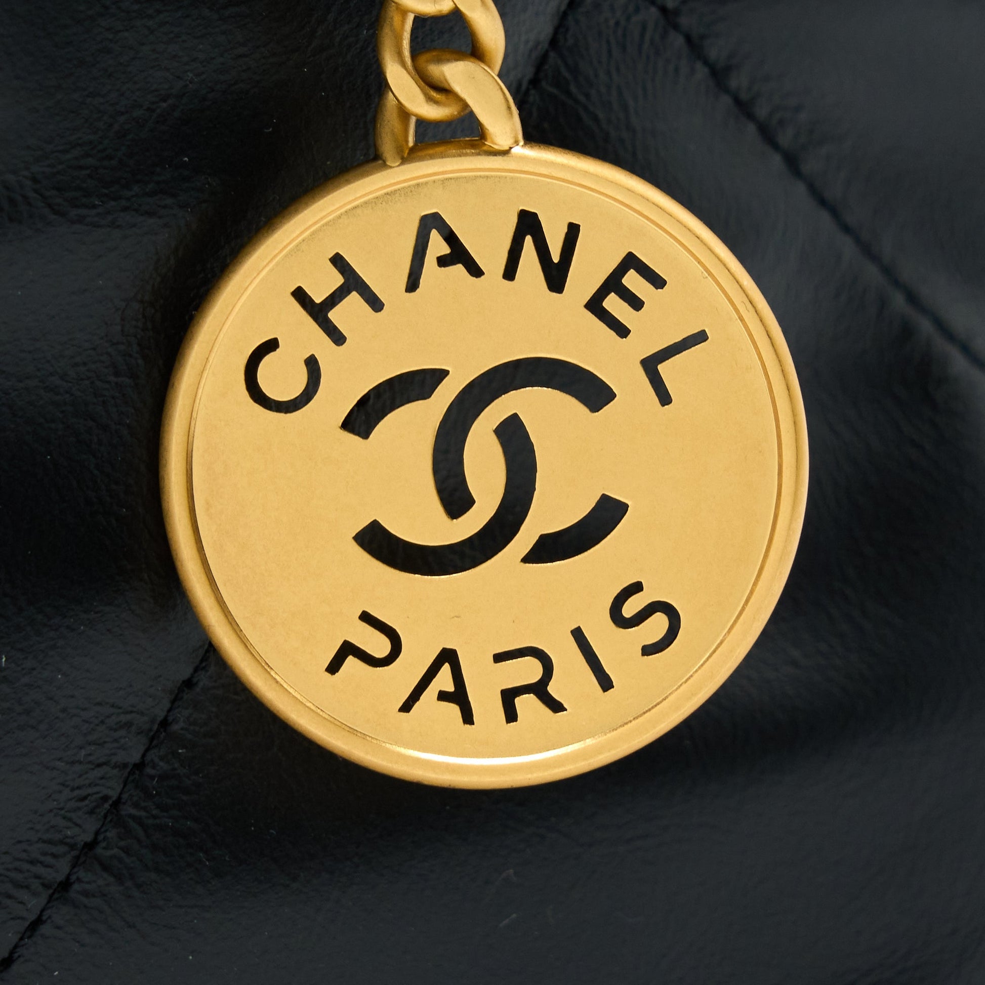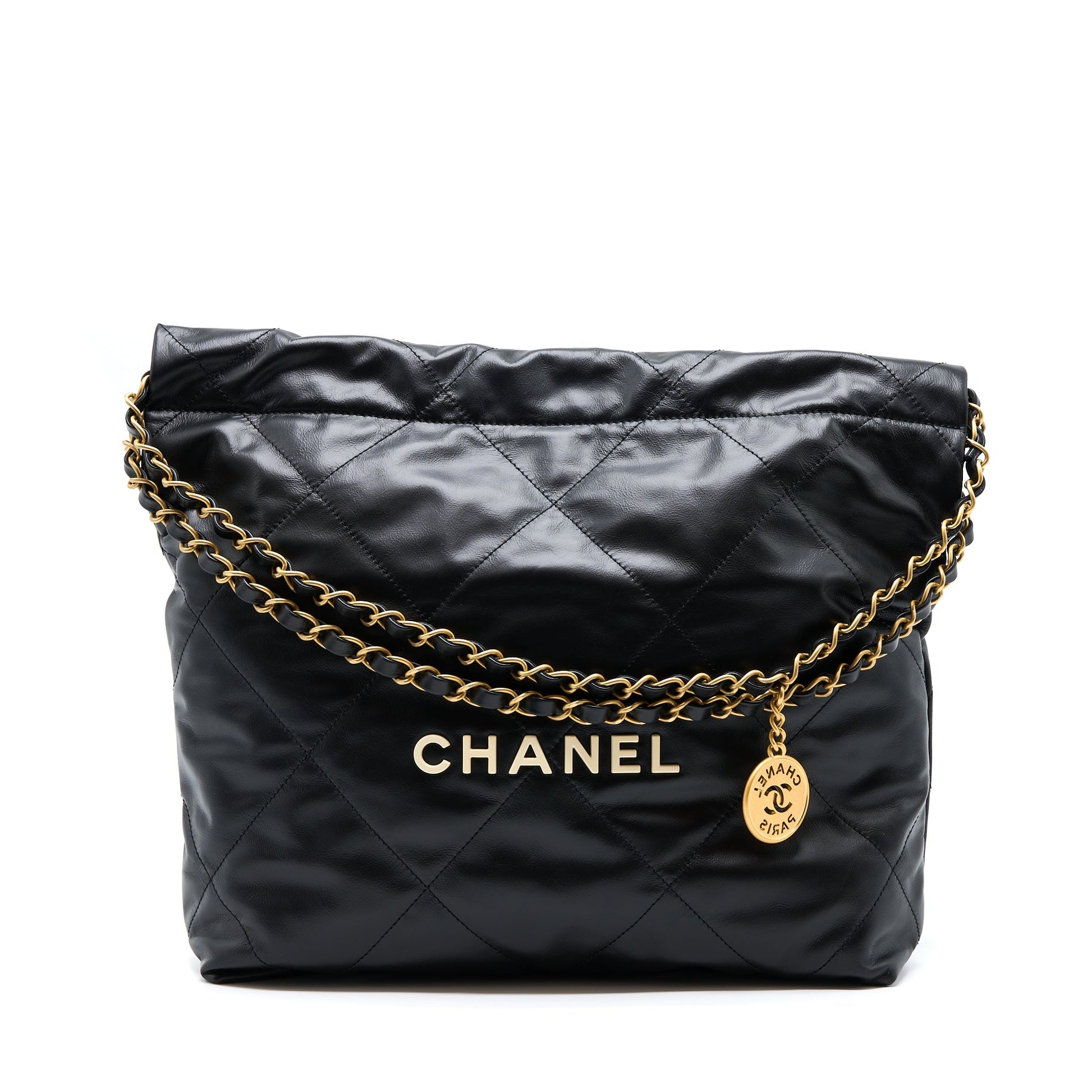 Chanel Small 22 Bag white letter Shiny Calfskin GHW (Microchip)