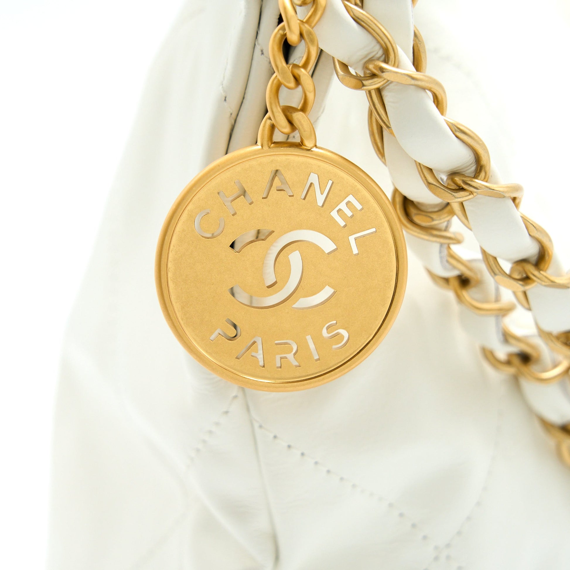 Chanel Small 22 Bag Shiny Calfskin White GHW (Microchip)