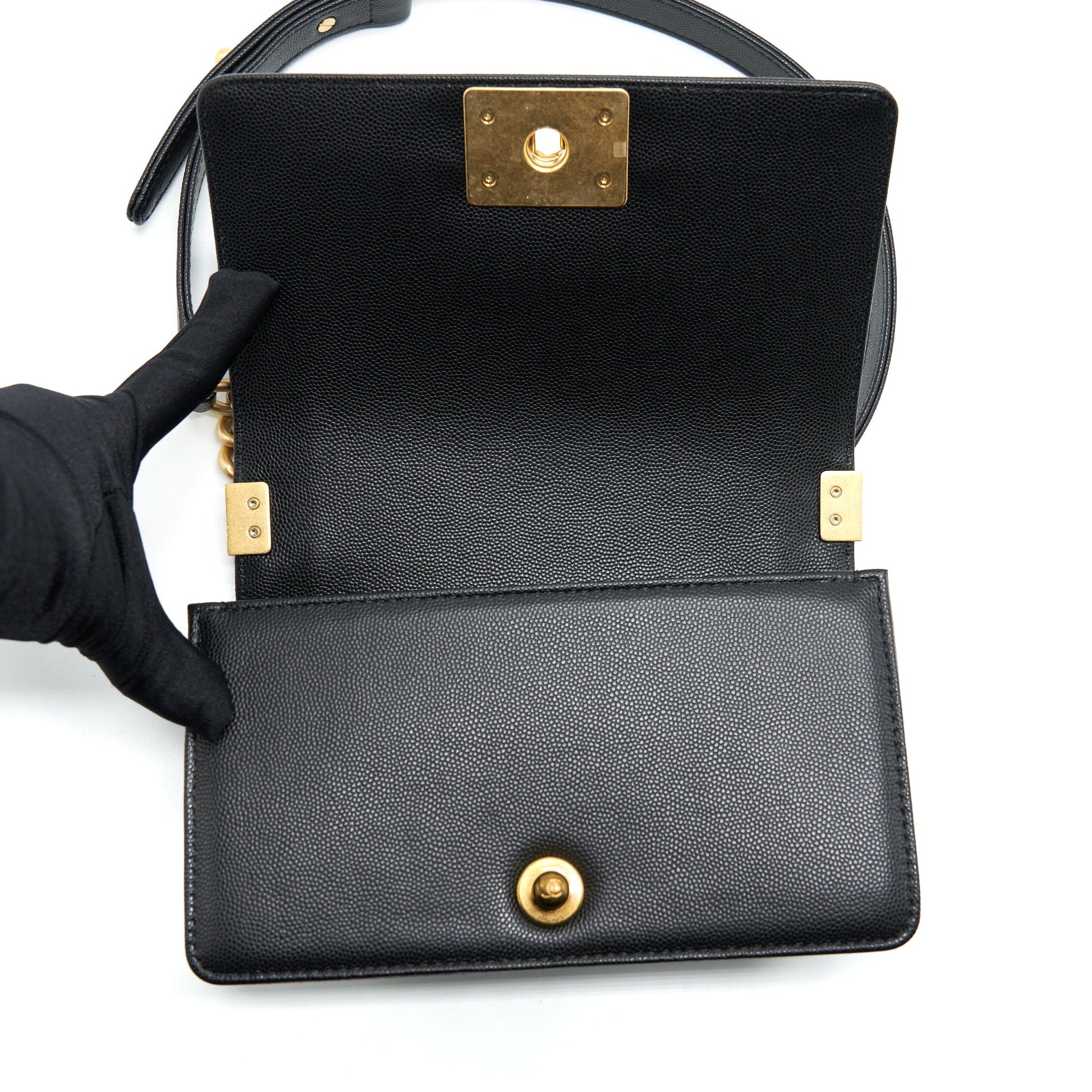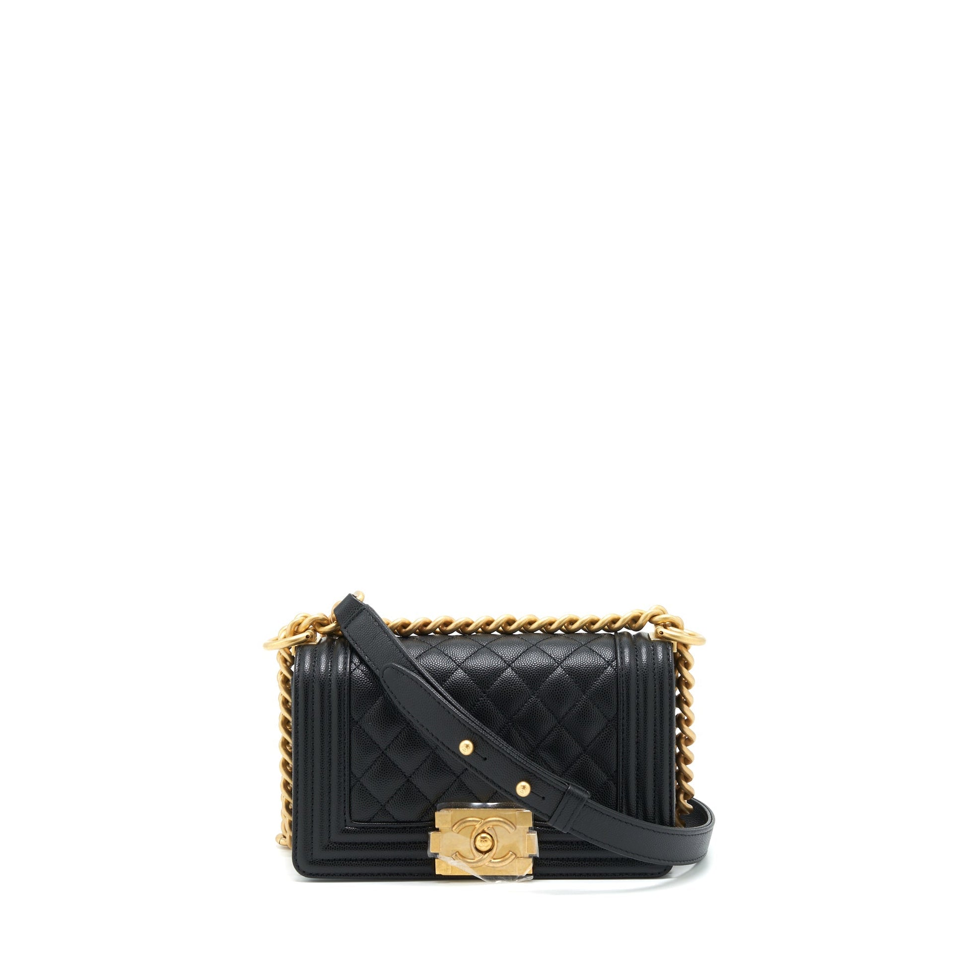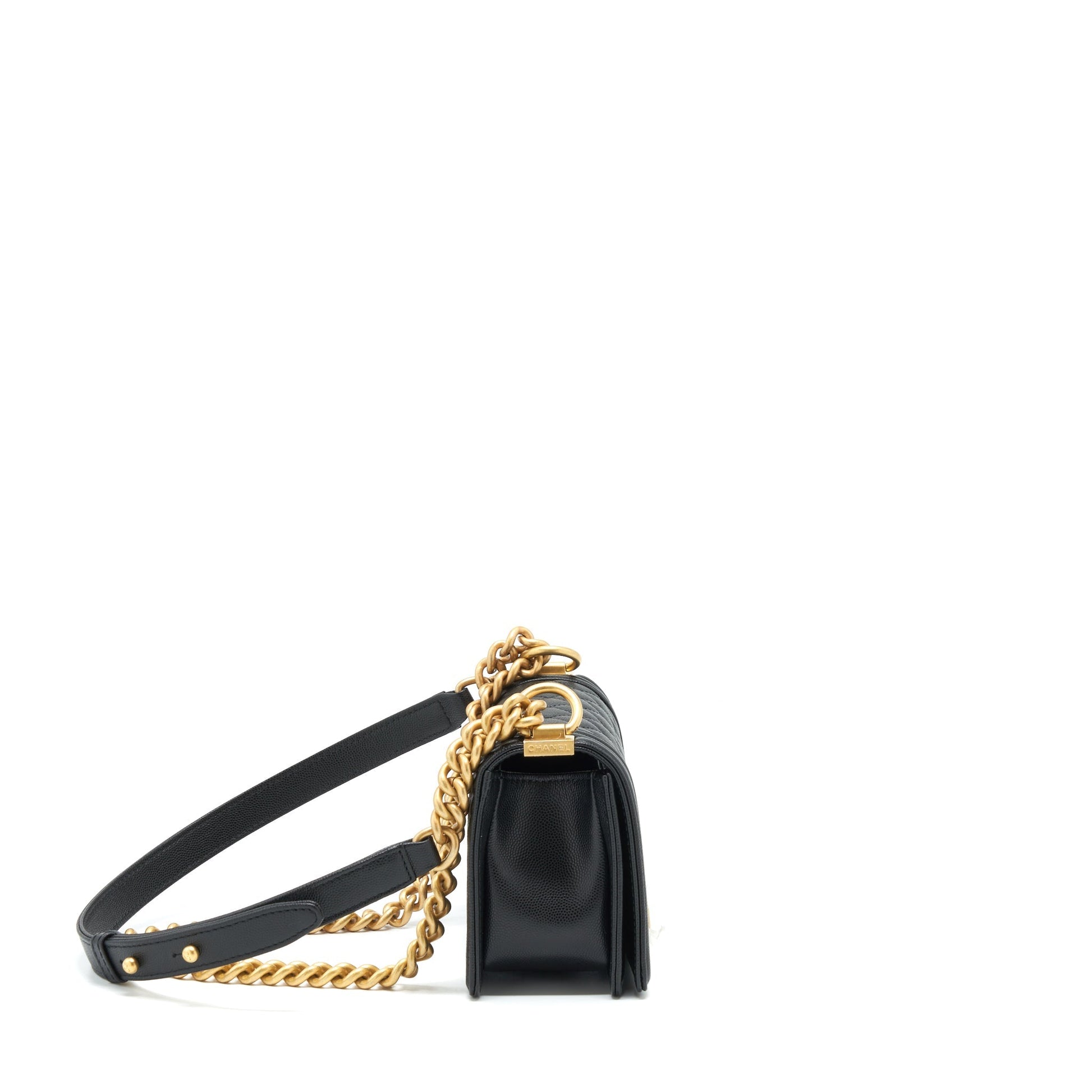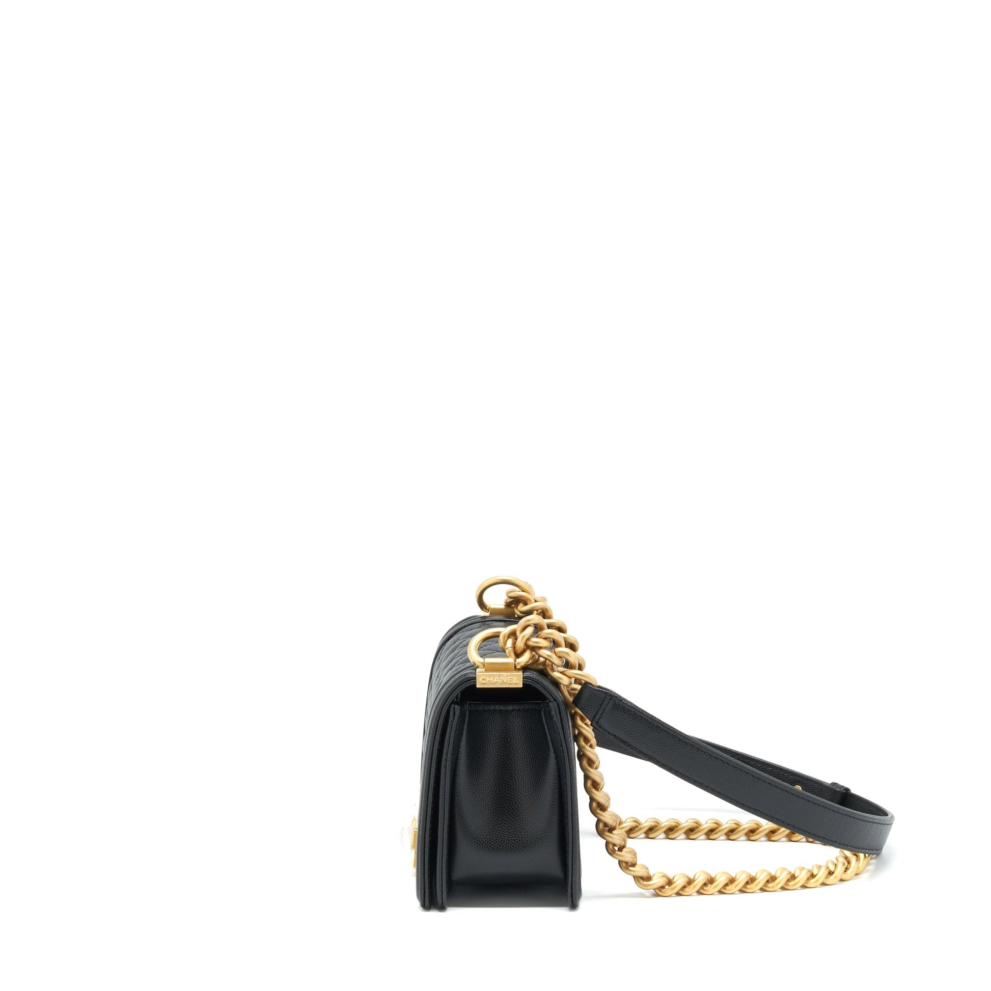 Chanel Small Boy Bag Caviar Black Brushed GHW (Microchip)