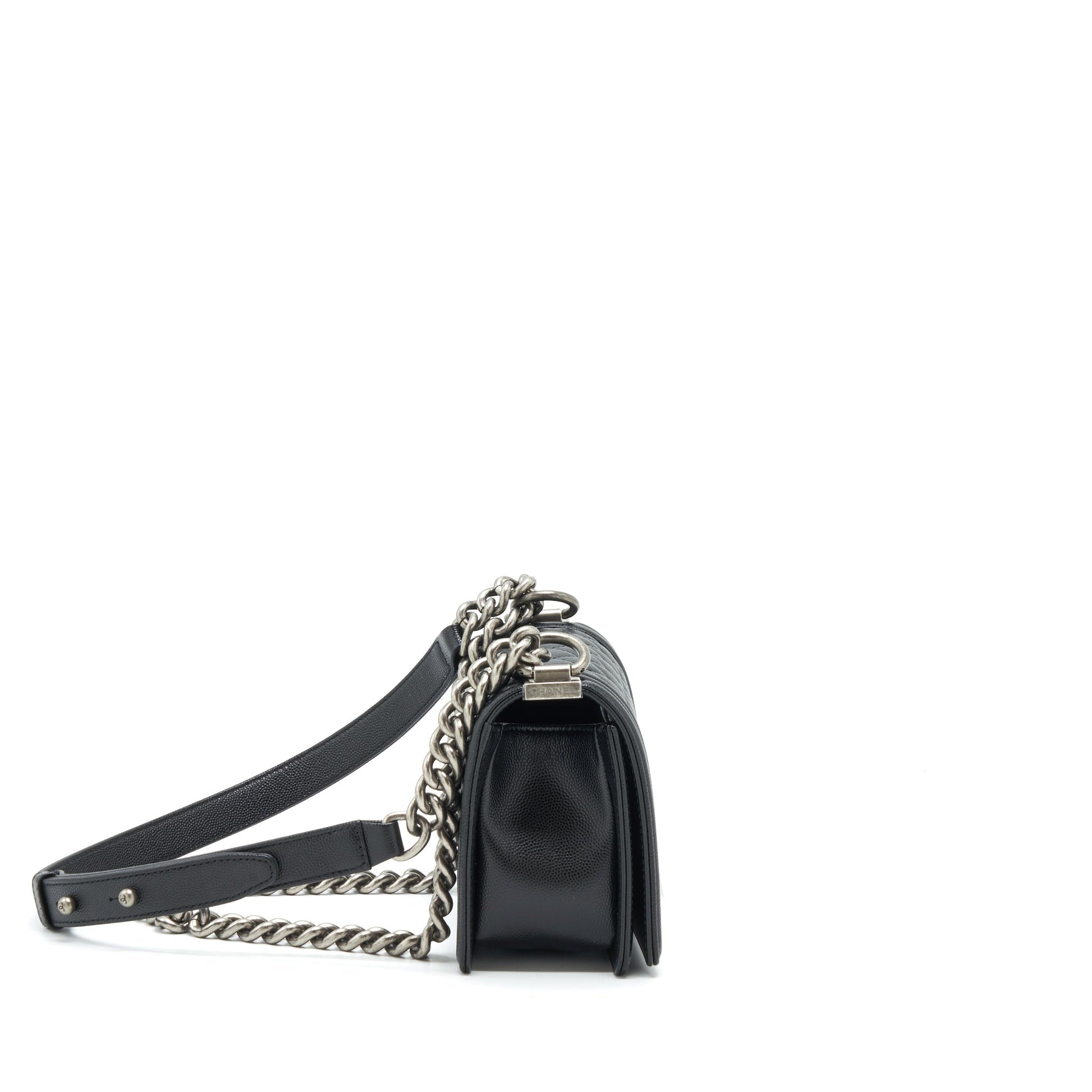 Chanel Small Boy Bag Caviar Black Ruthenium Sliver Hardware (Microchip