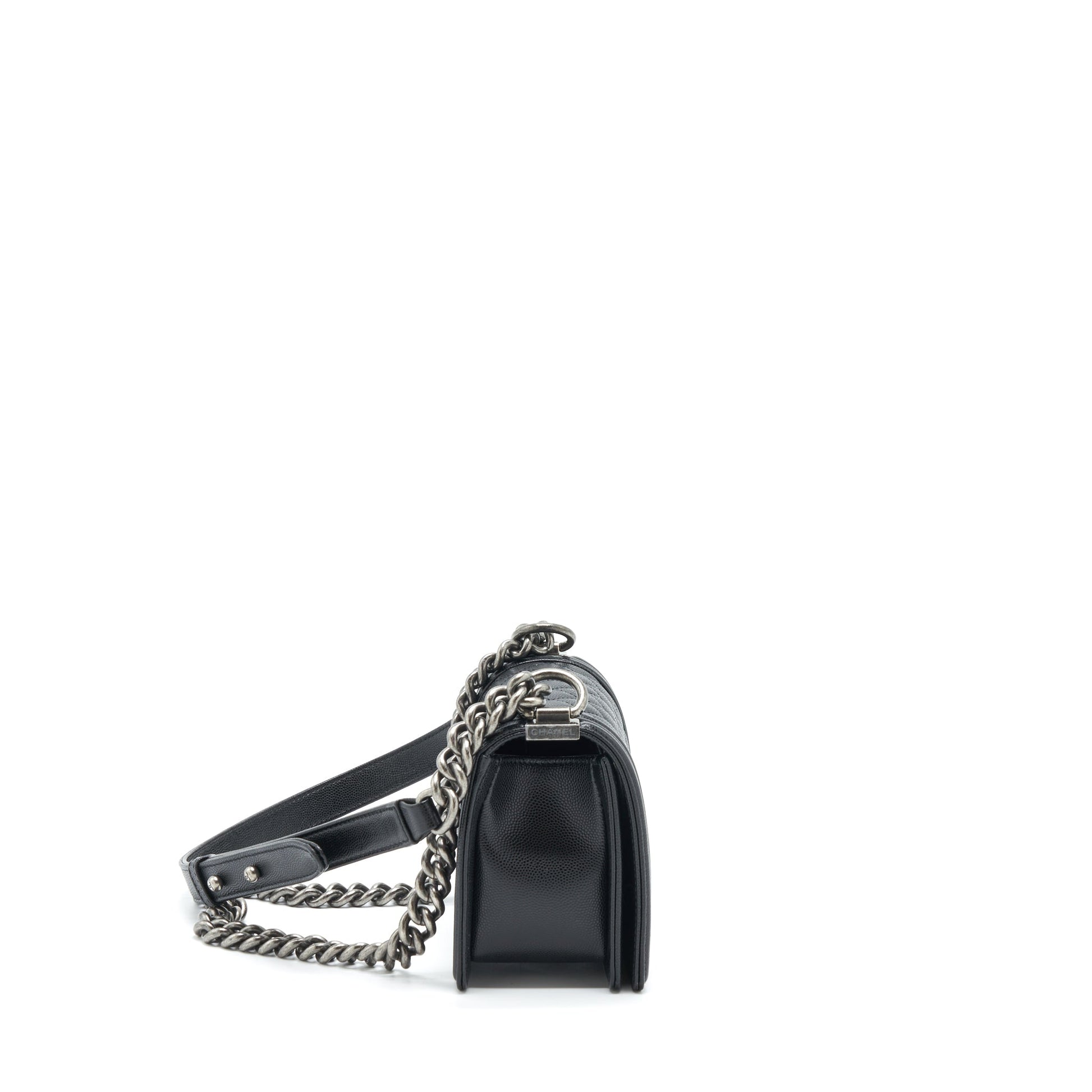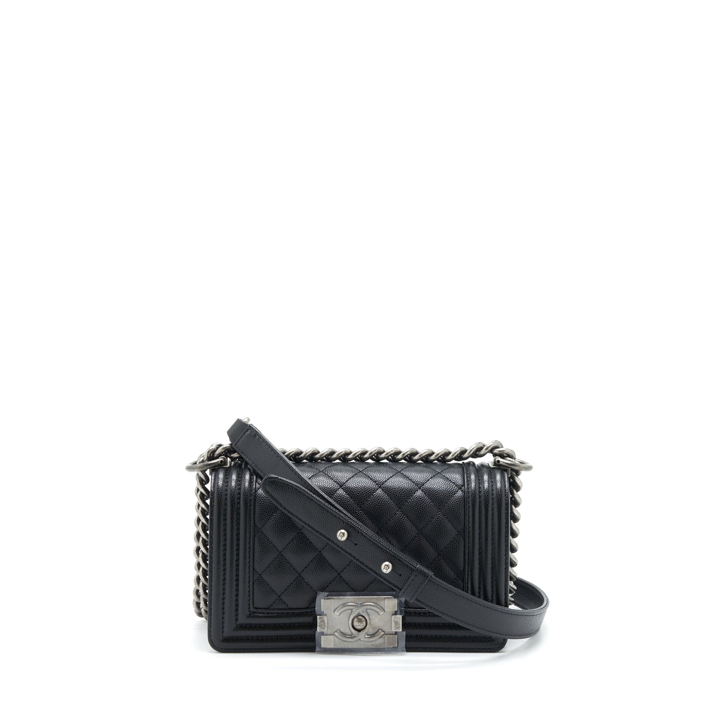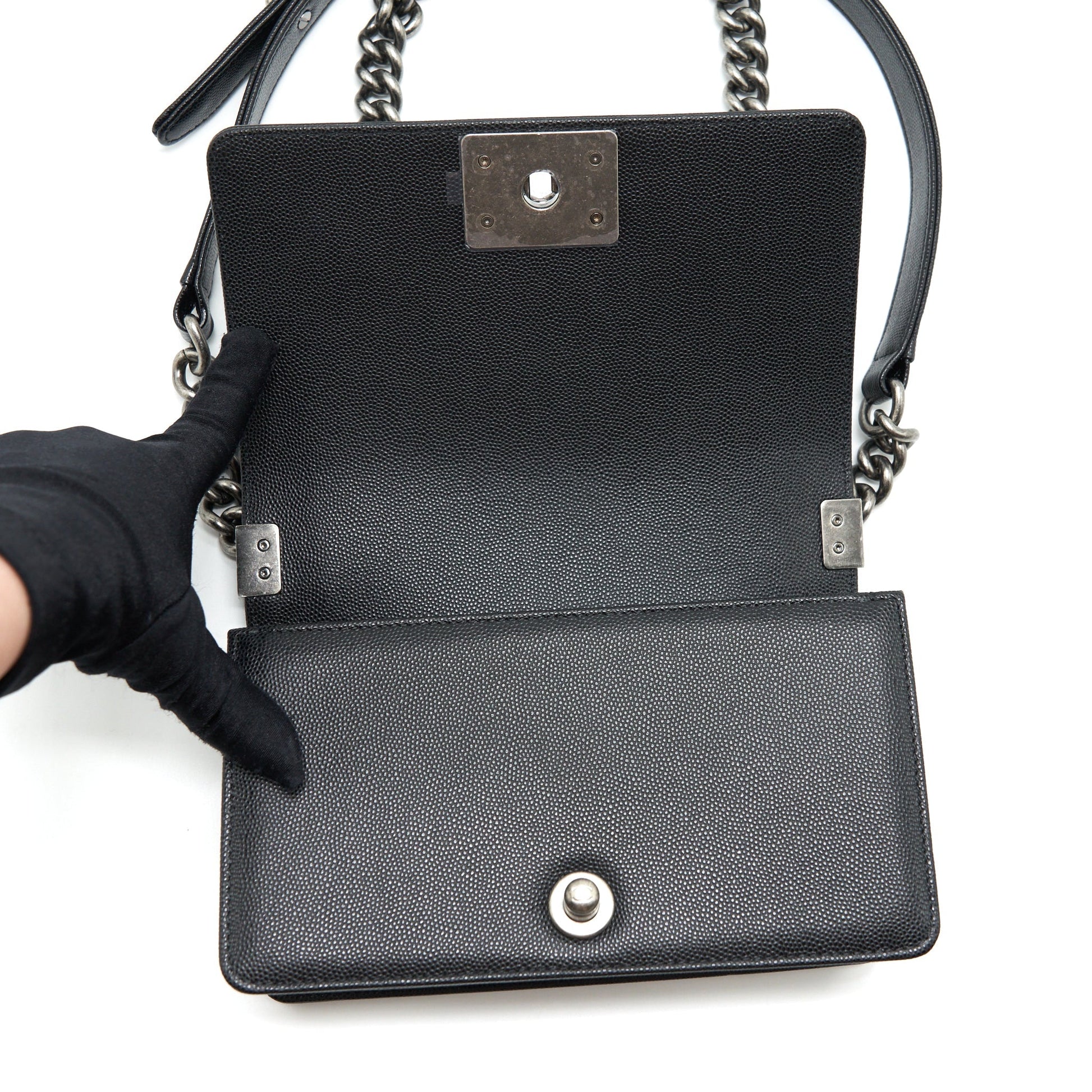 Chanel Small Boy Bag Caviar Black Ruthenium Sliver Hardware (Microchip)