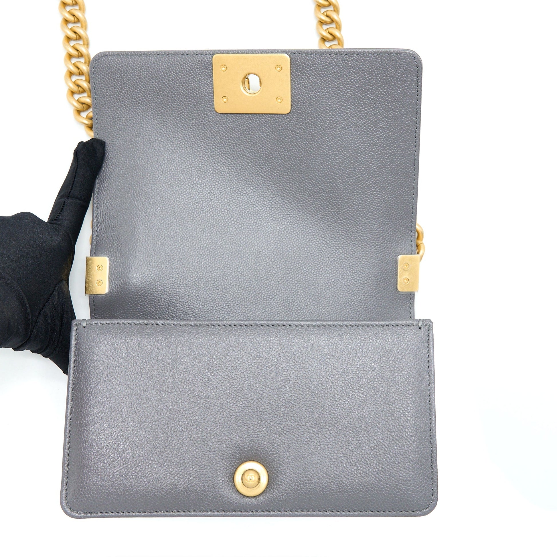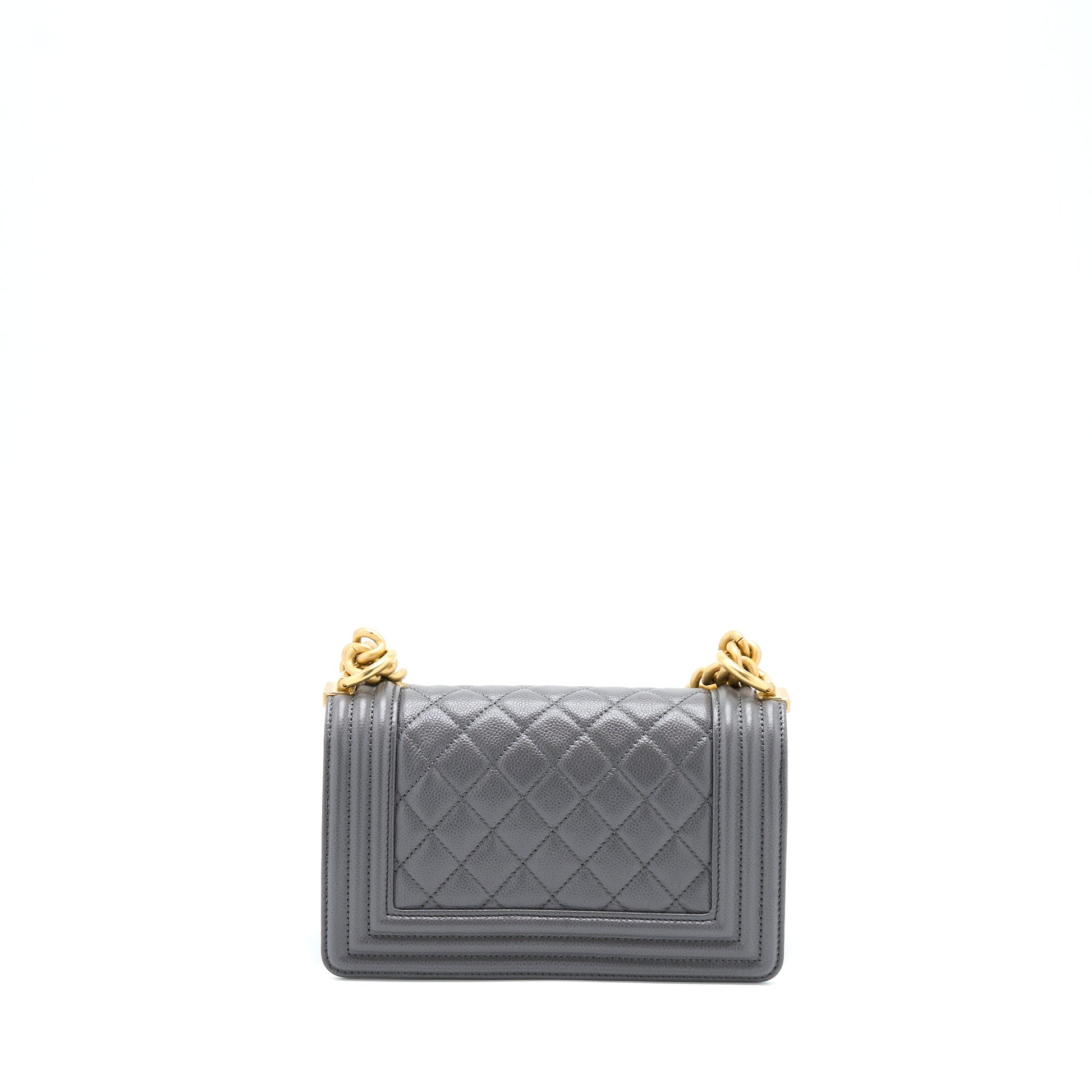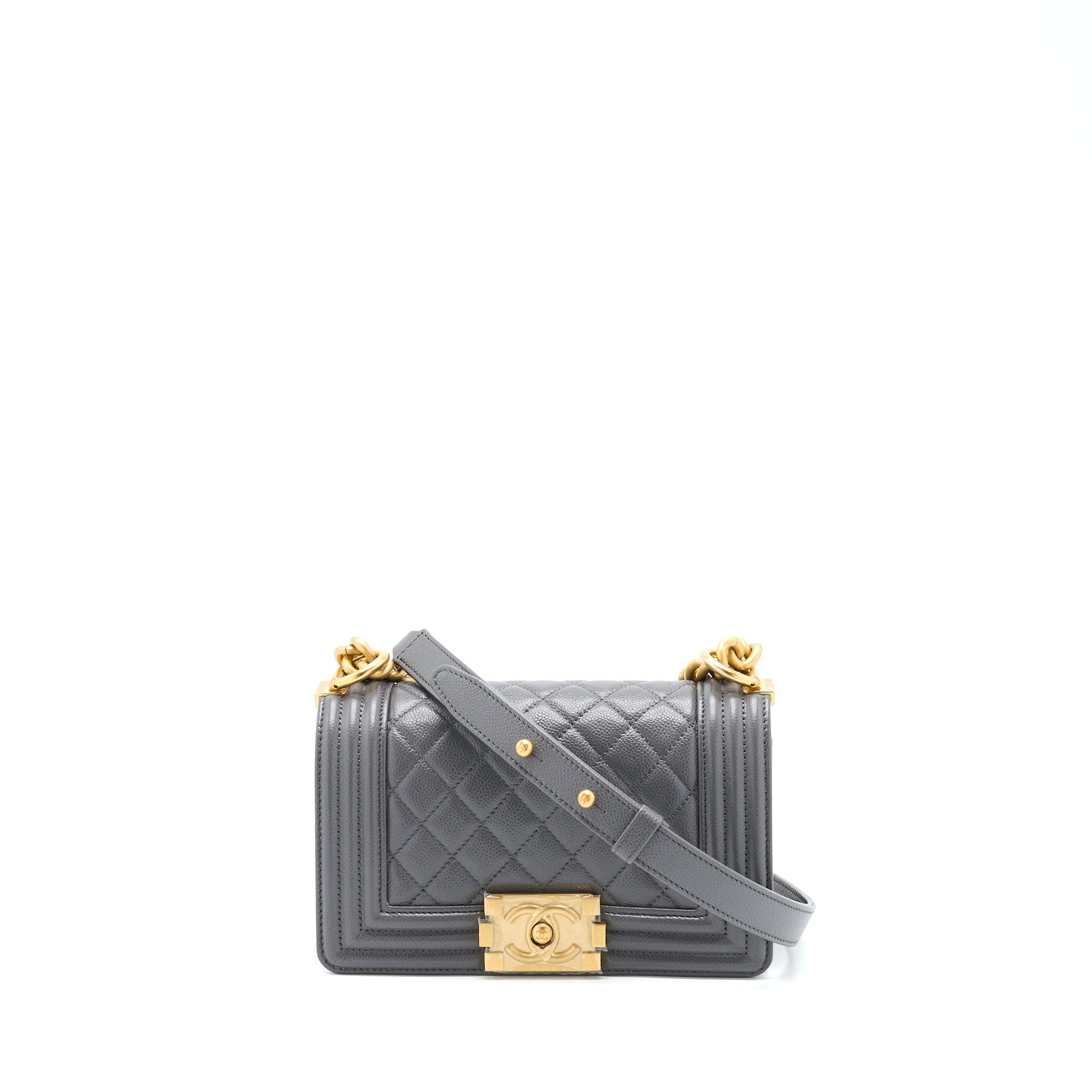 Chanel Small Boy Bag Caviar Grey GHW (Microchip)